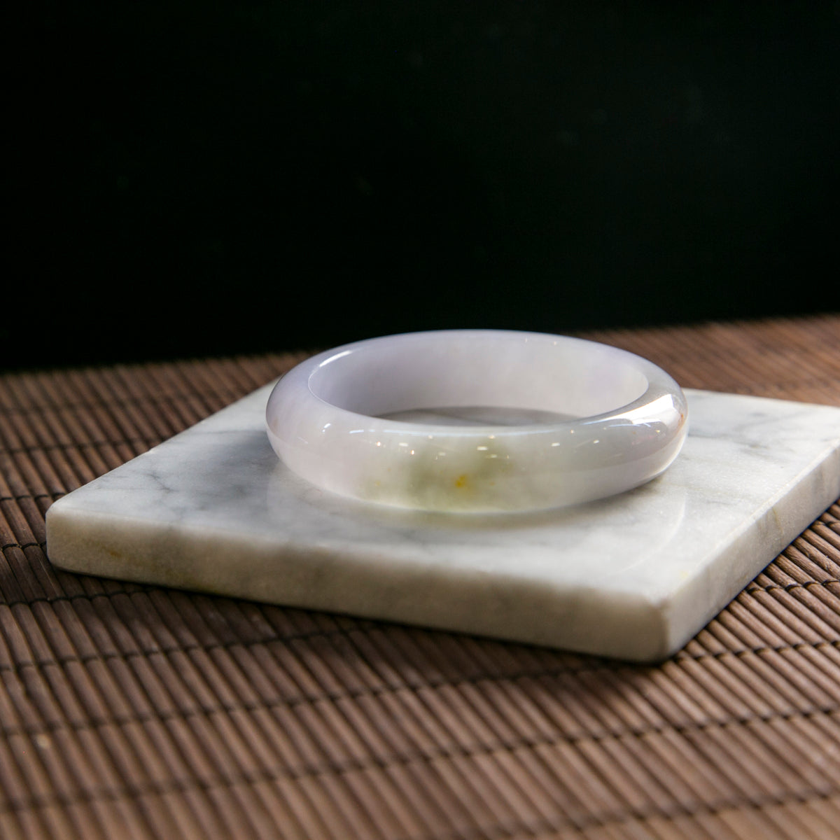 天然緬甸翡翠粉紫灑金正圈手鐲 (適合圈口 52-54)