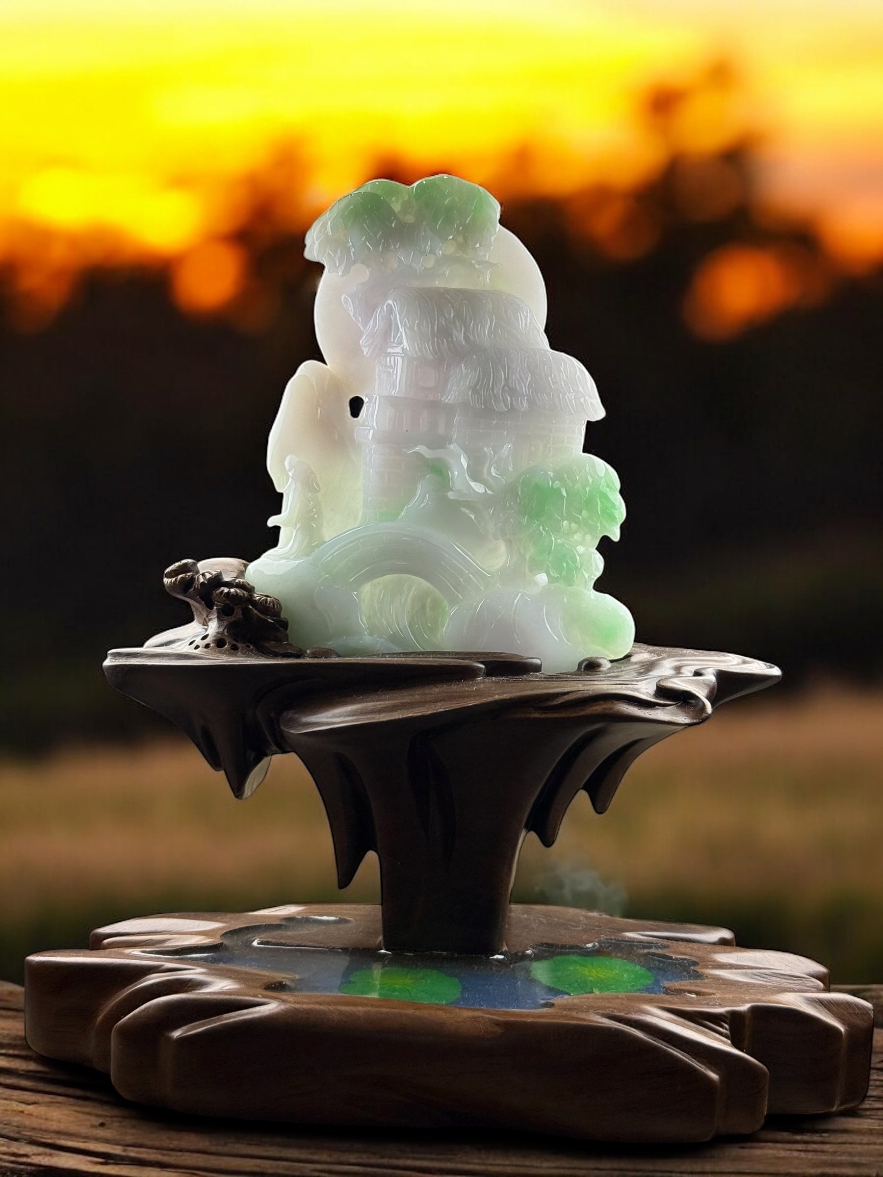 天然緬甸翡翠-山水擺件