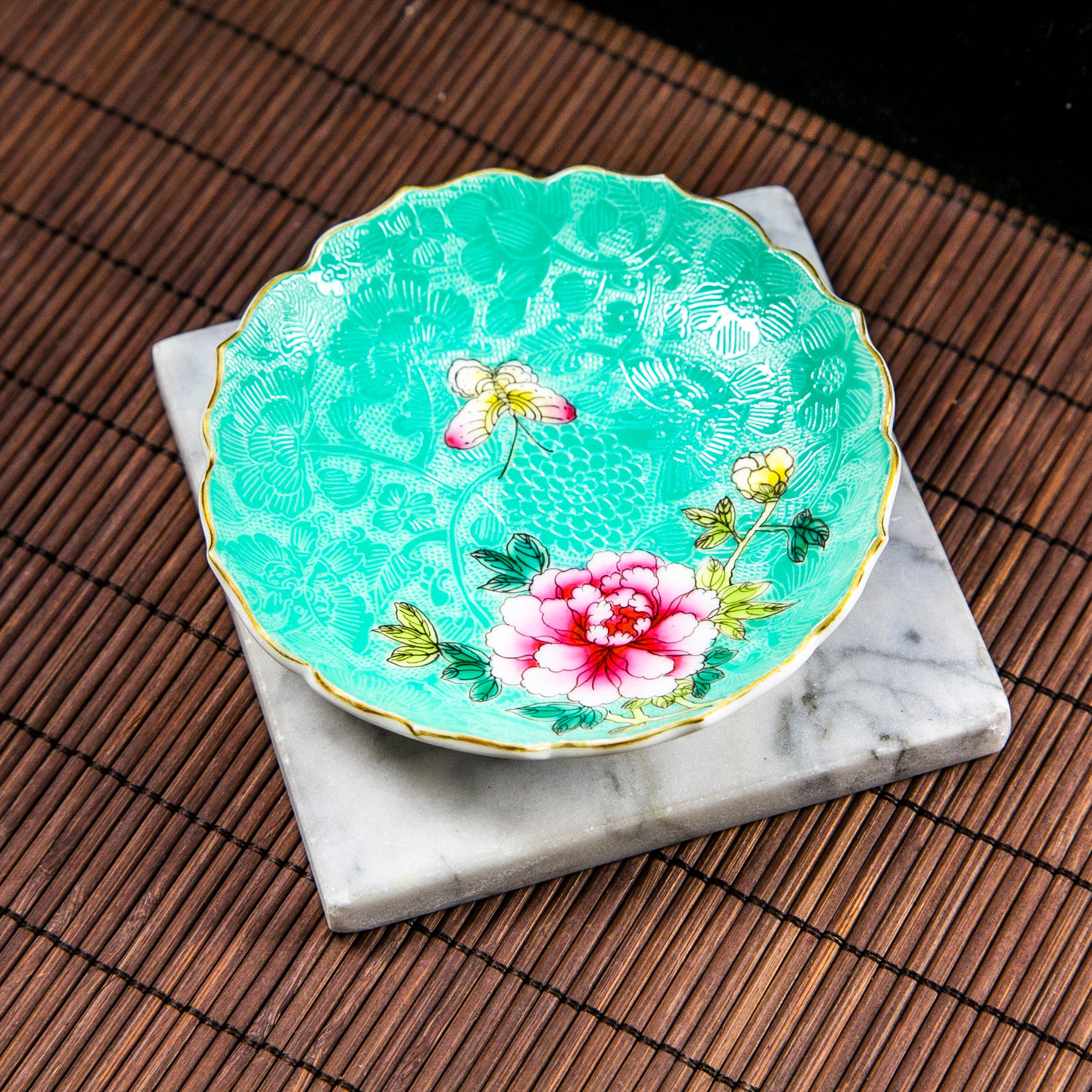 景德鎮扒花釉上彩蒂芬妮藍色茶碟 一隻