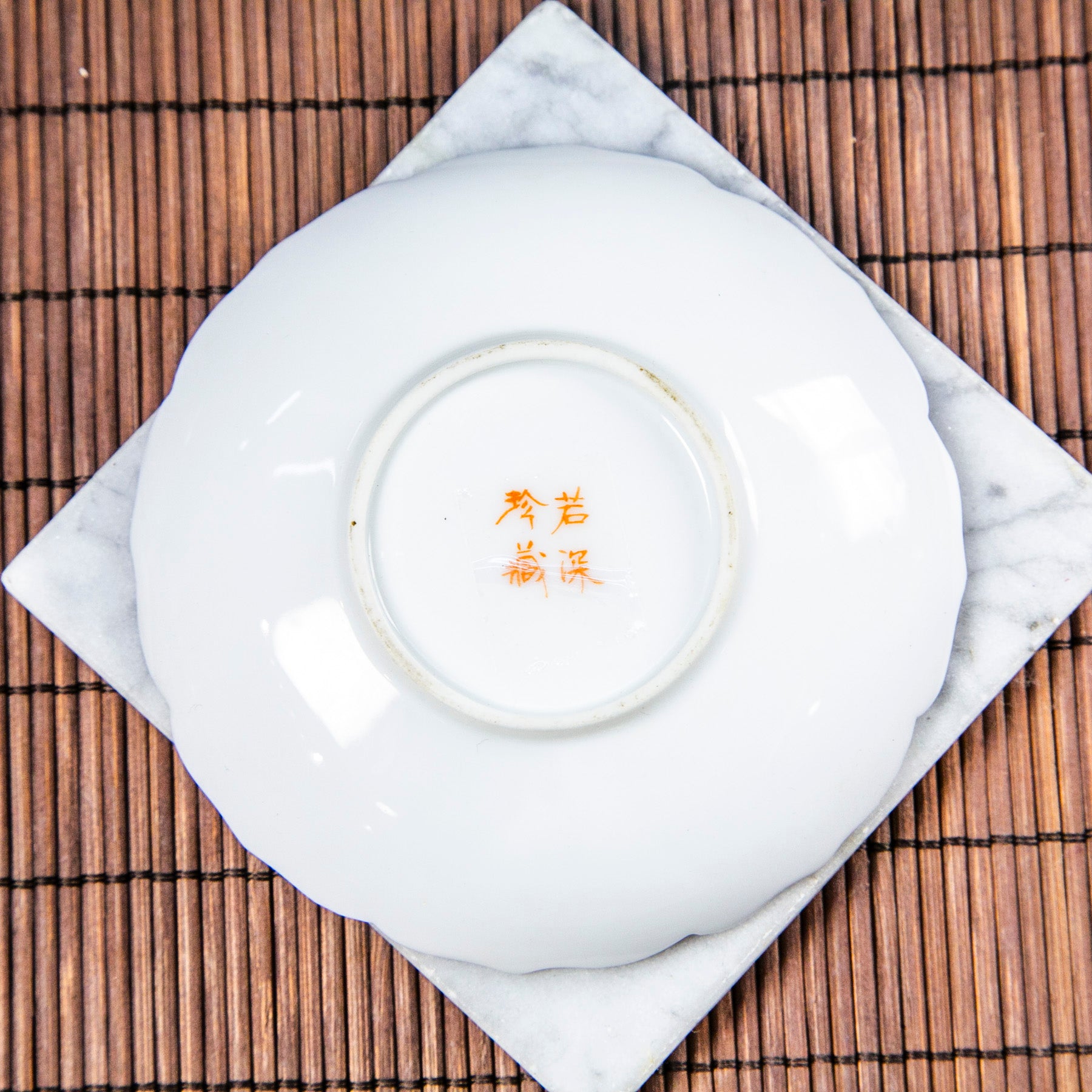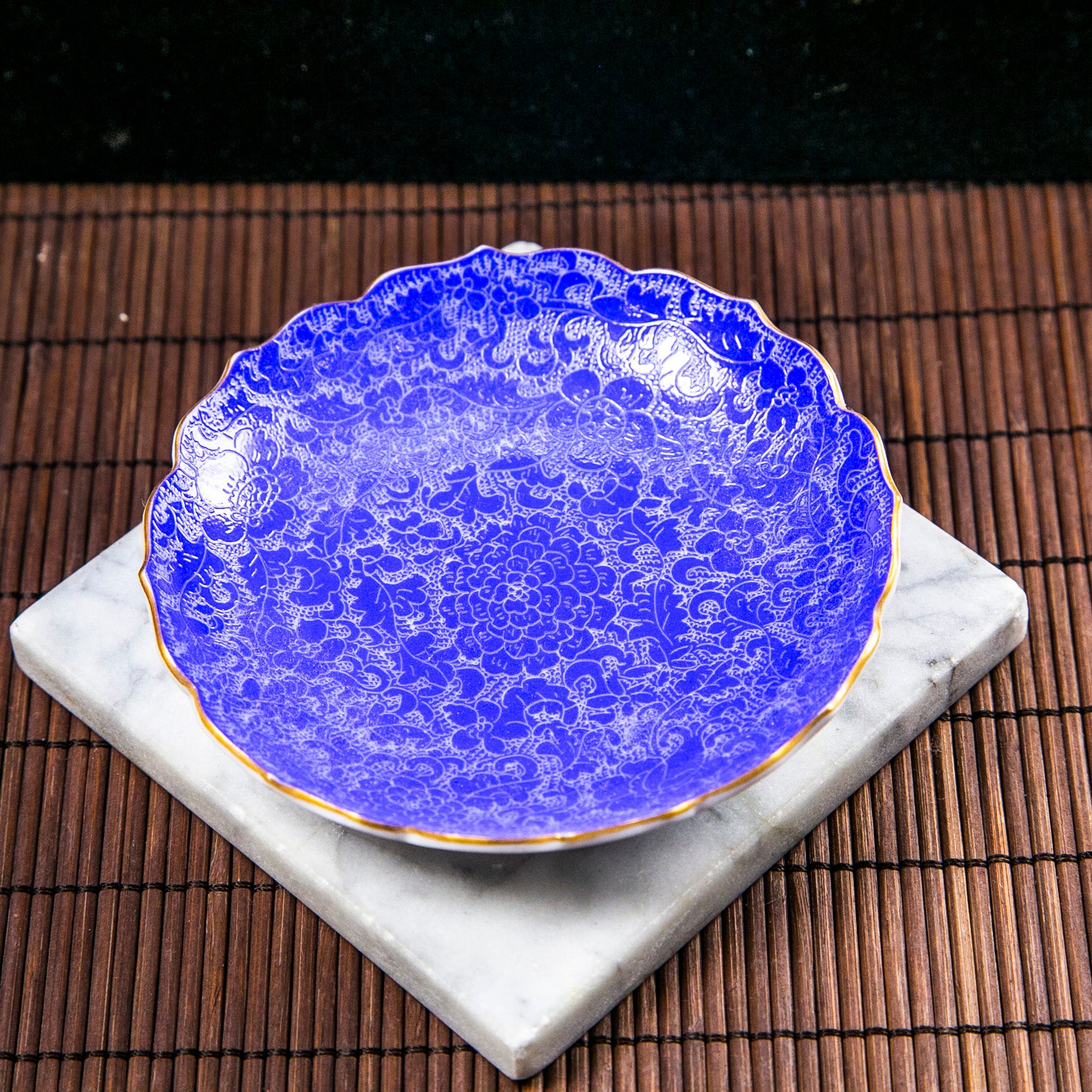 景德鎮扒花釉上彩藍色茶碟 一隻