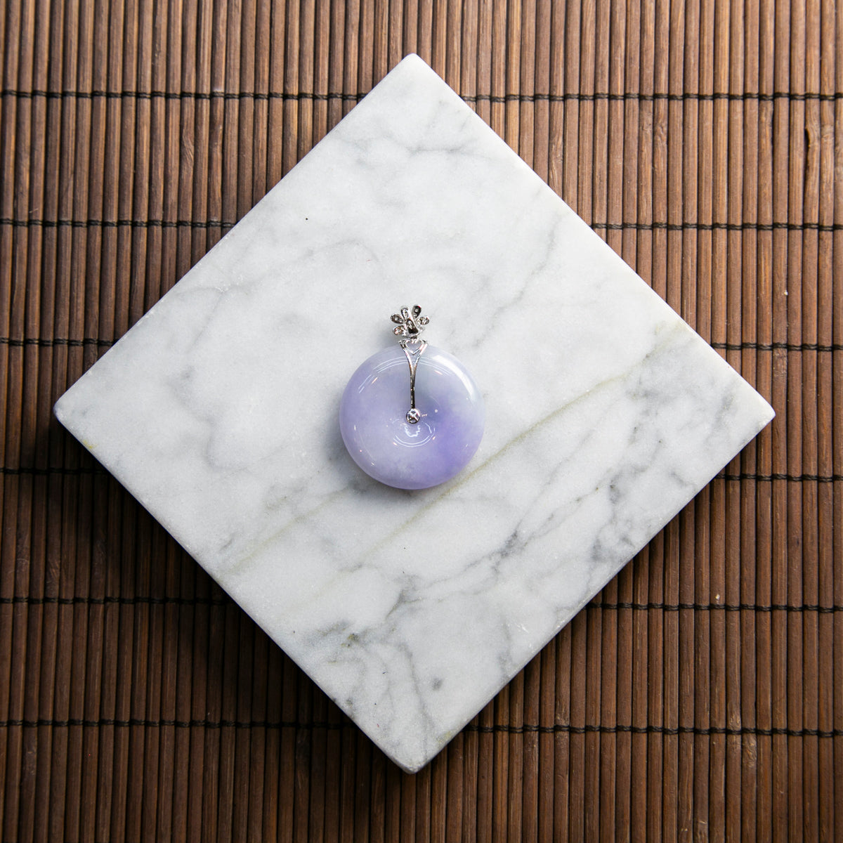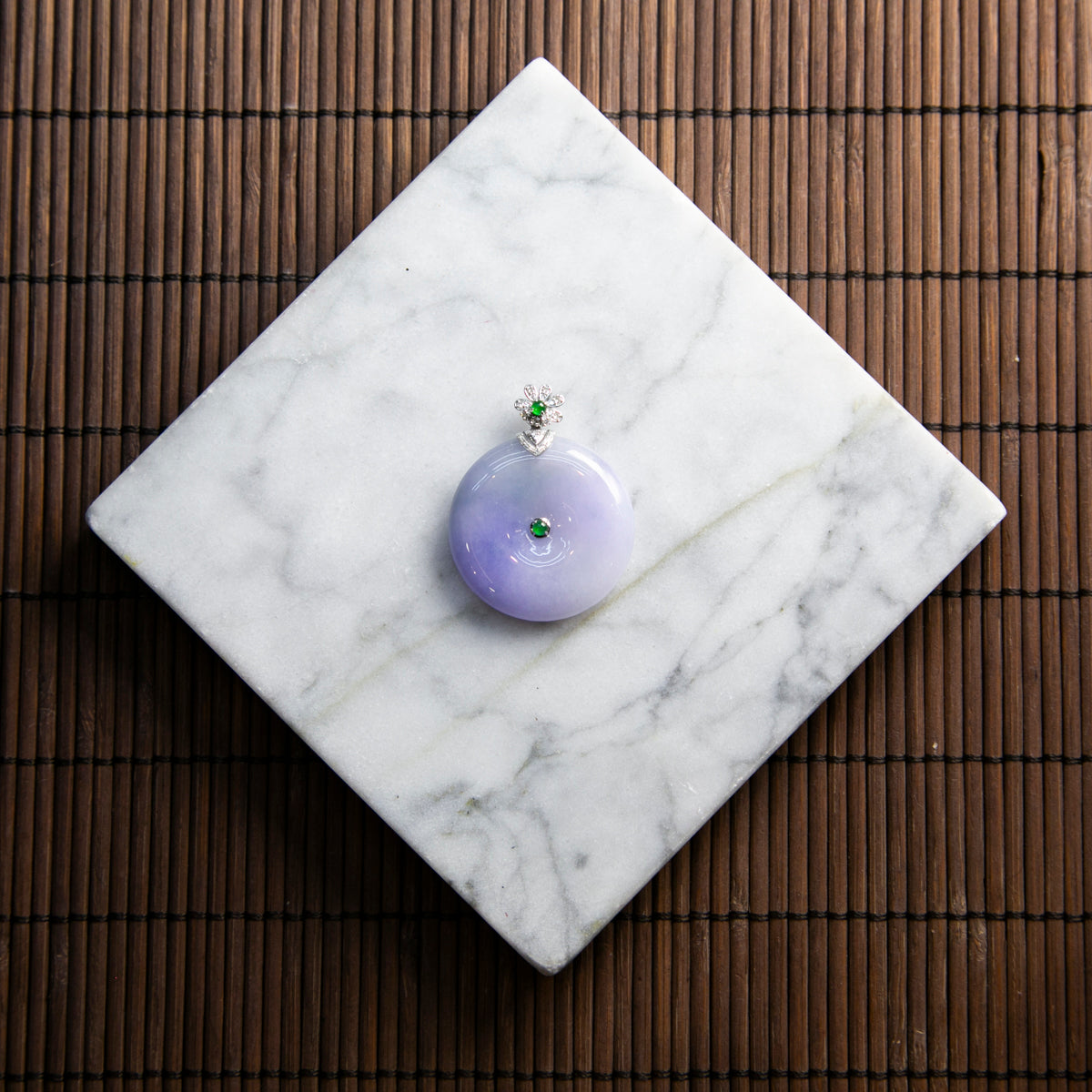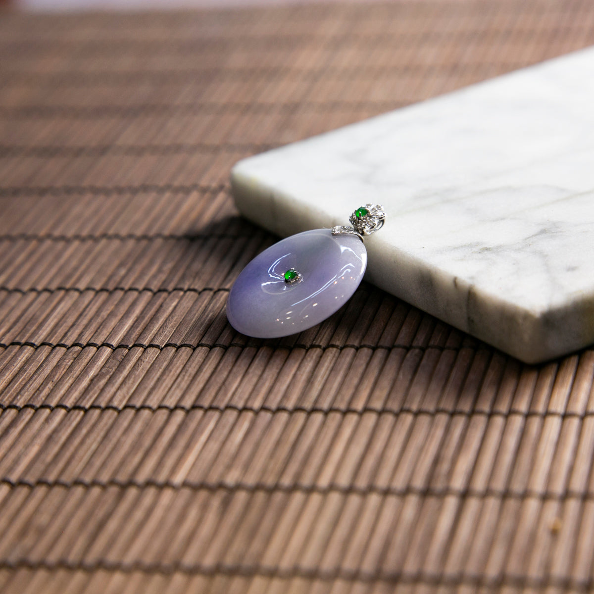 18K白金鑲鑽天然緬甸翡翠粉紫平安扣吊墜