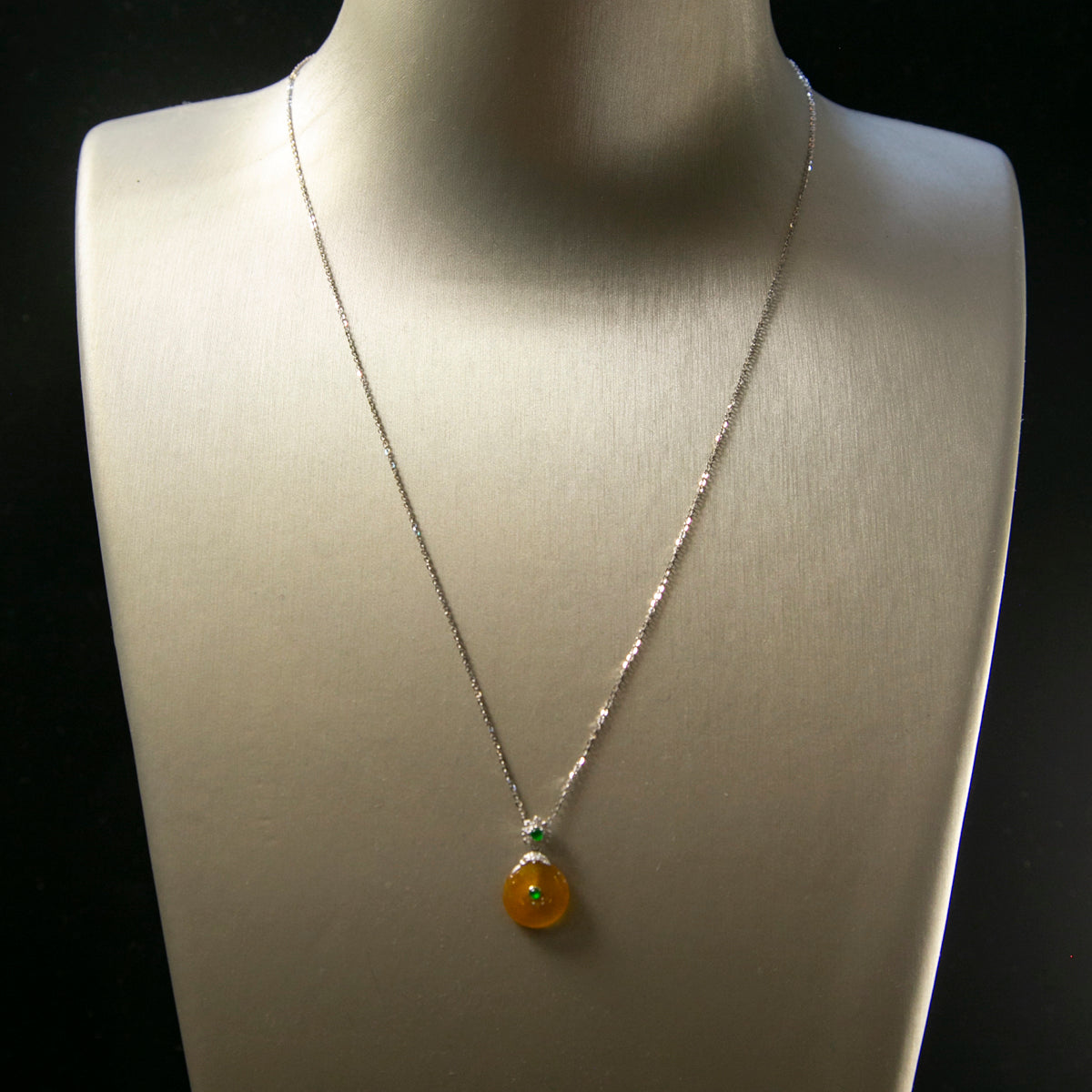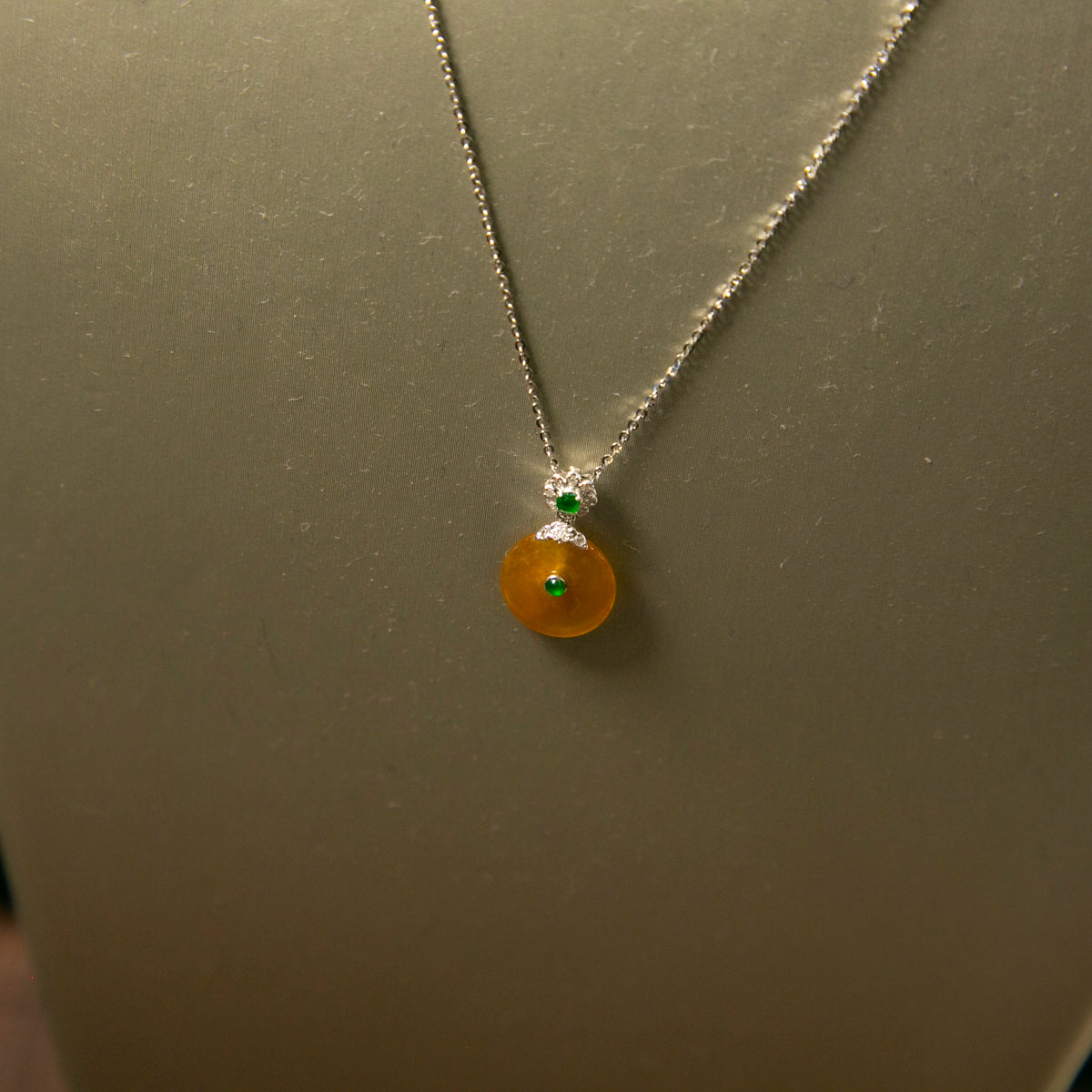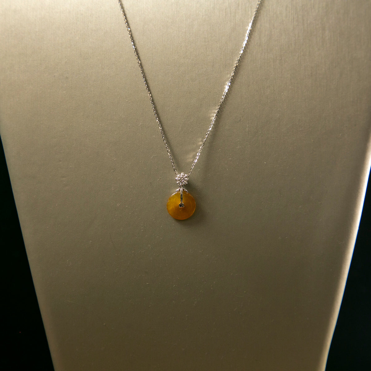 18K白金鑲鑽天然緬甸翡翠黃翡平安扣頸鏈