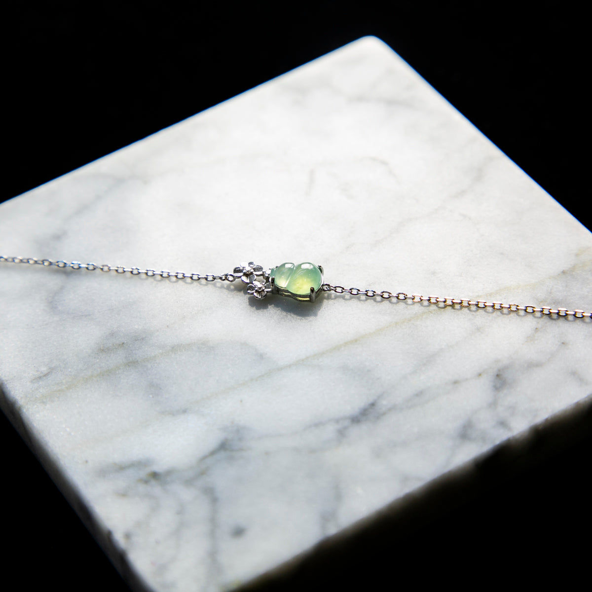 S925鑲鋯石天然緬甸翡翠冰淡綠葫蘆手鍊