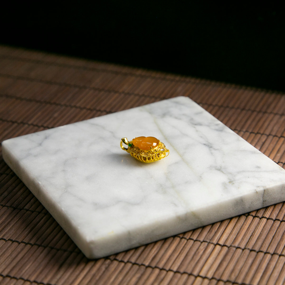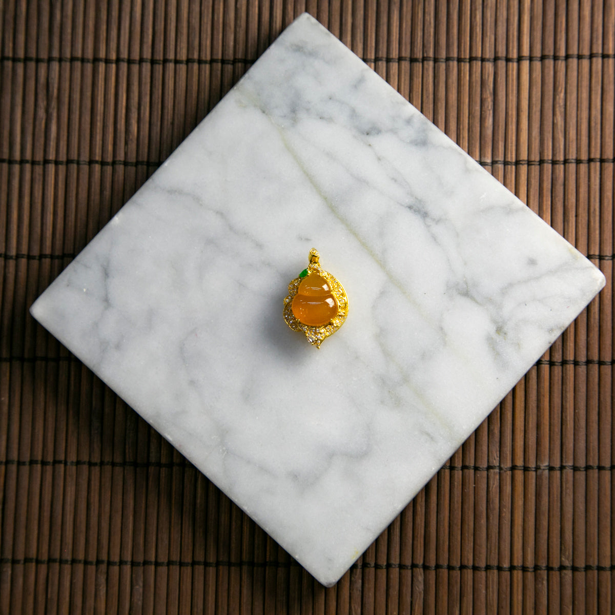 18K黃金鑲鑽天然緬甸翡翠高冰種黃翡葫蘆吊墜