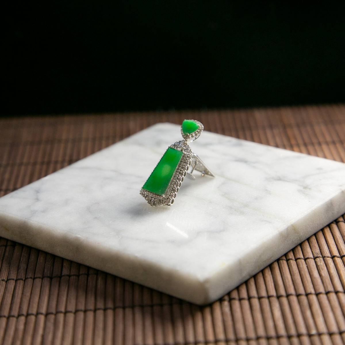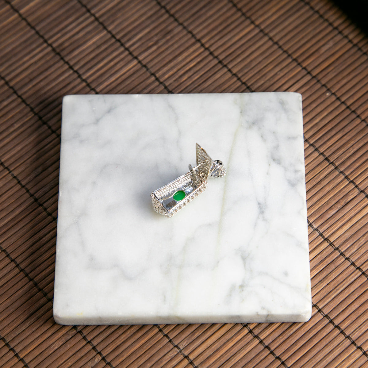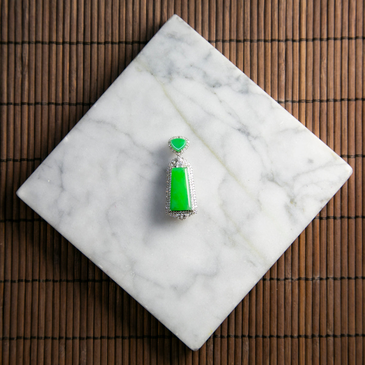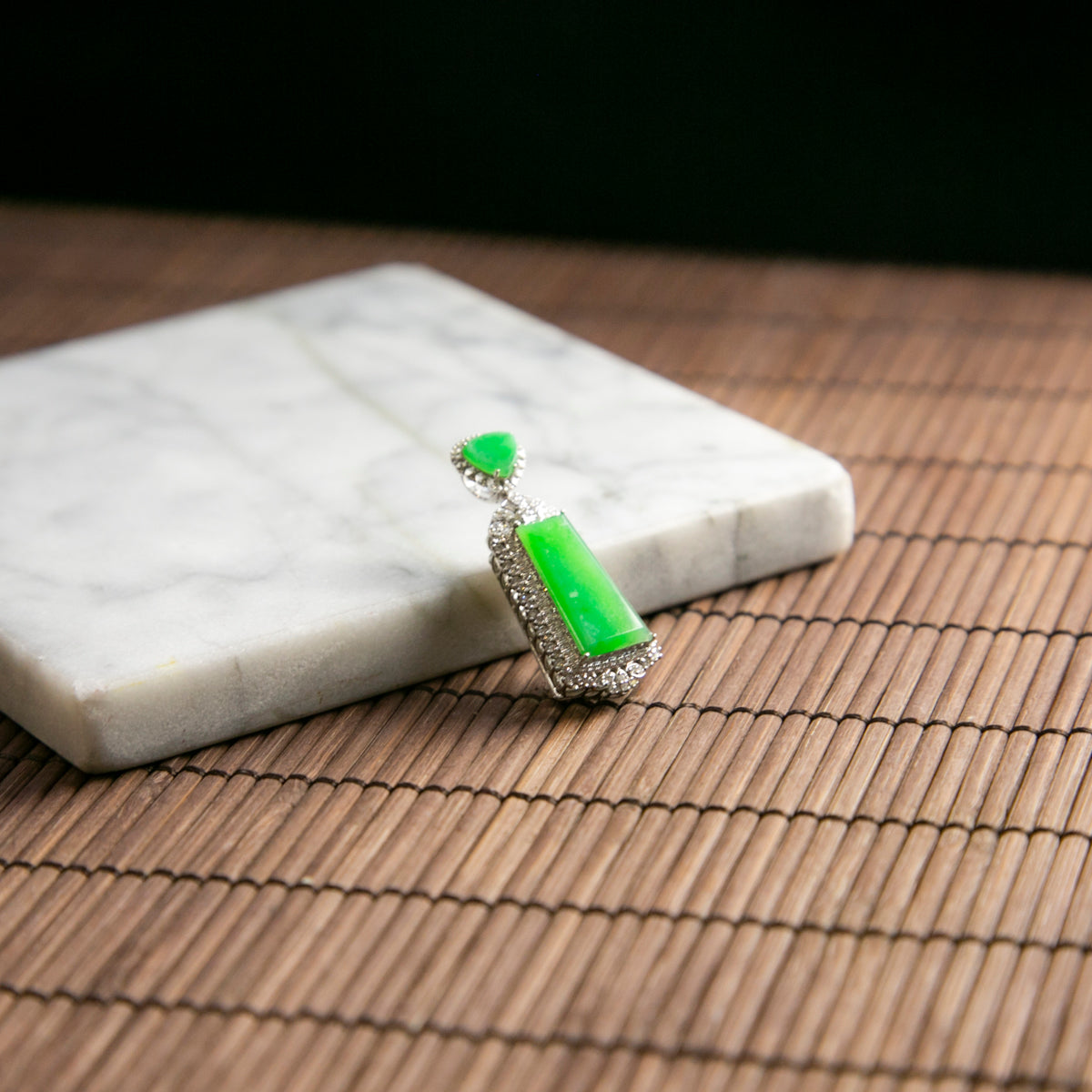 18K白金鑲鑽天然緬甸翡翠滿綠無事牌吊墜