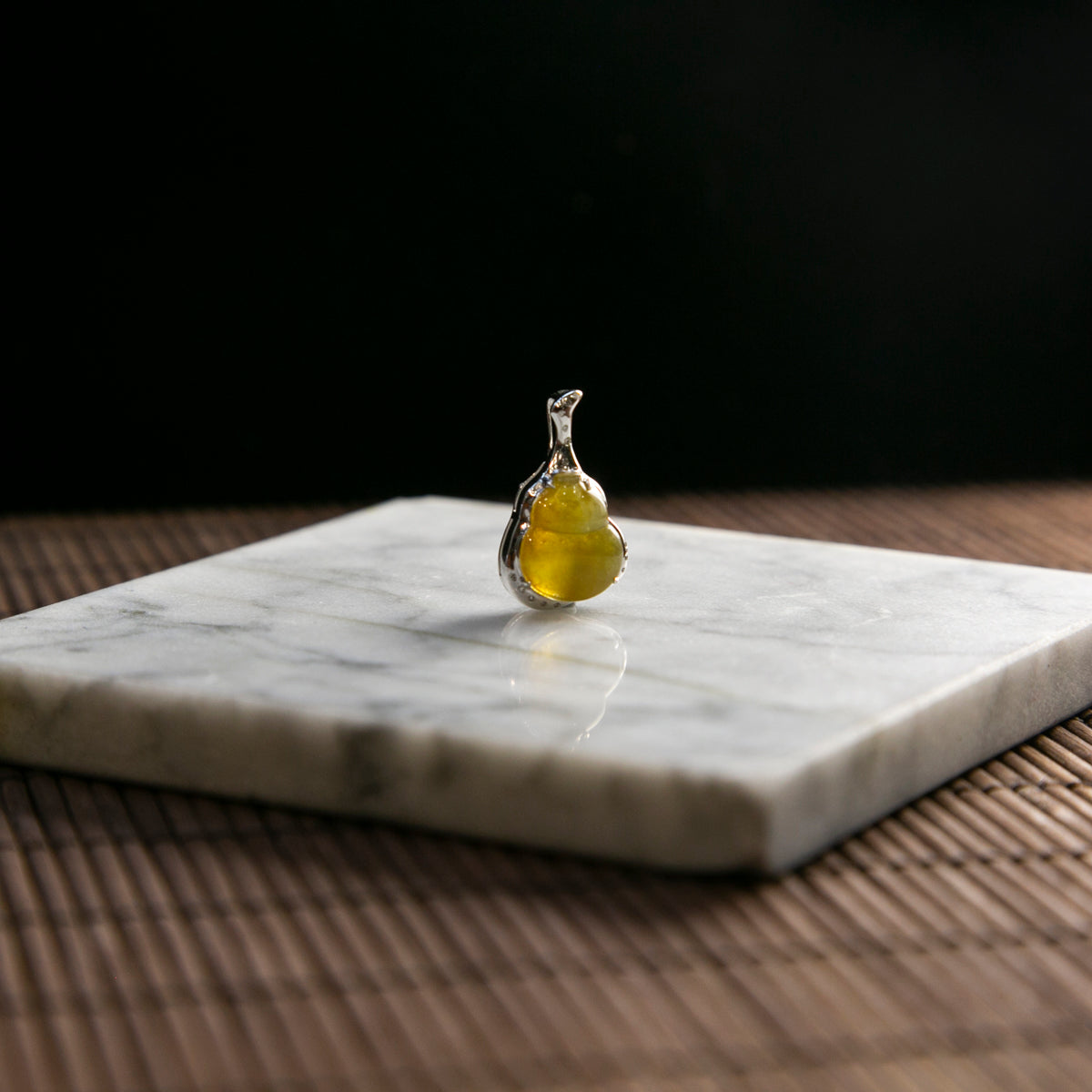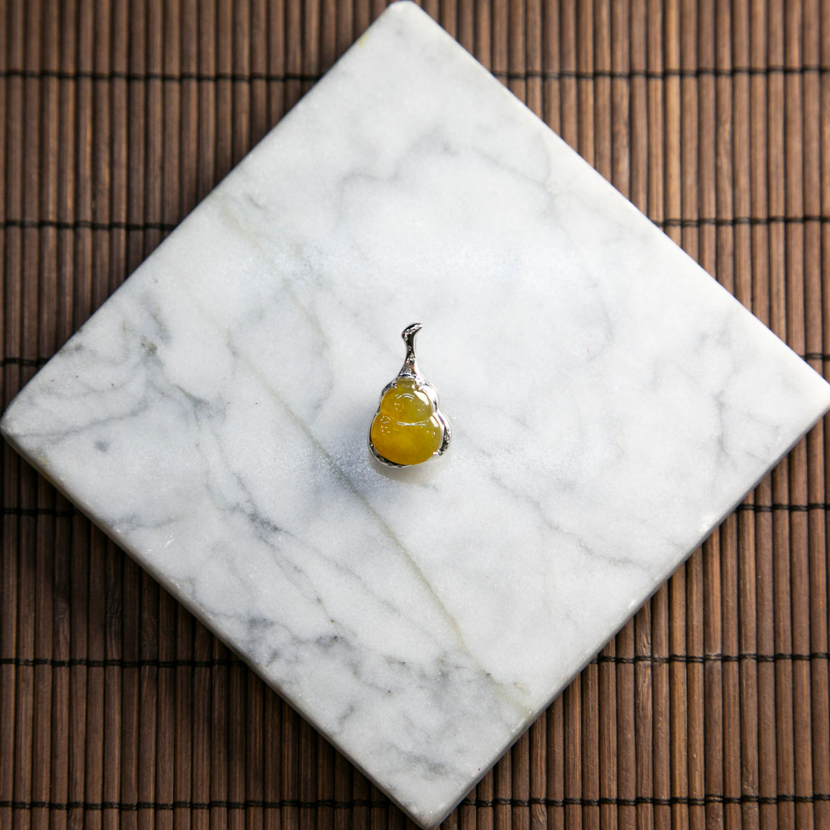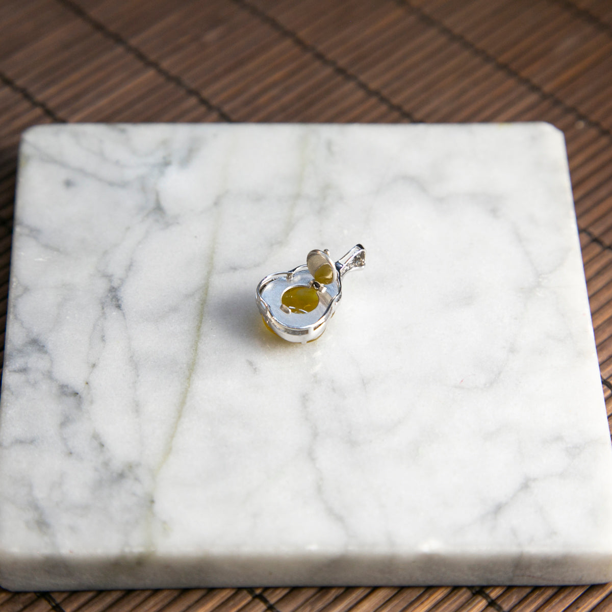 18K白金鑲鑽天然緬甸翡翠黃翡葫蘆吊墜