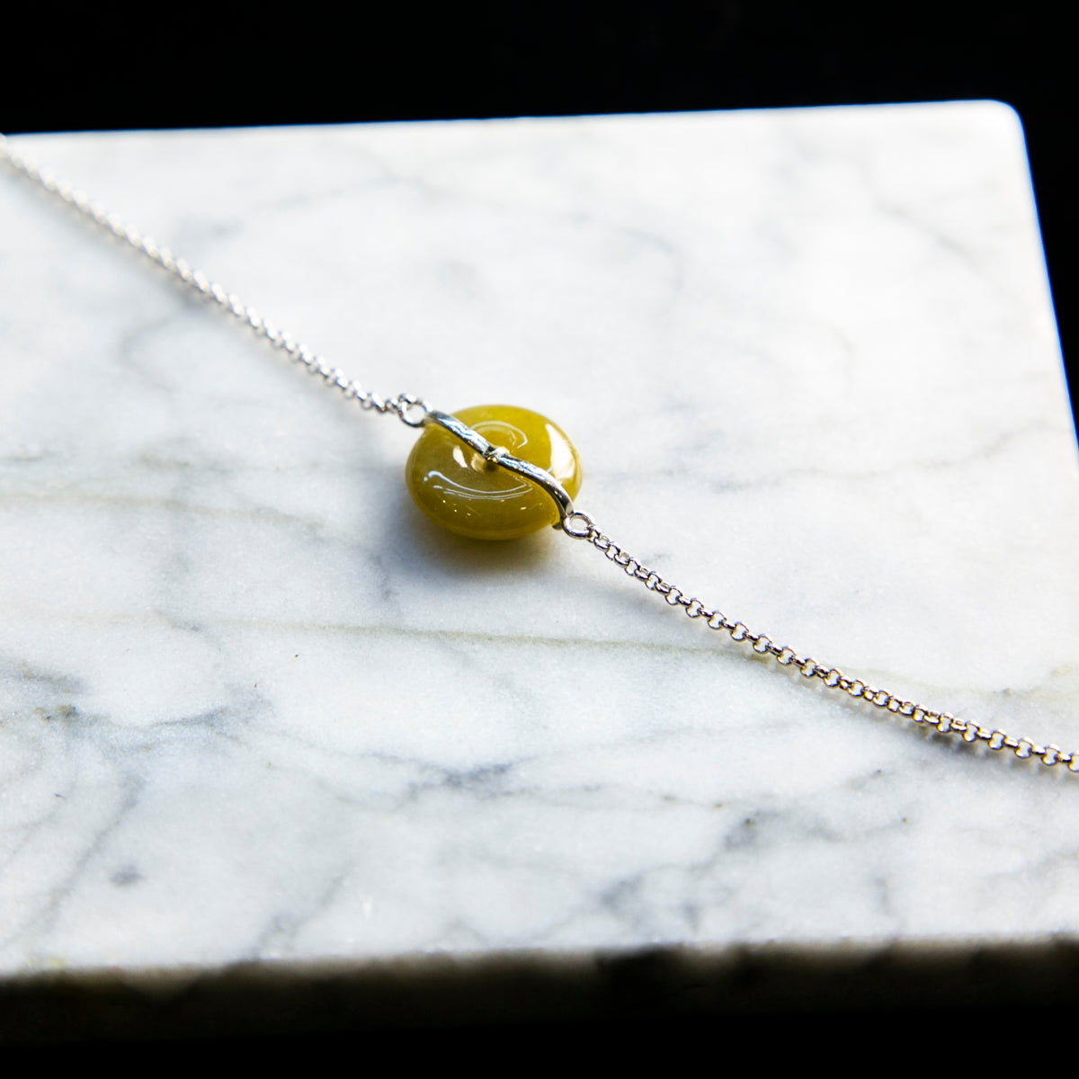 S925鑲鋯石天然緬甸翡翠黃翡平安扣手鍊