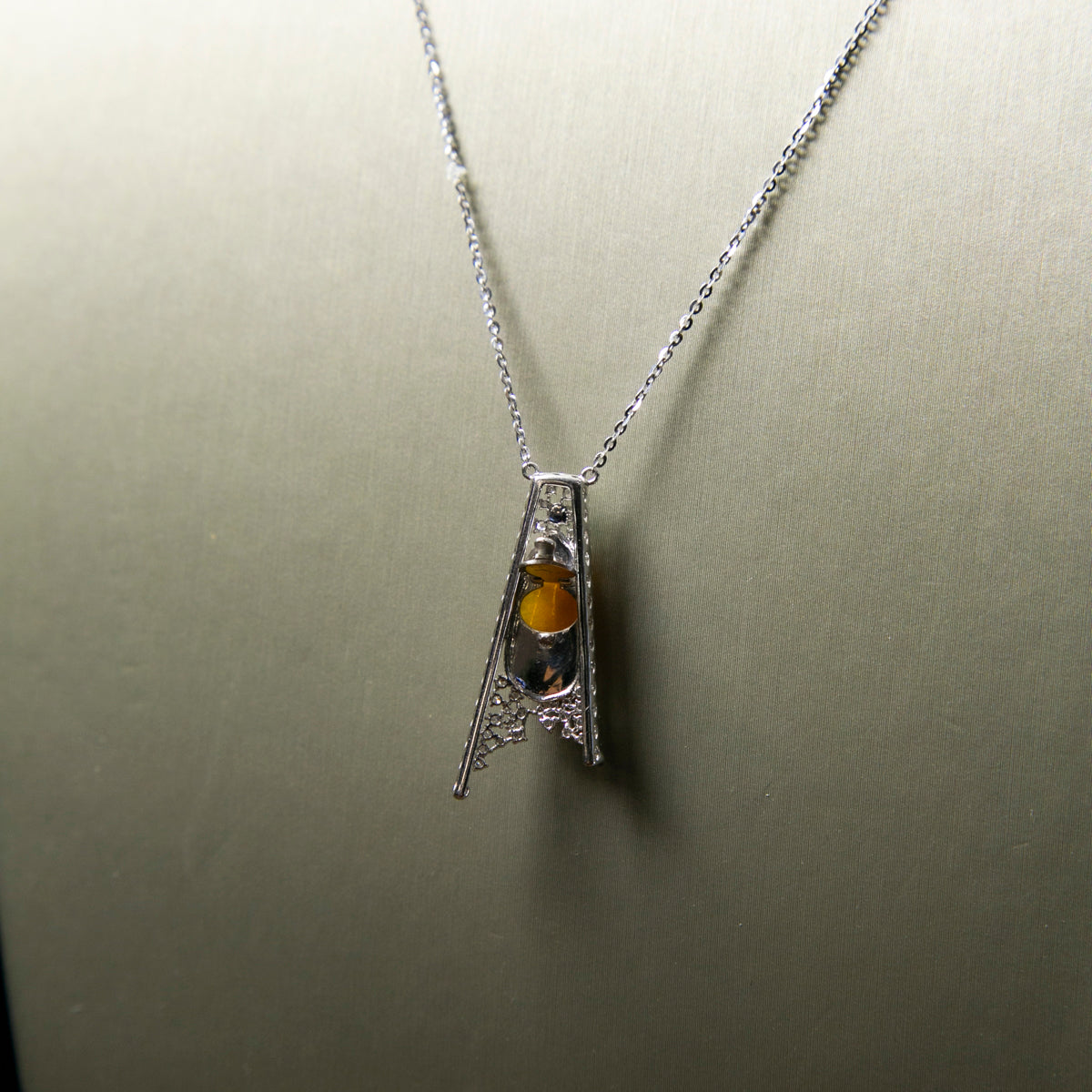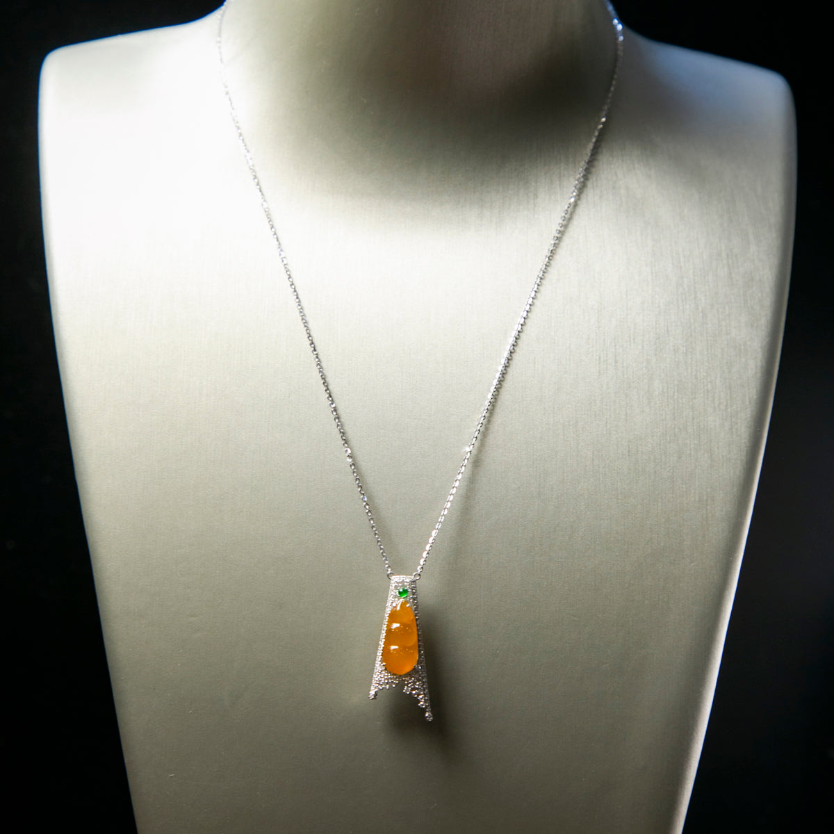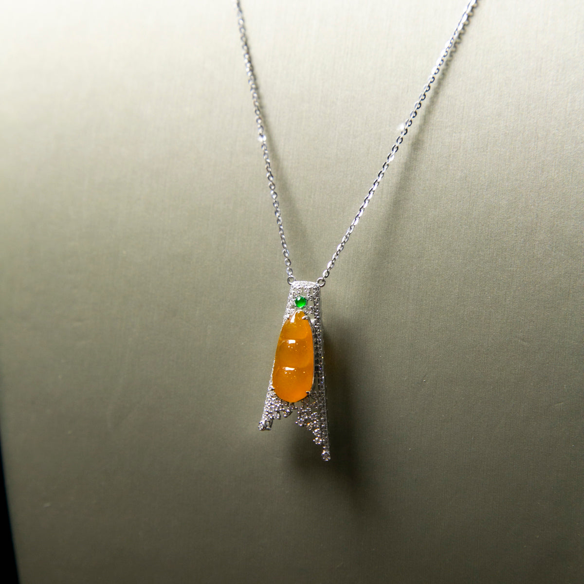 18K白金鑲鑽天然緬甸翡翠黃翡葫蘆頸鏈