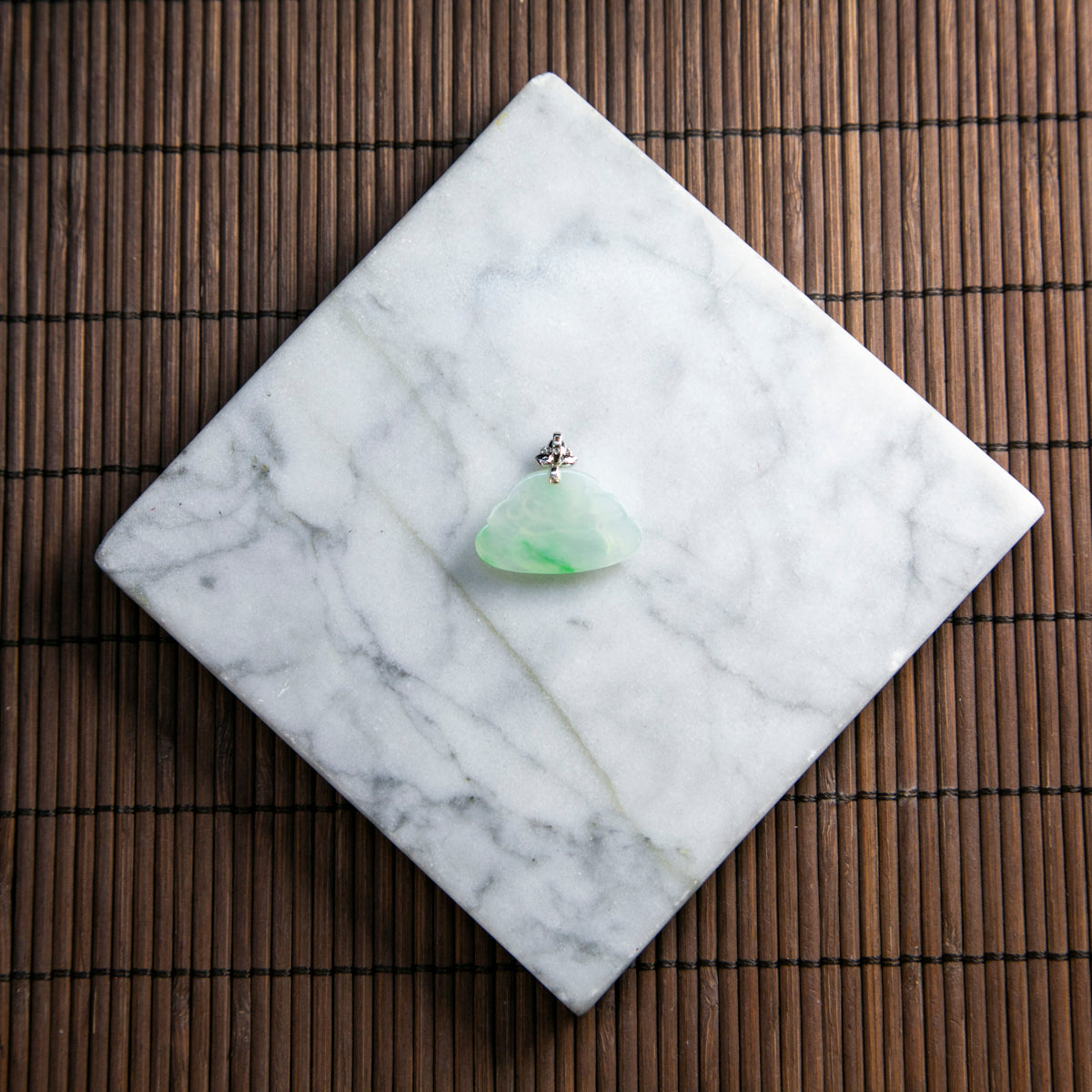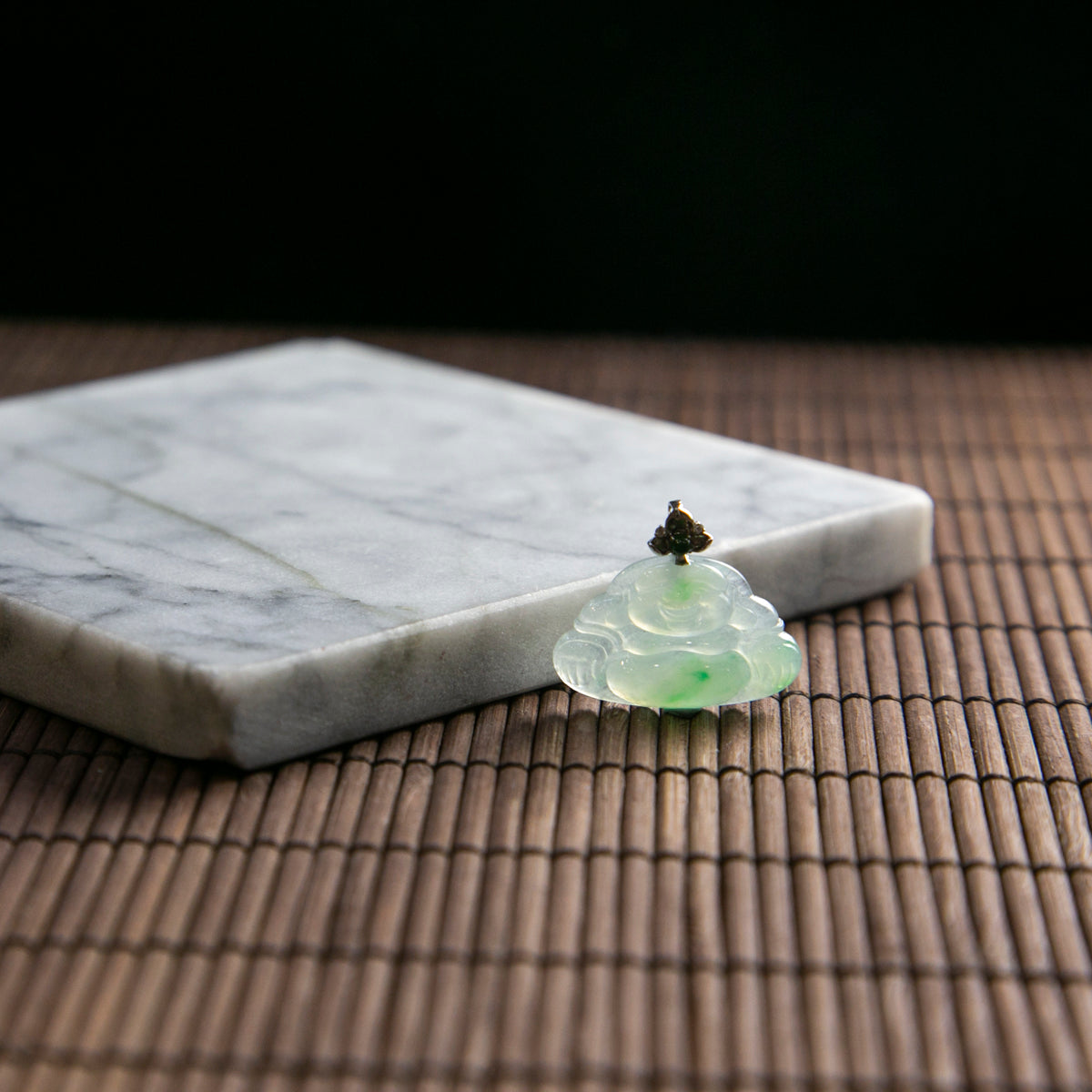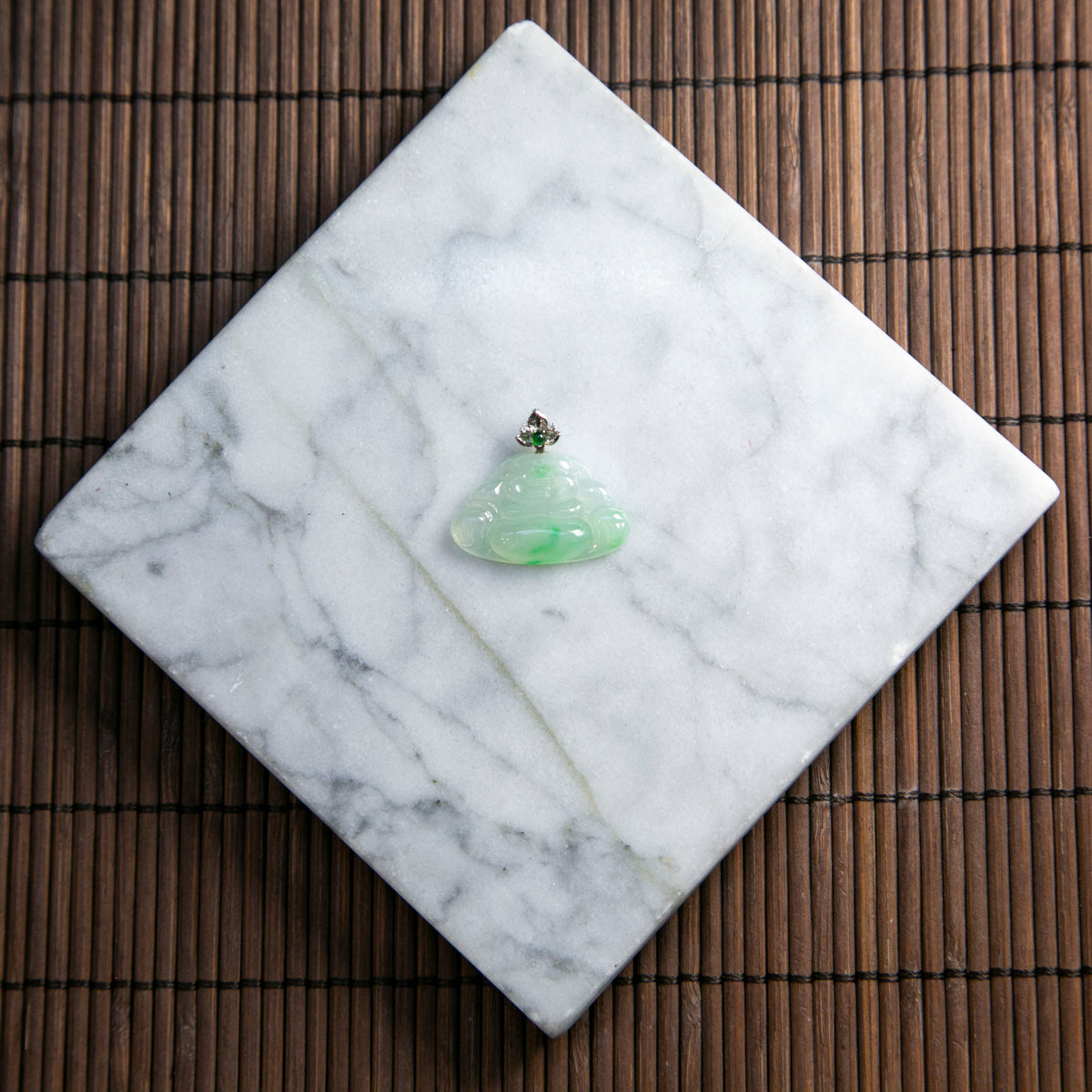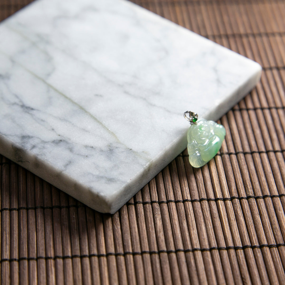 18K白金鑲鑽天然緬甸翡翠白底青笑佛吊墜