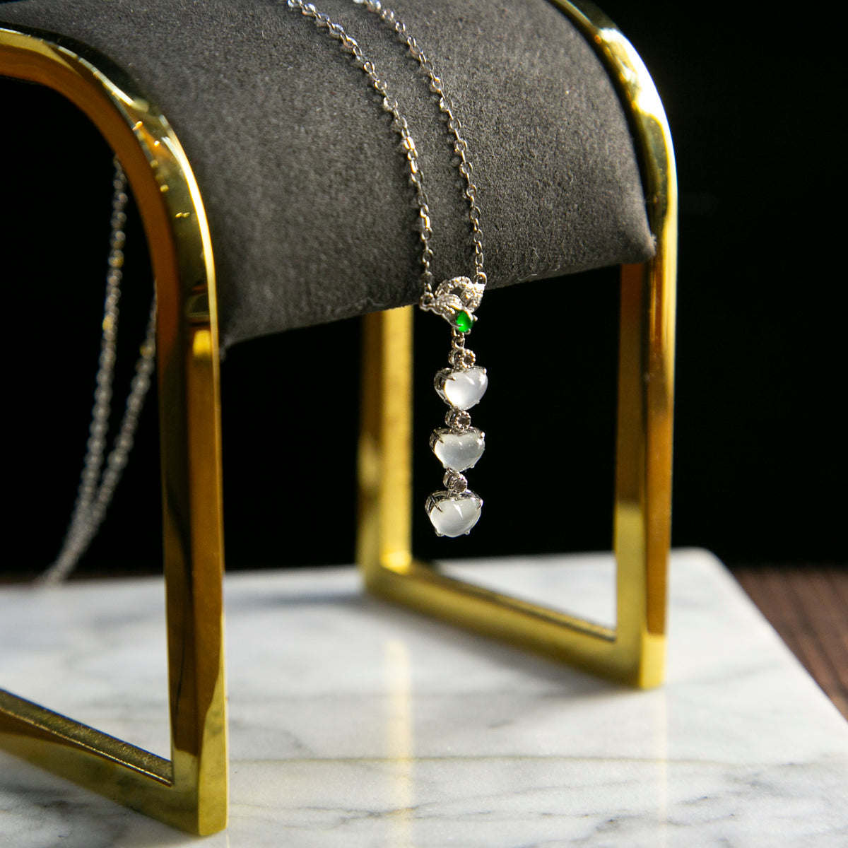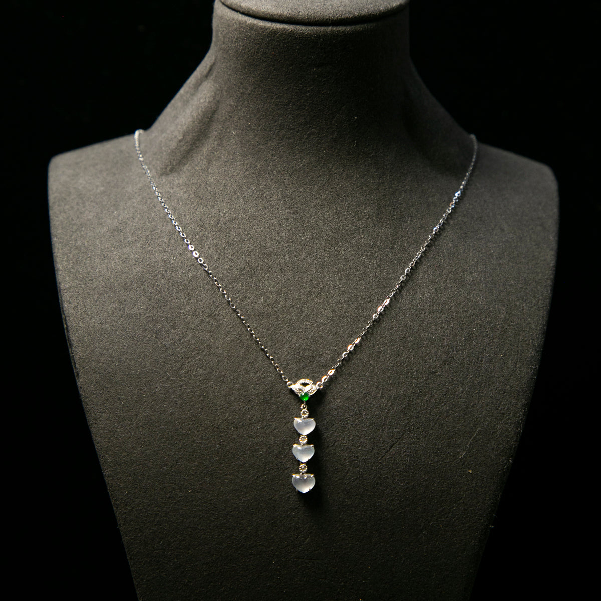 18K白金鑲鑽天然緬甸翡翠玻璃種冰白心形頸鏈