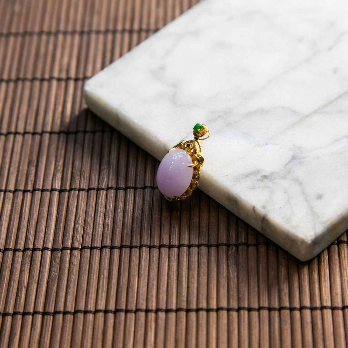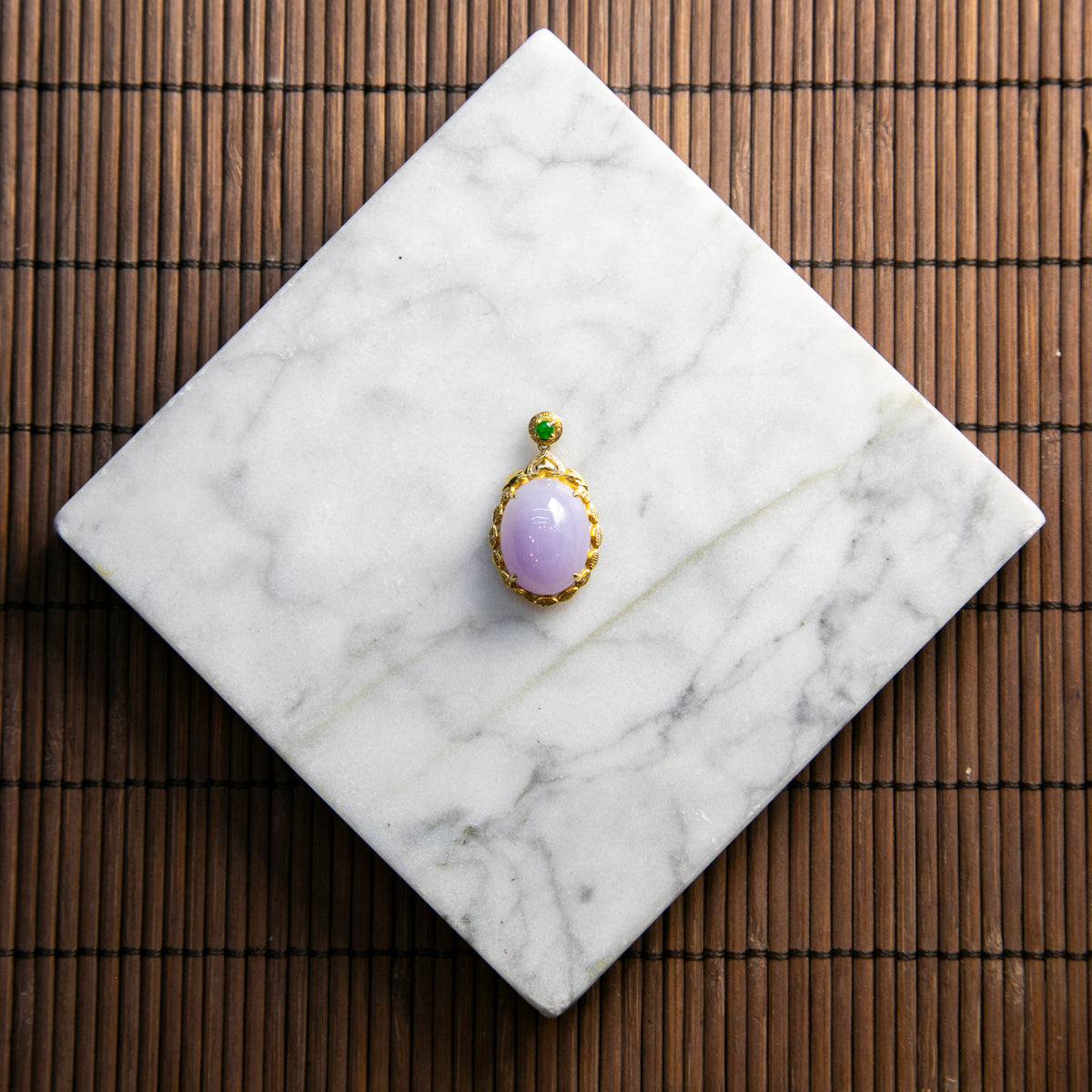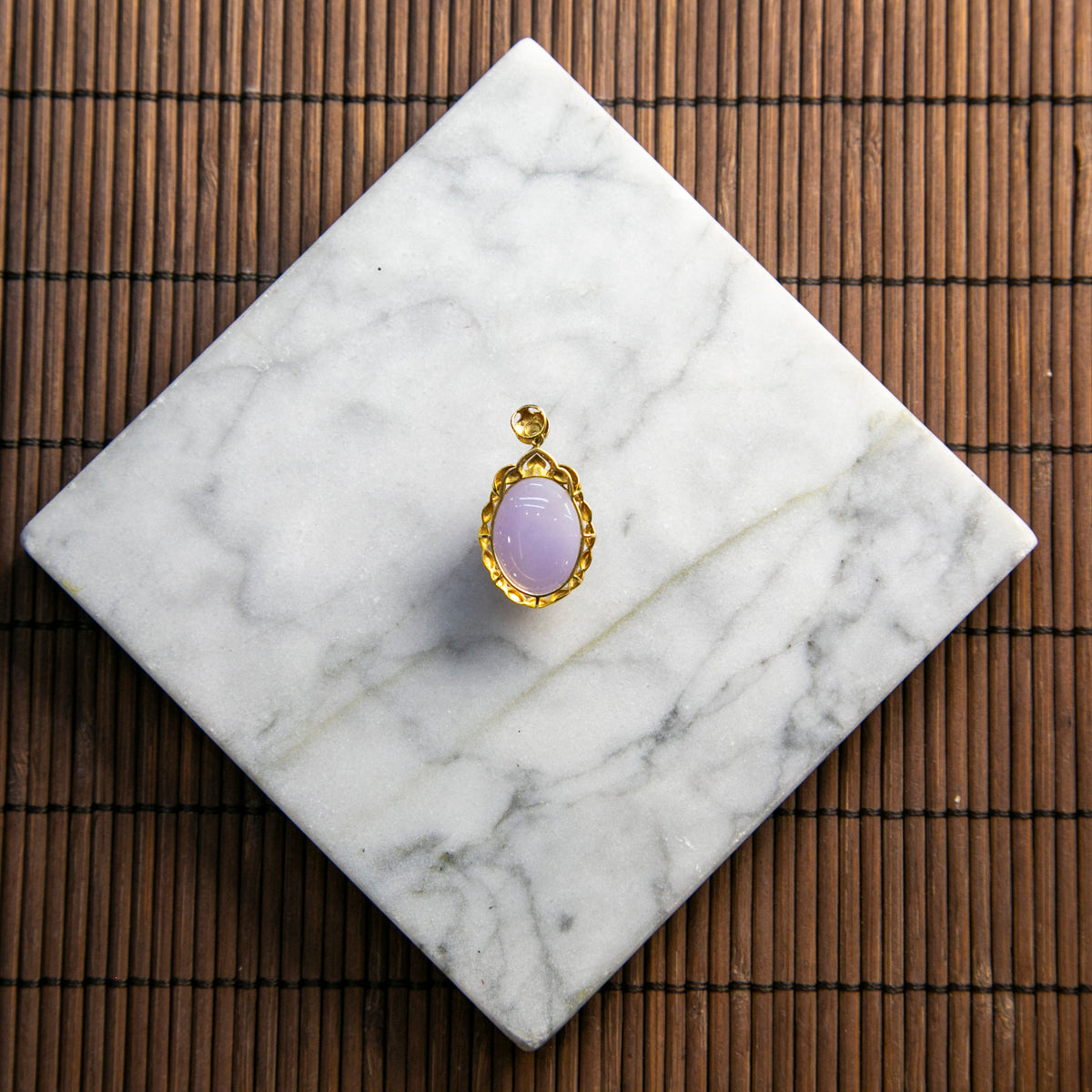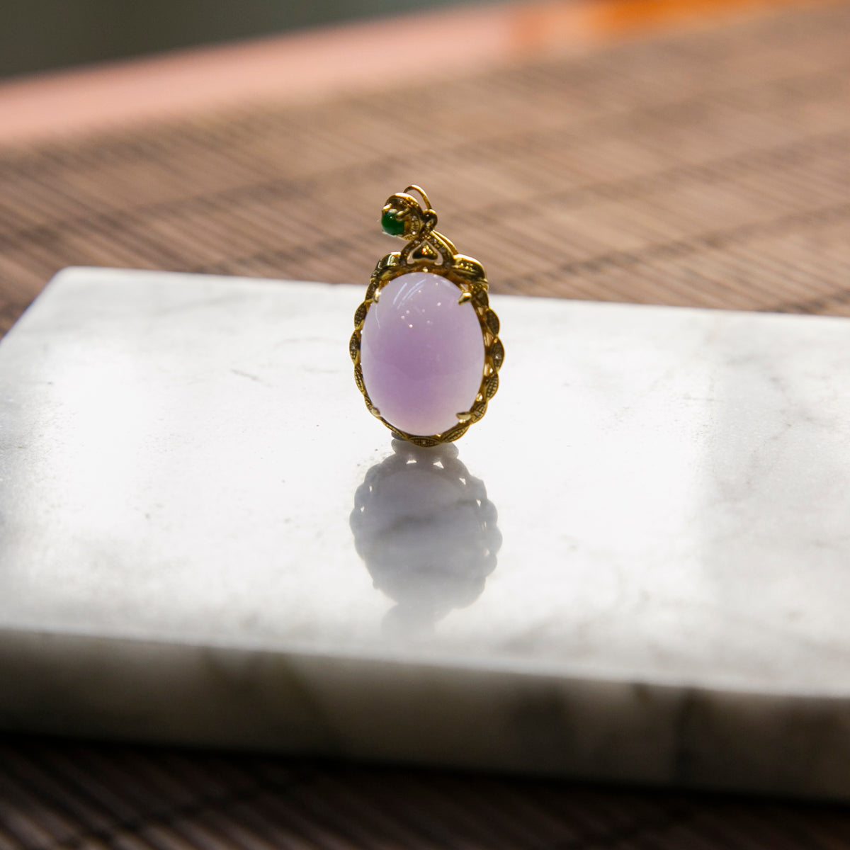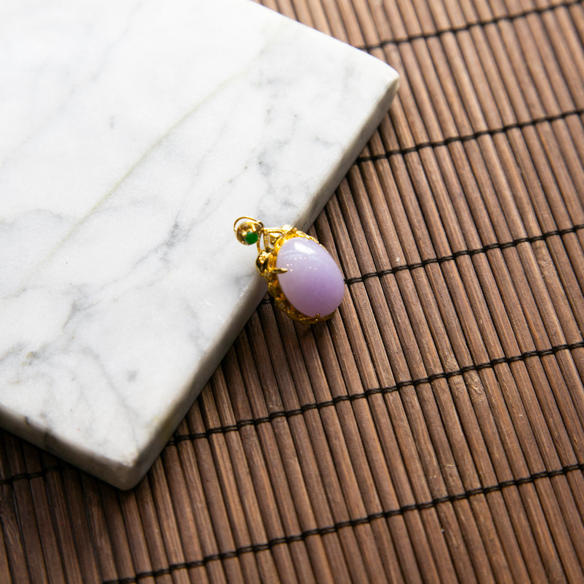 18K黃金鑲鑽天然緬甸翡翠粉紫蛋面吊墜
