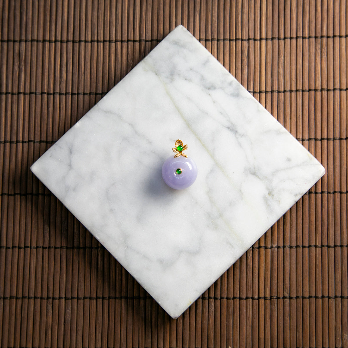 18K黃金鑲鑽天然緬甸翡翠粉紫平安扣吊墜