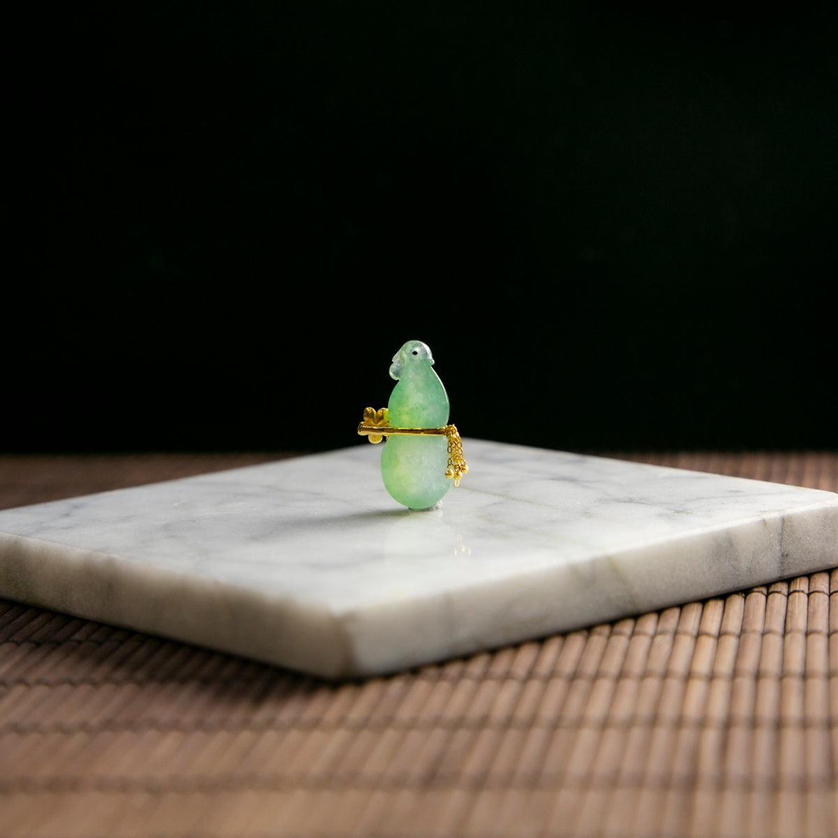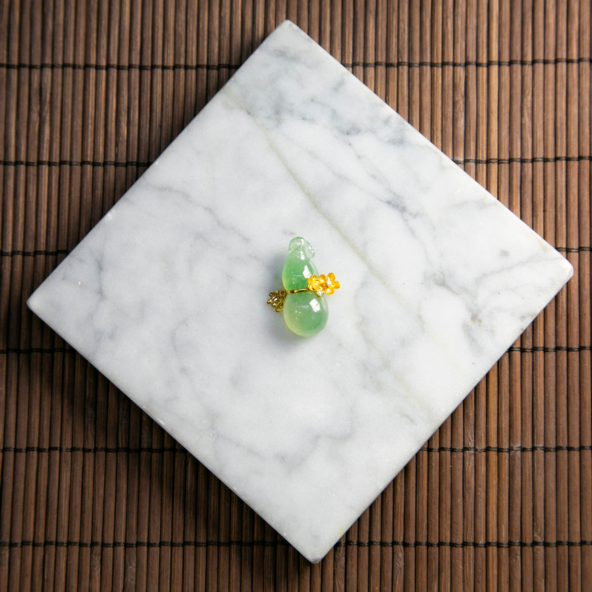18K白金鑲鑽天然緬甸翡翠冰綠葫蘆吊墜