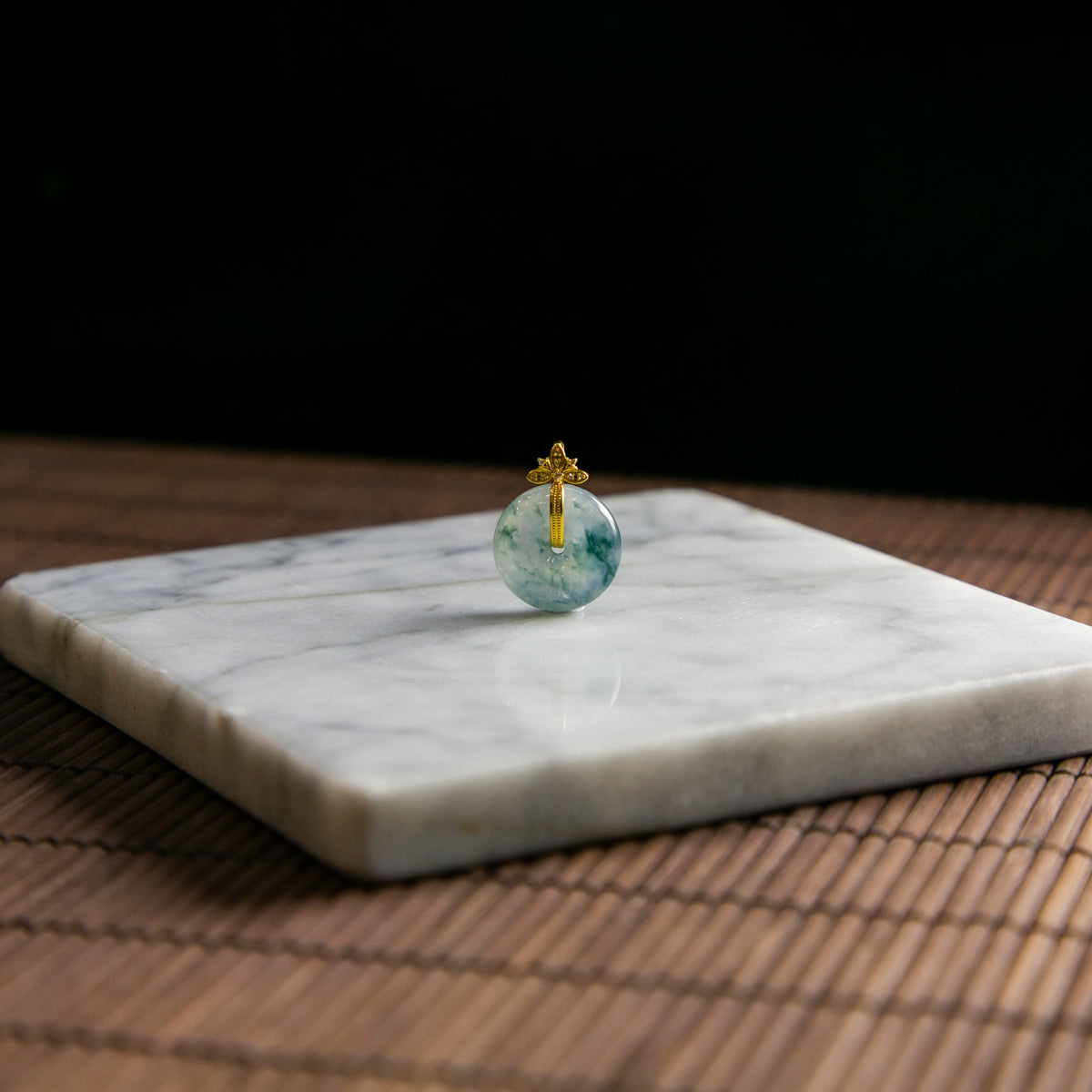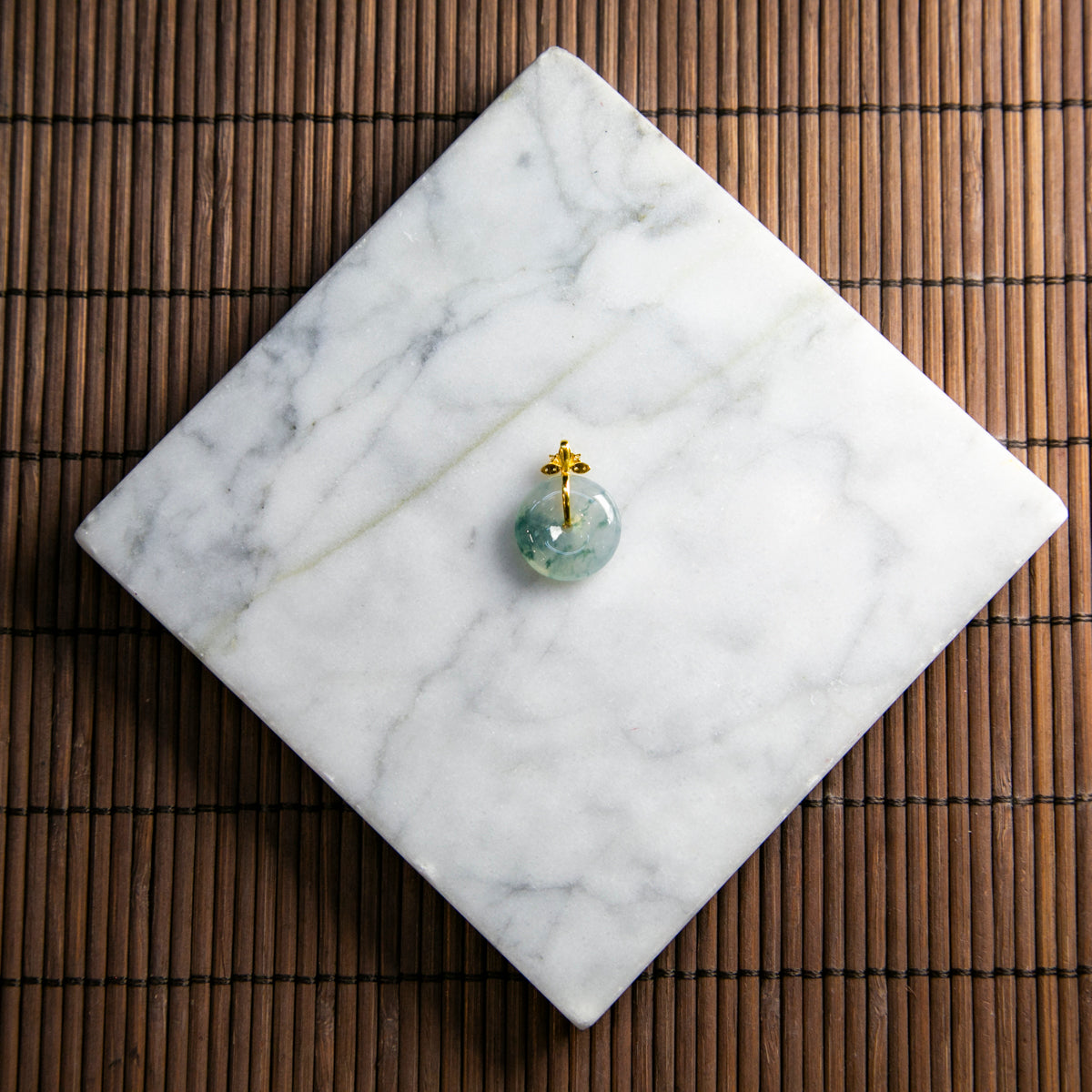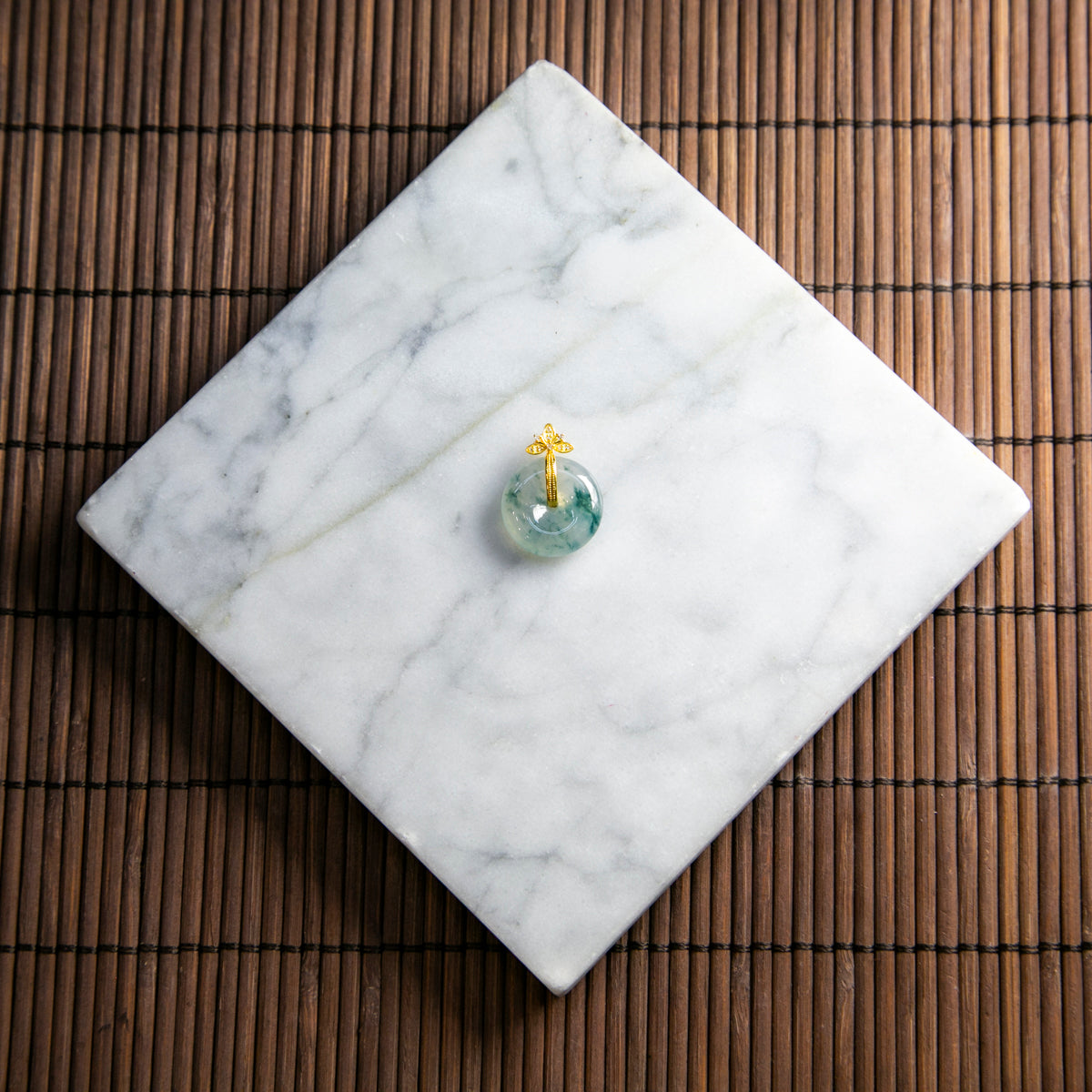 18K黃金鑲鑽天然緬甸翡翠飄藍花平安扣吊墜