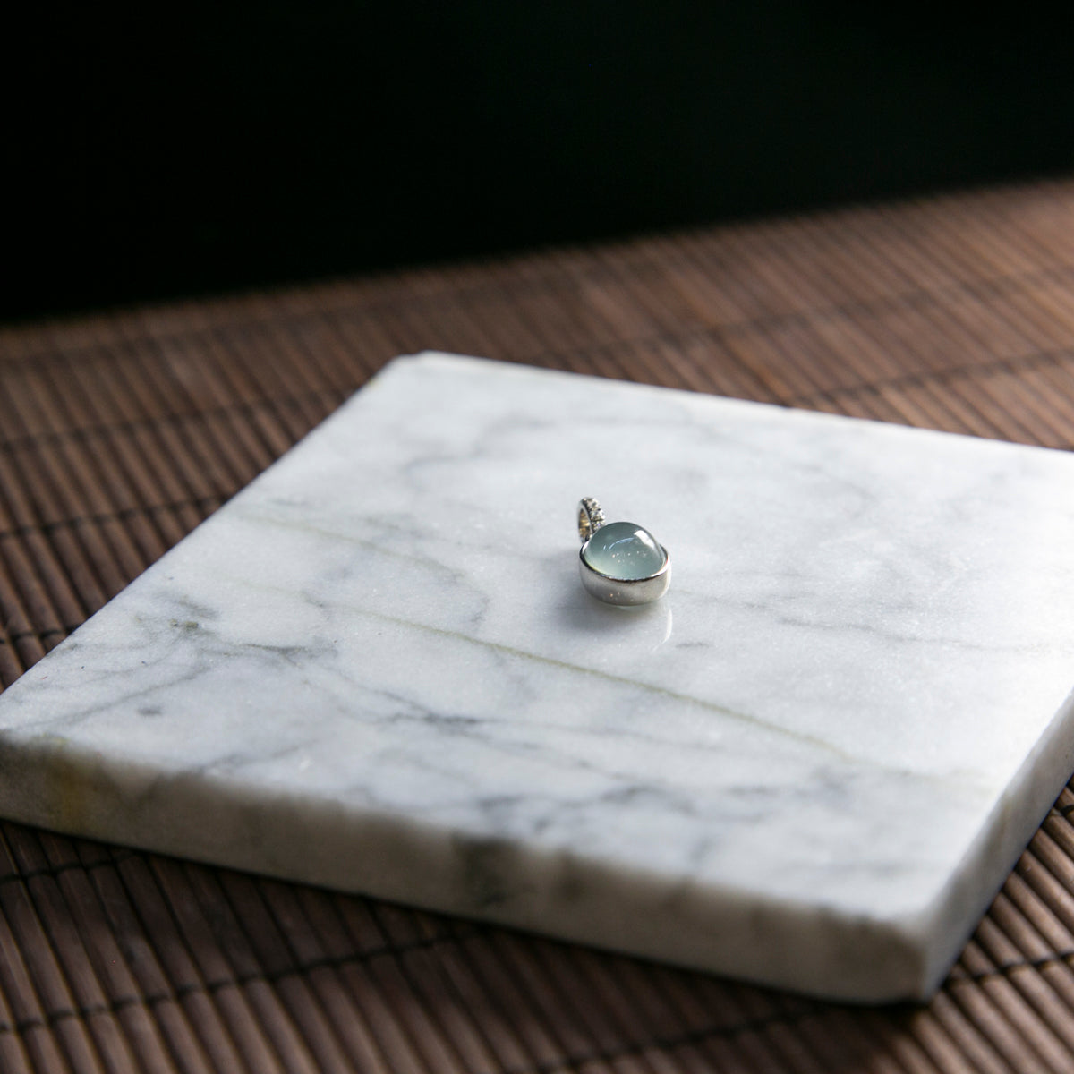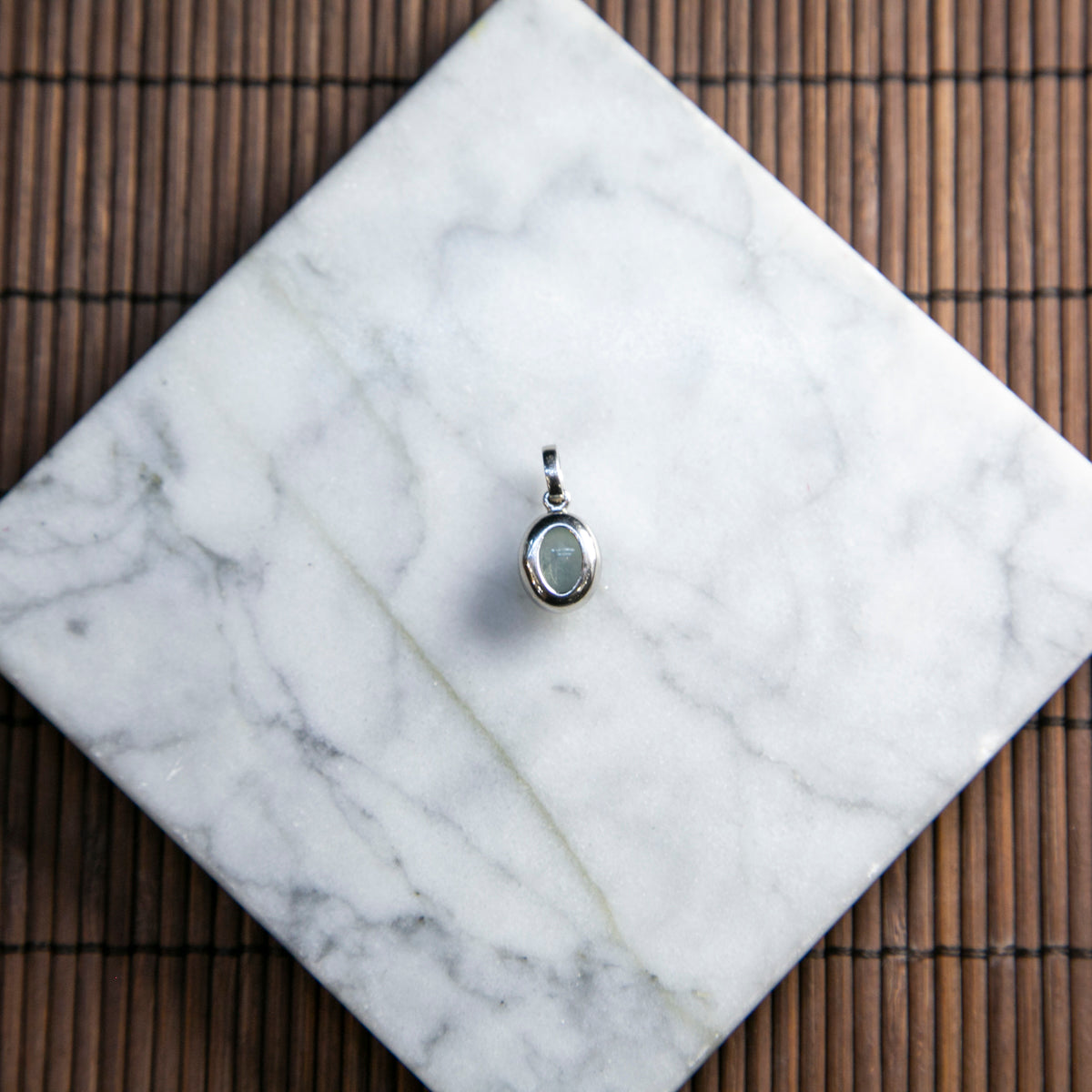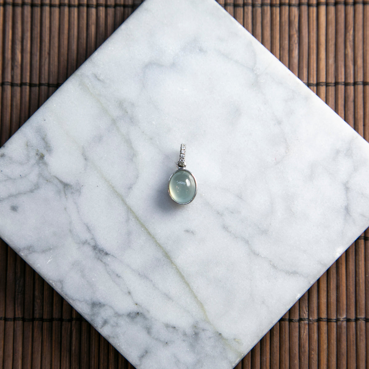 S925純銀鑲鑽天然緬甸翡翠玻璃種冰白蛋面吊墜