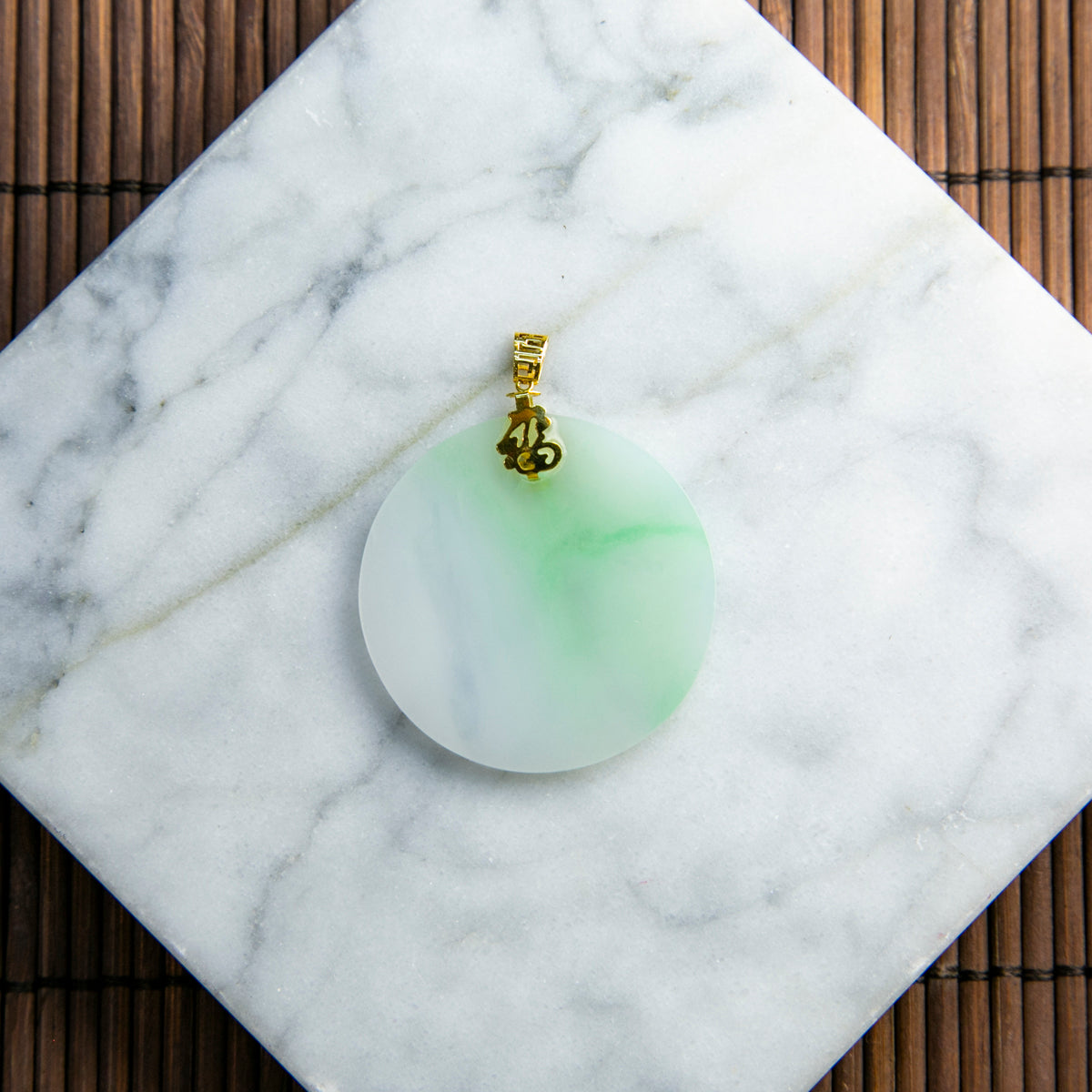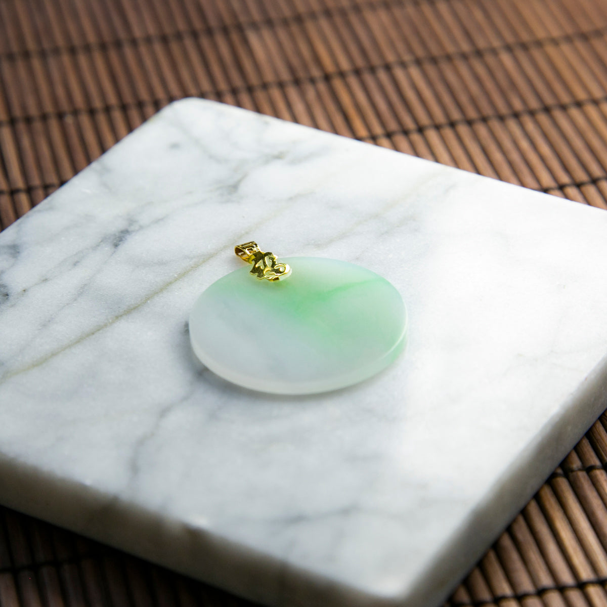 18K天然緬甸翡翠白底青圓牌吊墜
