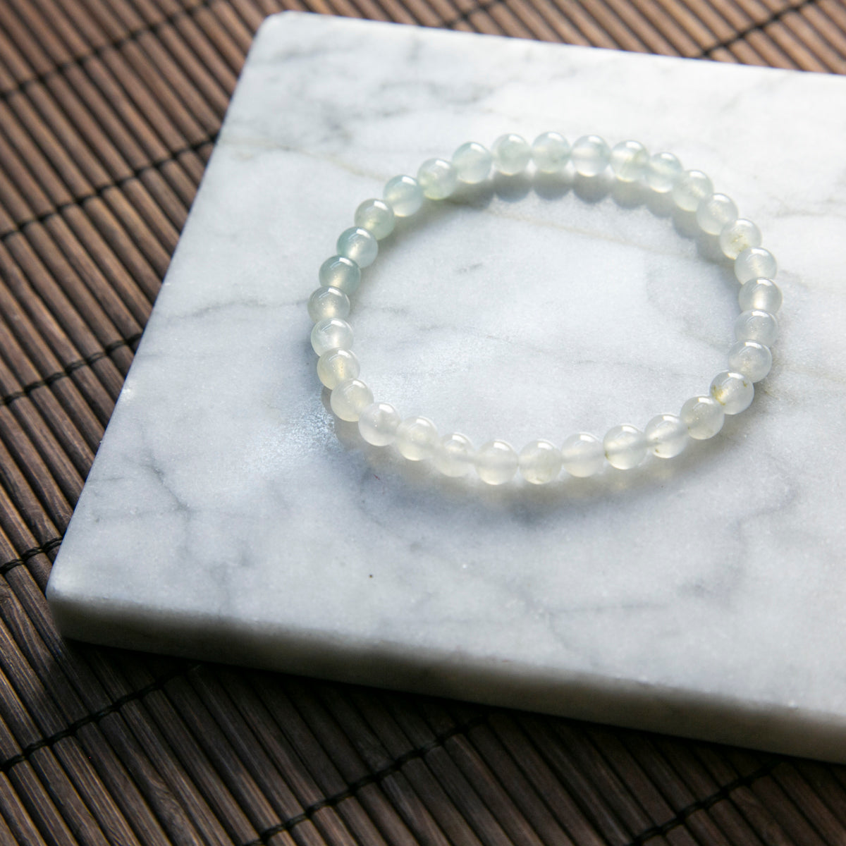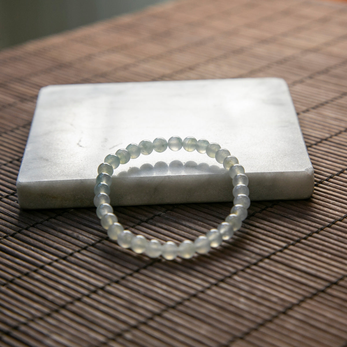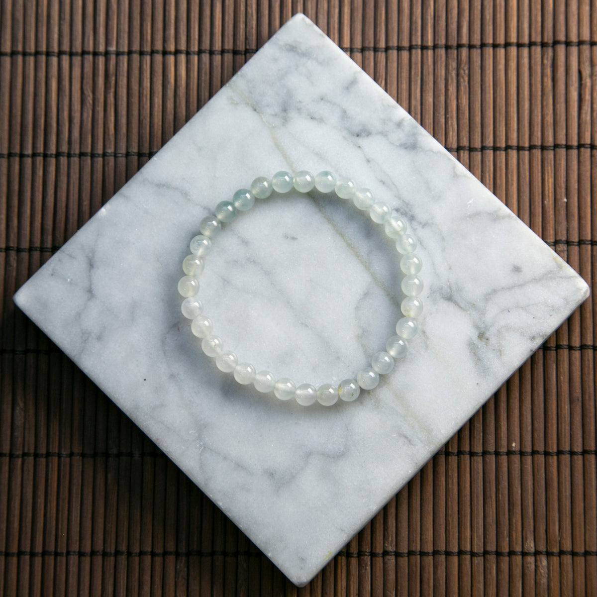 天然緬甸翡翠冰白飄藍花珠串手鏈