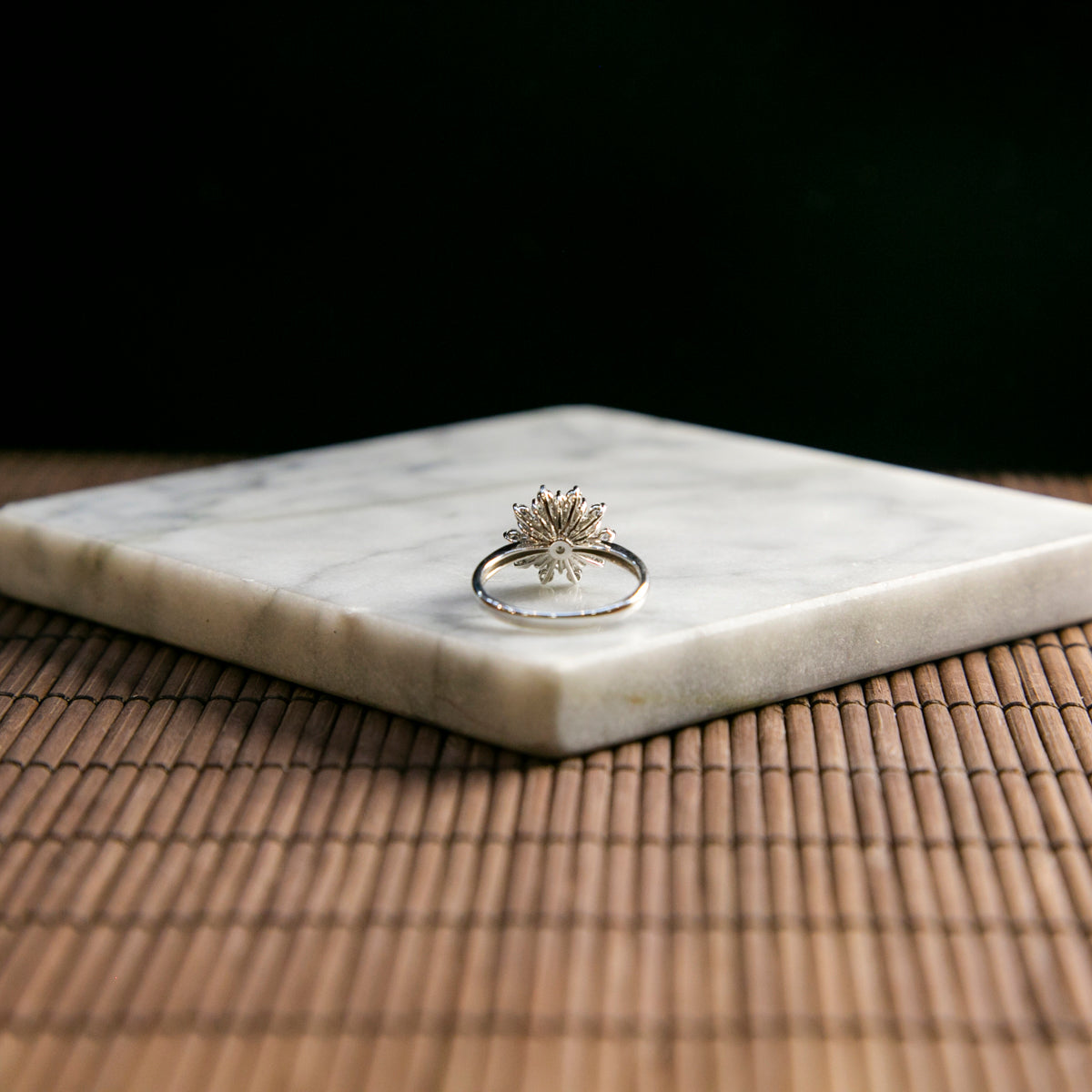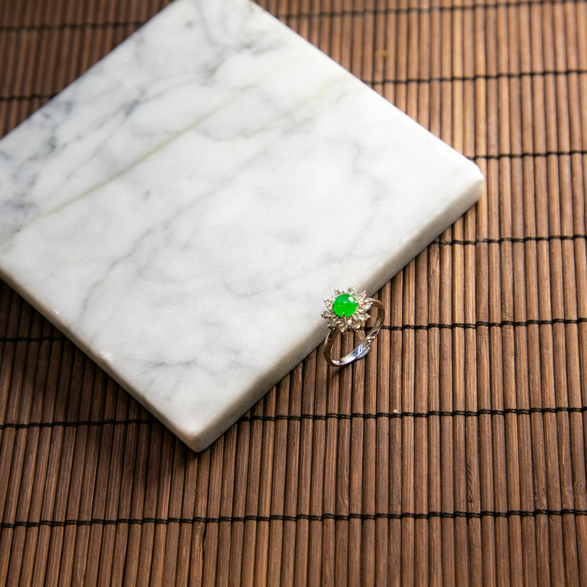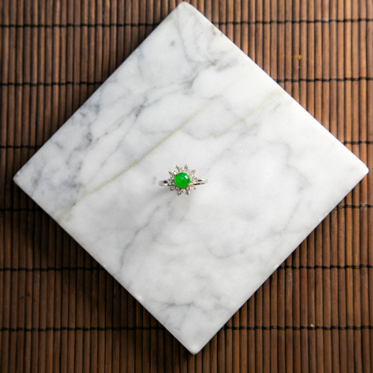 18K白金鑲鑽天然緬甸翡翠綠蛋面戒指