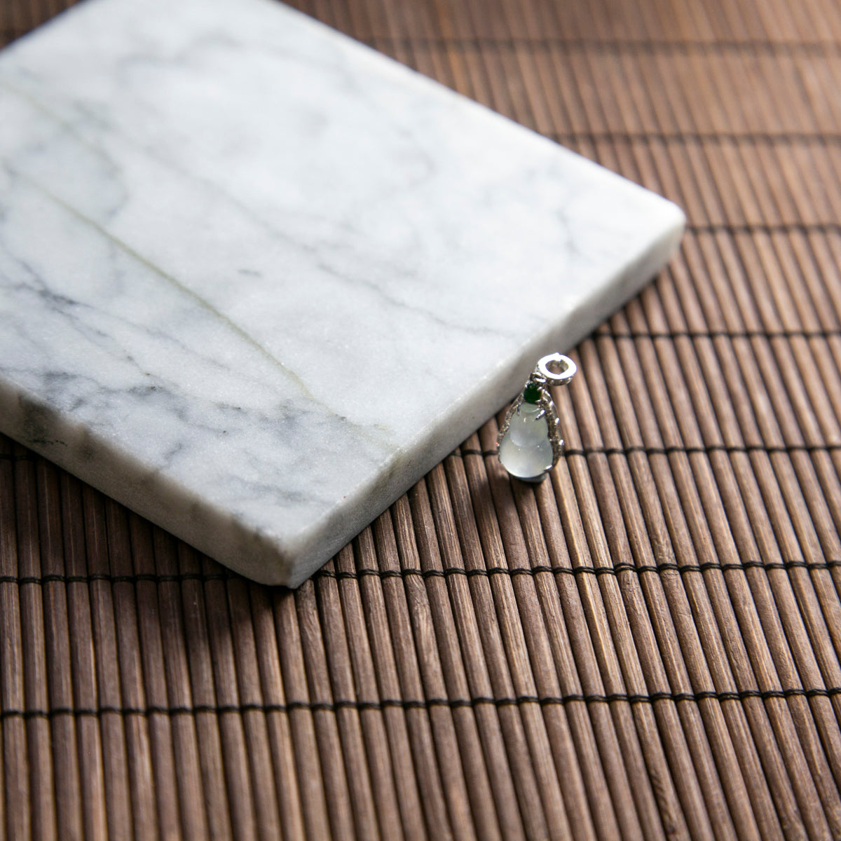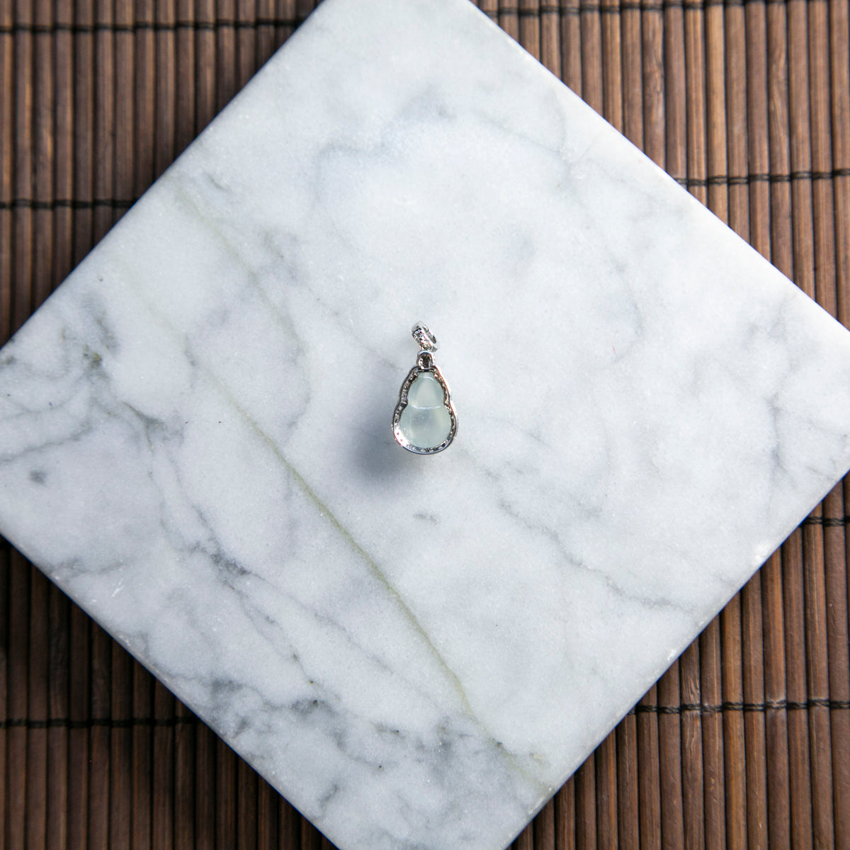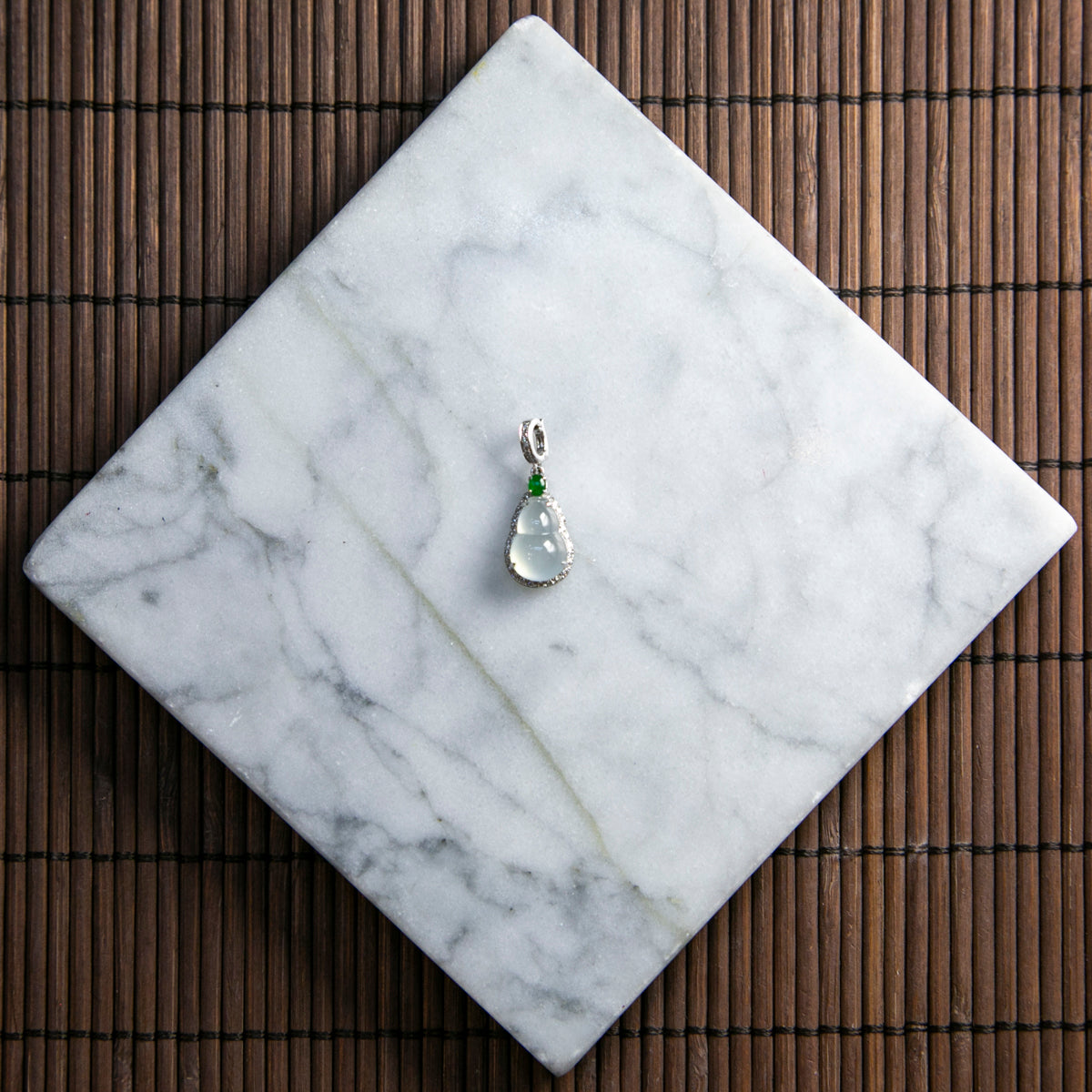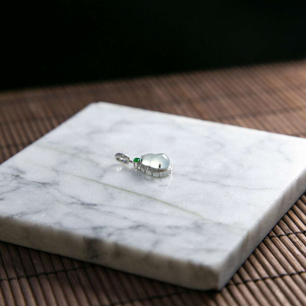 18K白金鑲鑽天然緬甸翡翠冰白葫蘆吊墜