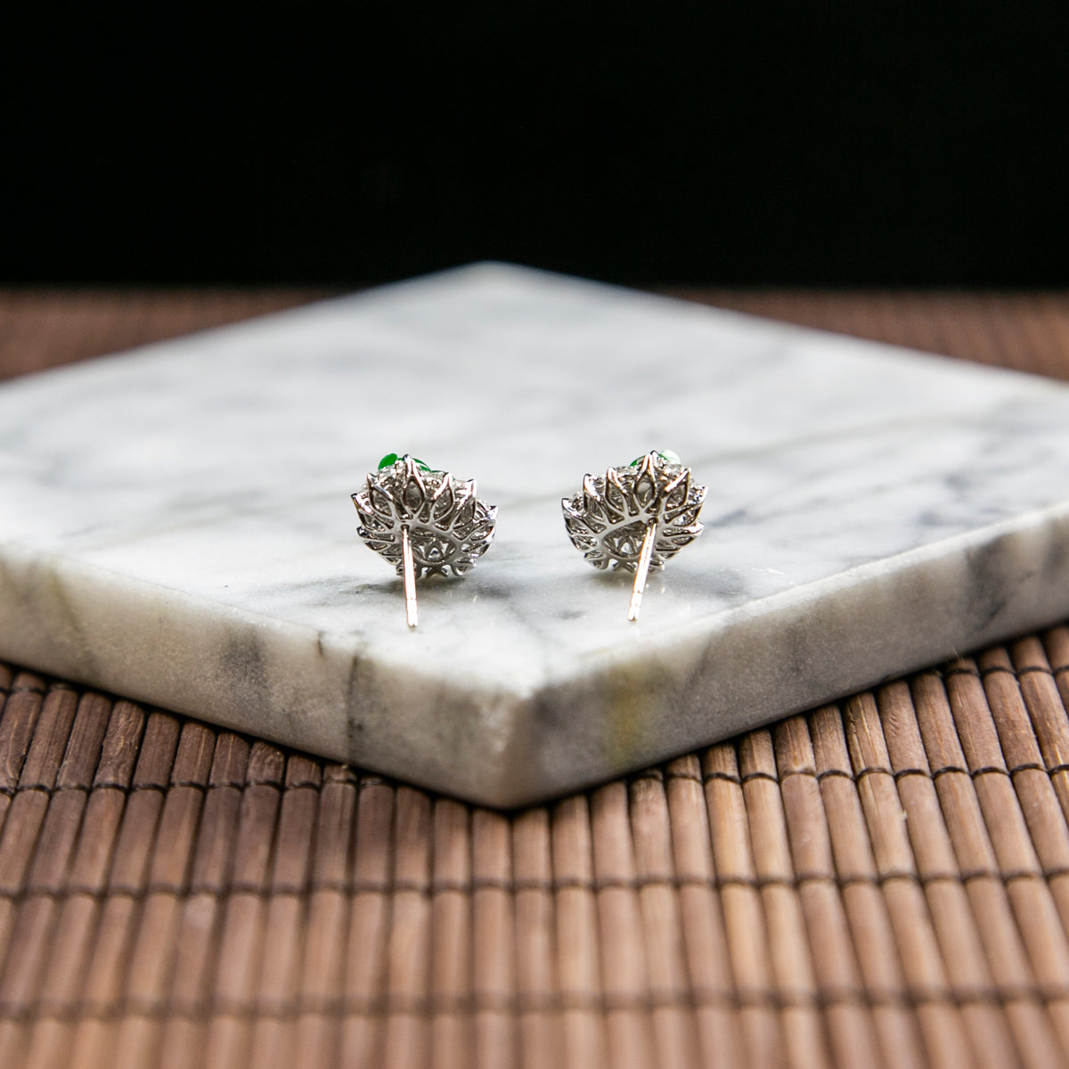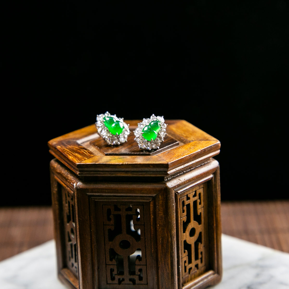 18K白金鑲鑽天然緬甸翡翠玻璃帝王綠葫蘆耳針