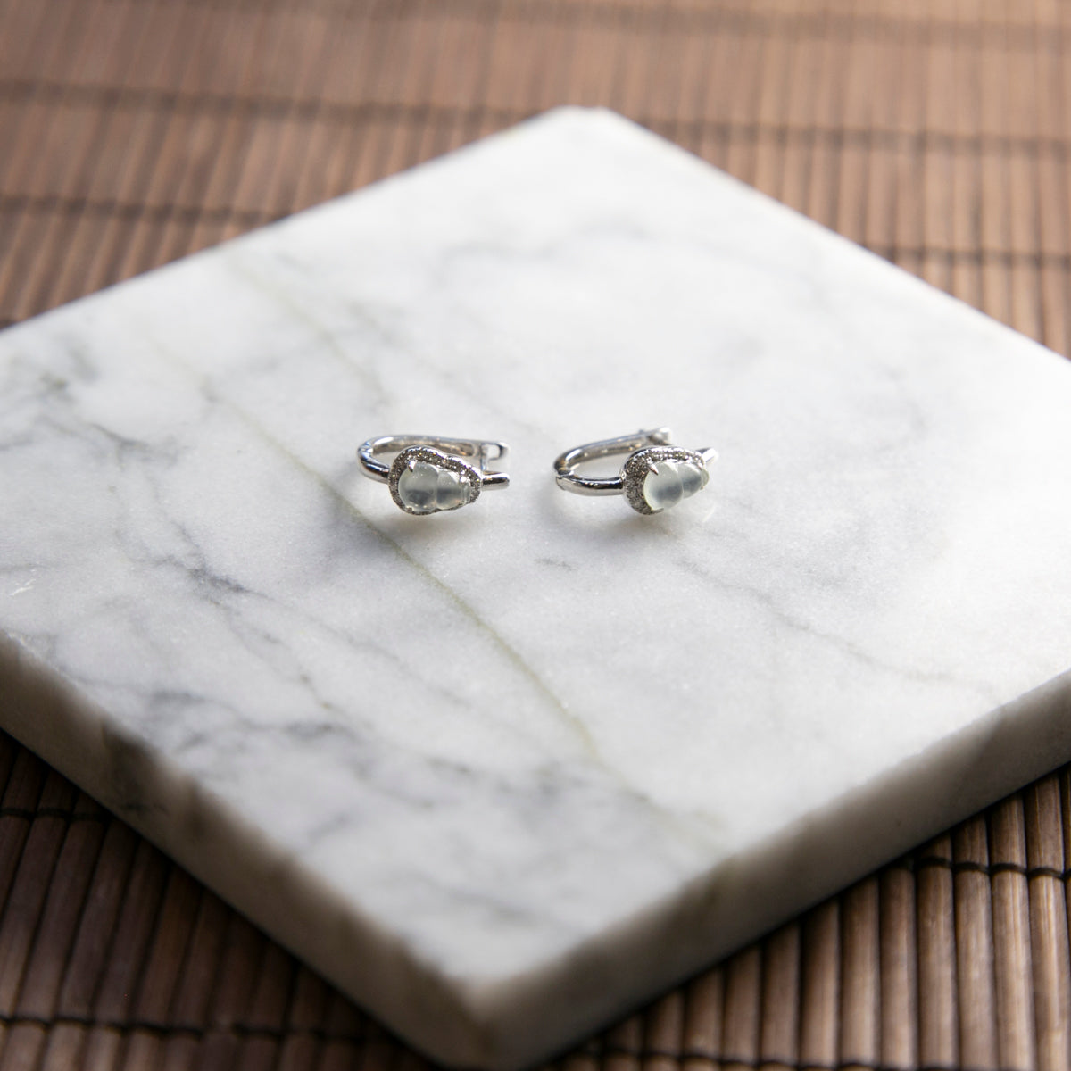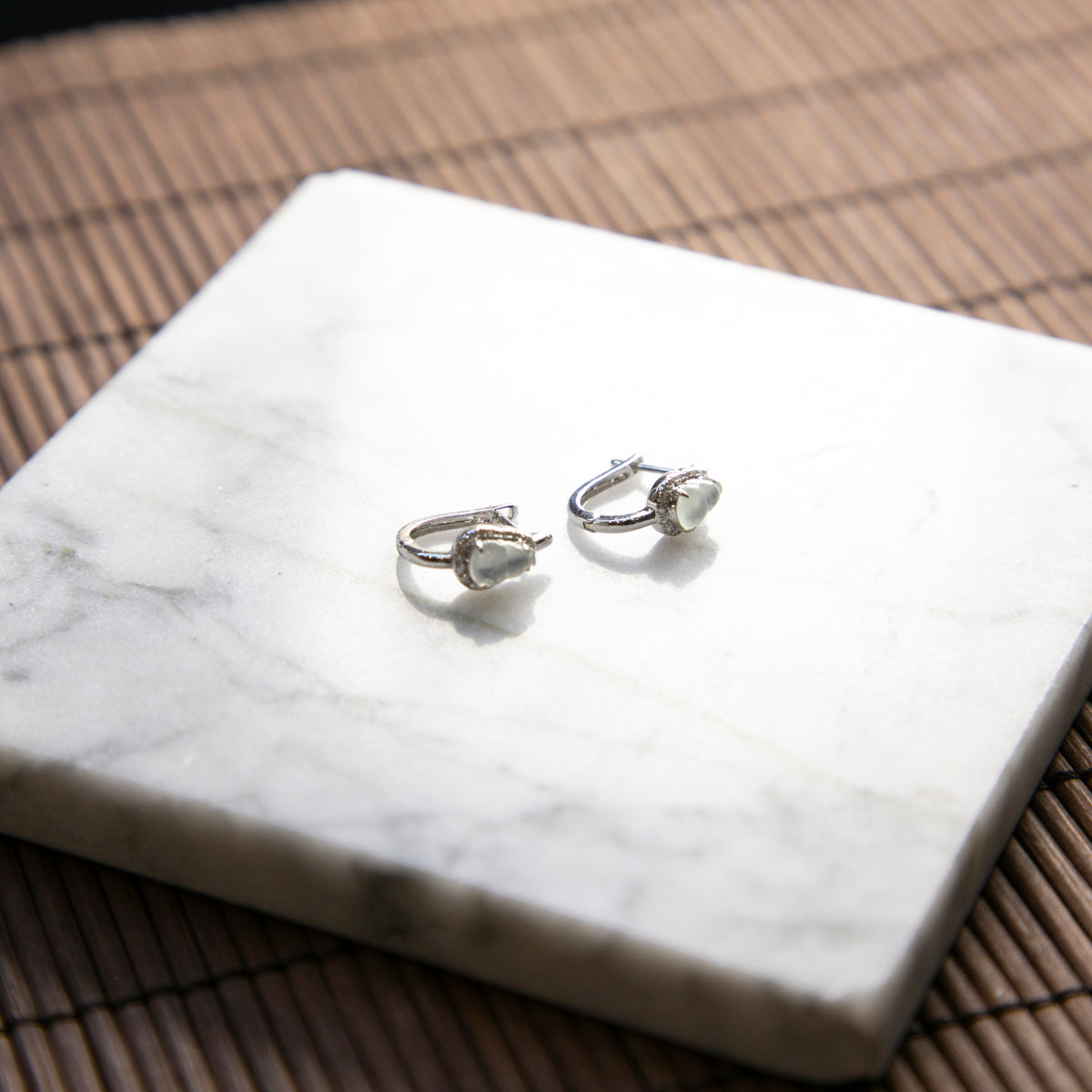 18K白金鑲鑽天然緬甸翡翠玻璃種葫蘆耳環