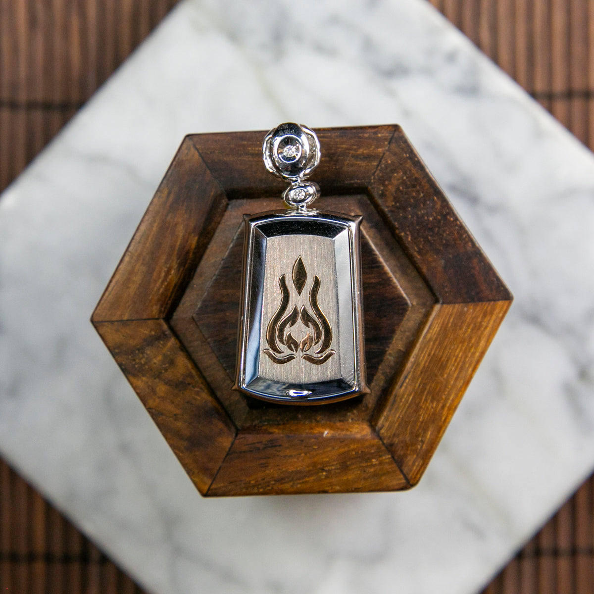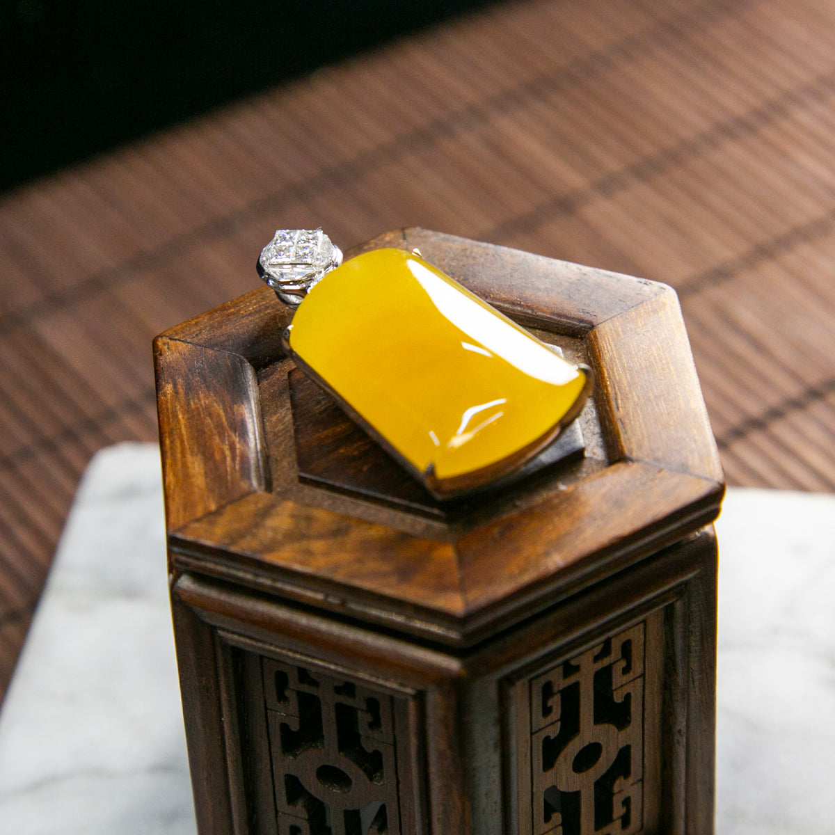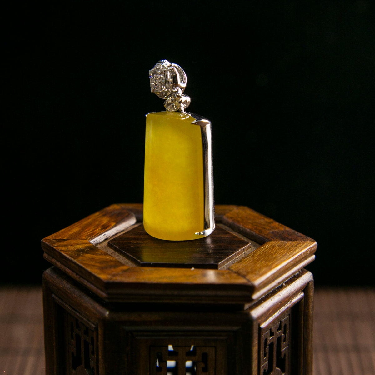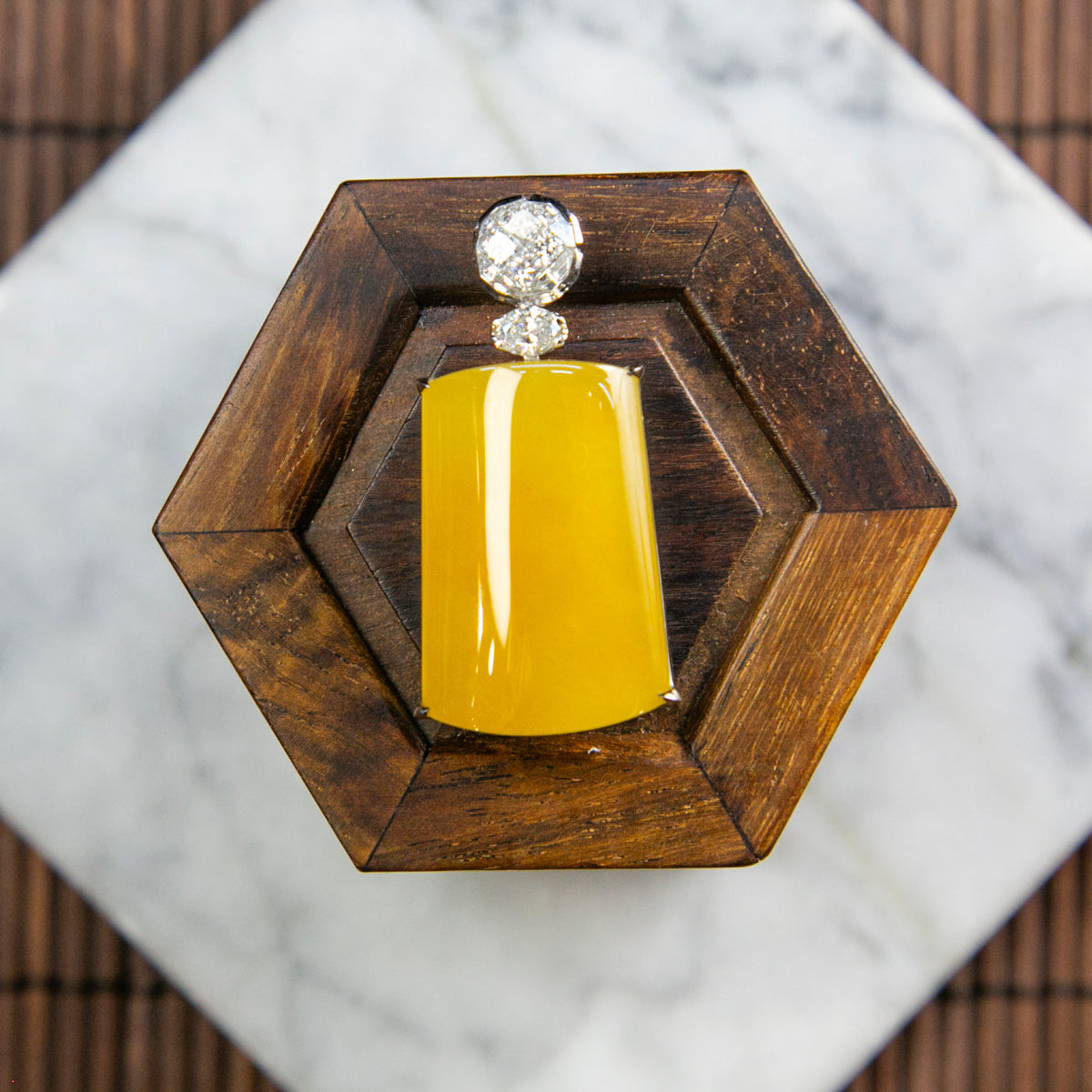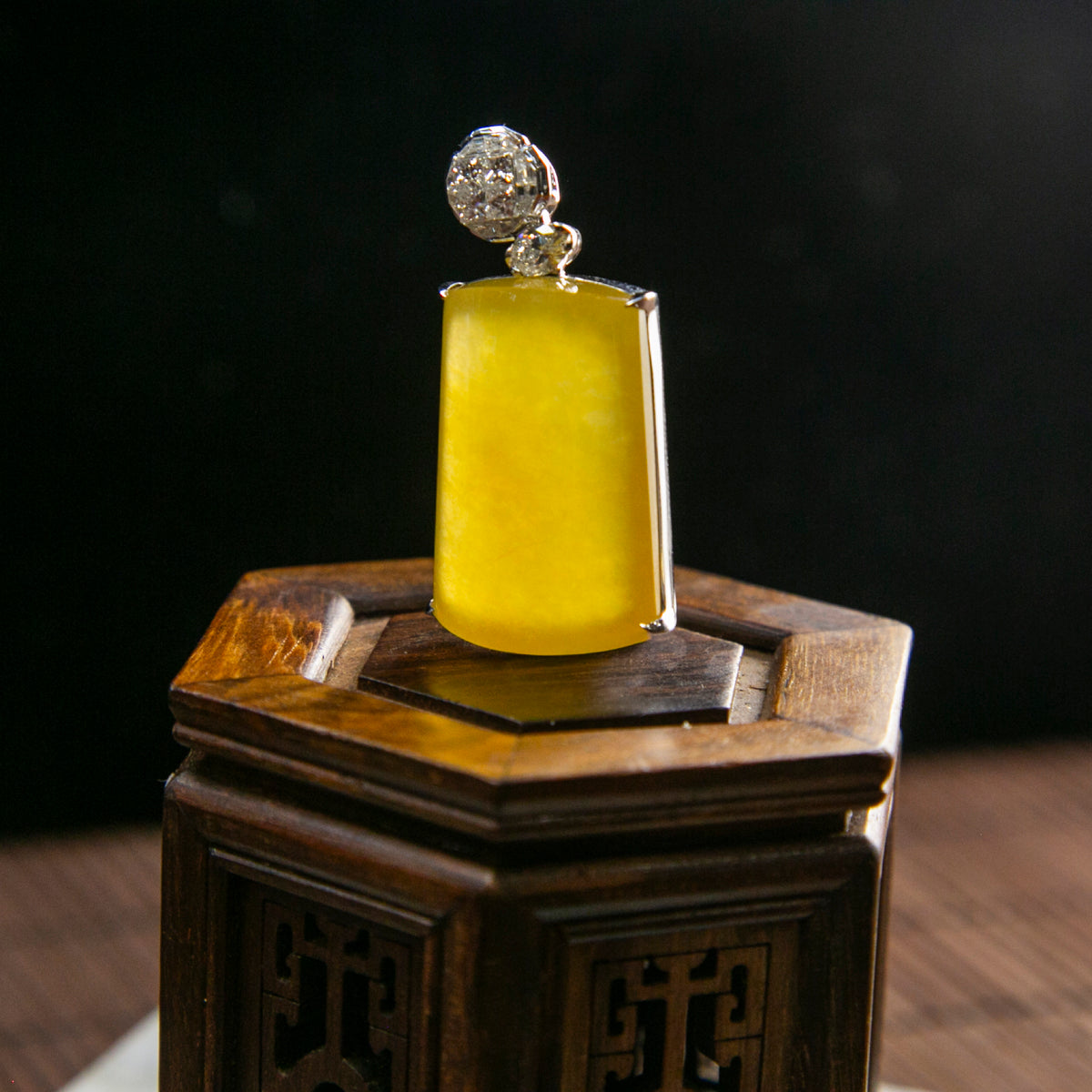 18K白金鑲鑽滿色冰黃翡無事牌吊墜