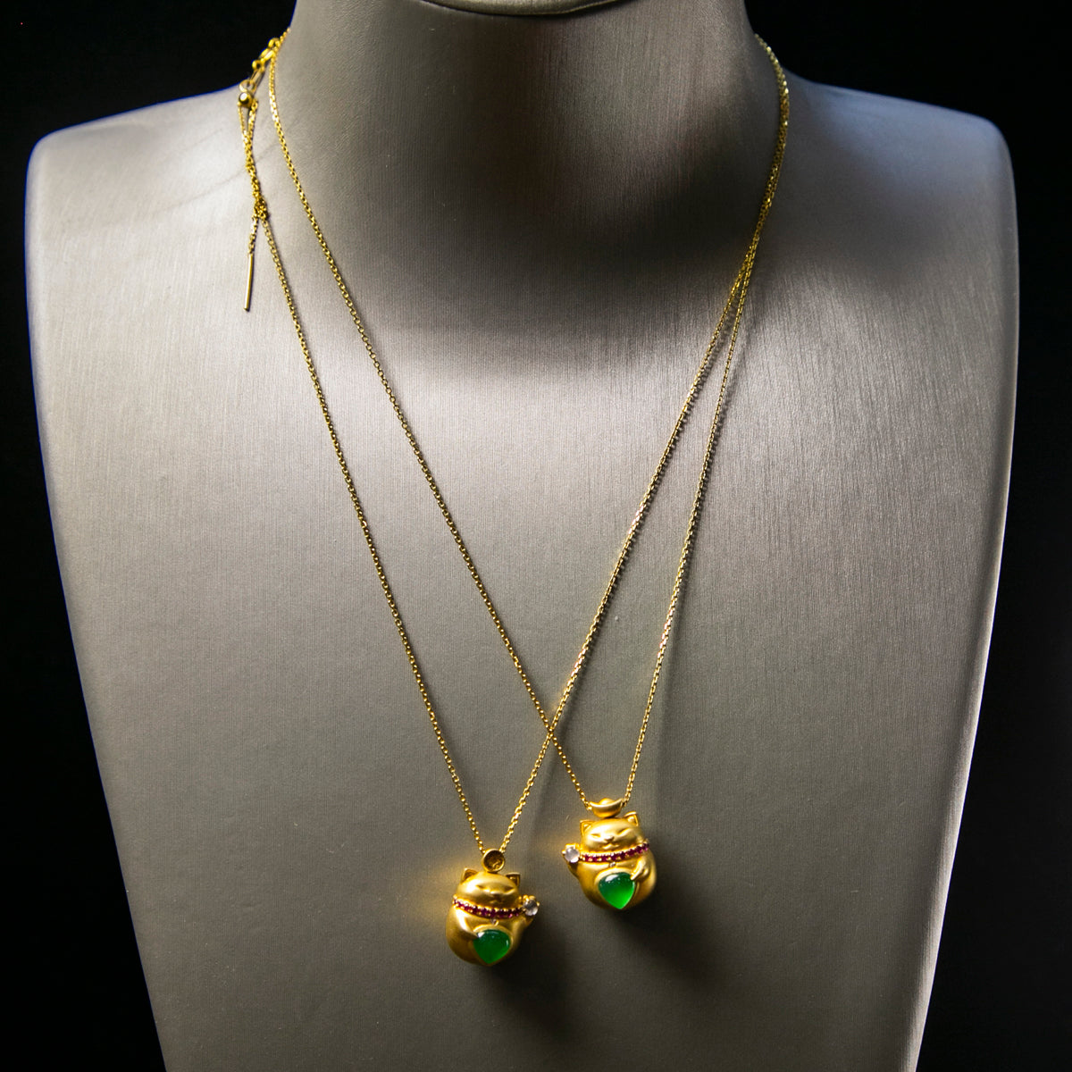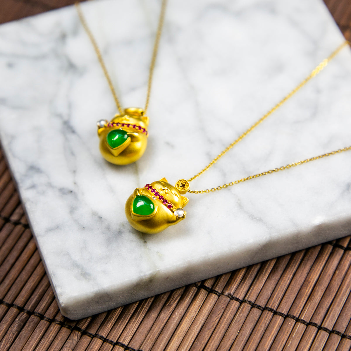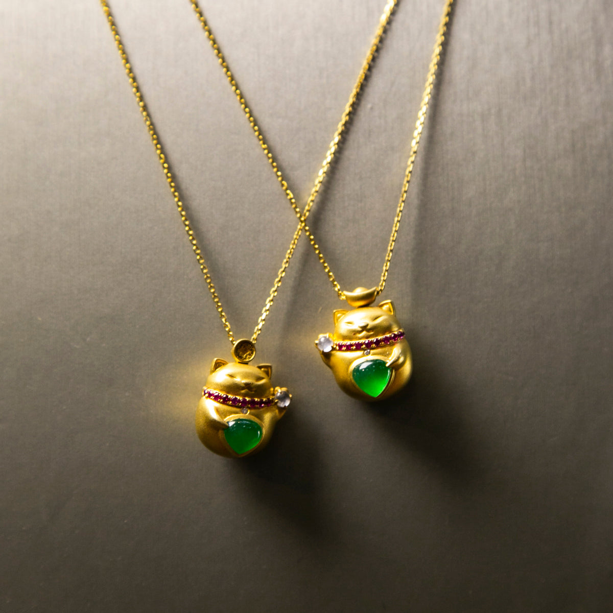 18K金鑲鑽天然緬甸翡翠玻璃帝王綠招財貓頸鏈