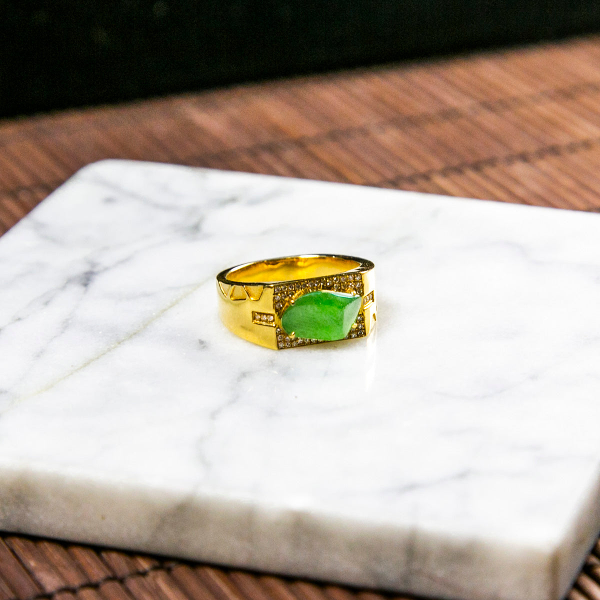18K金鑲鑽天然緬甸翡翠冰陽綠隨形戒指
