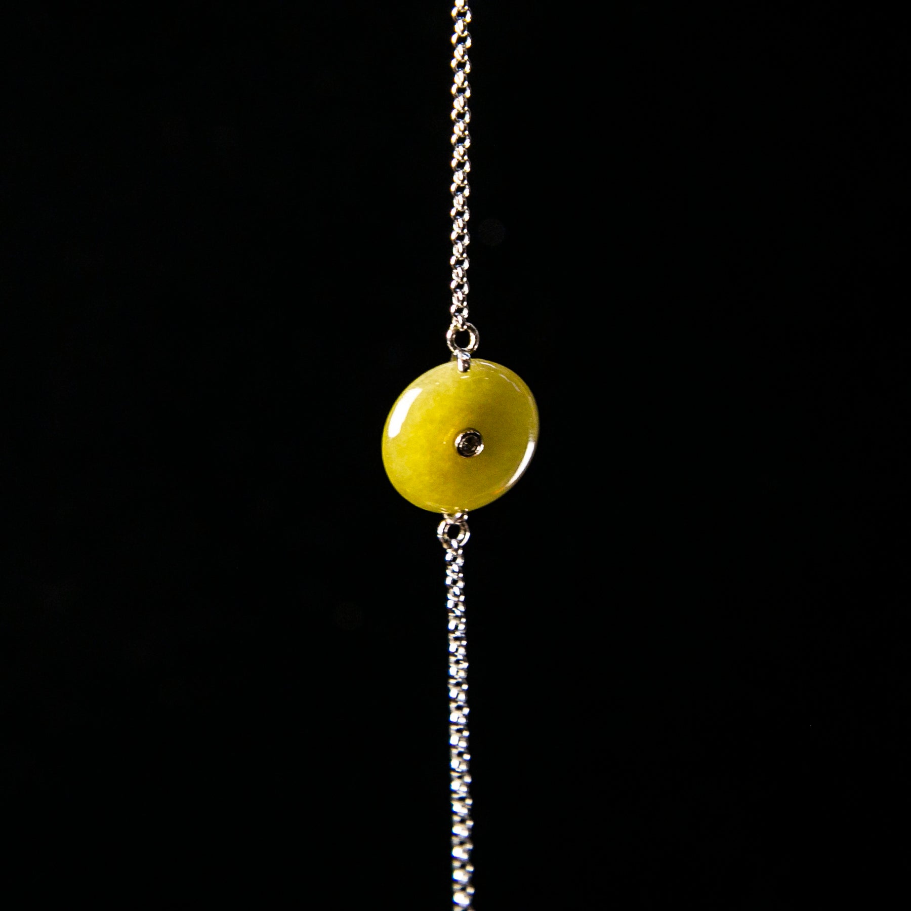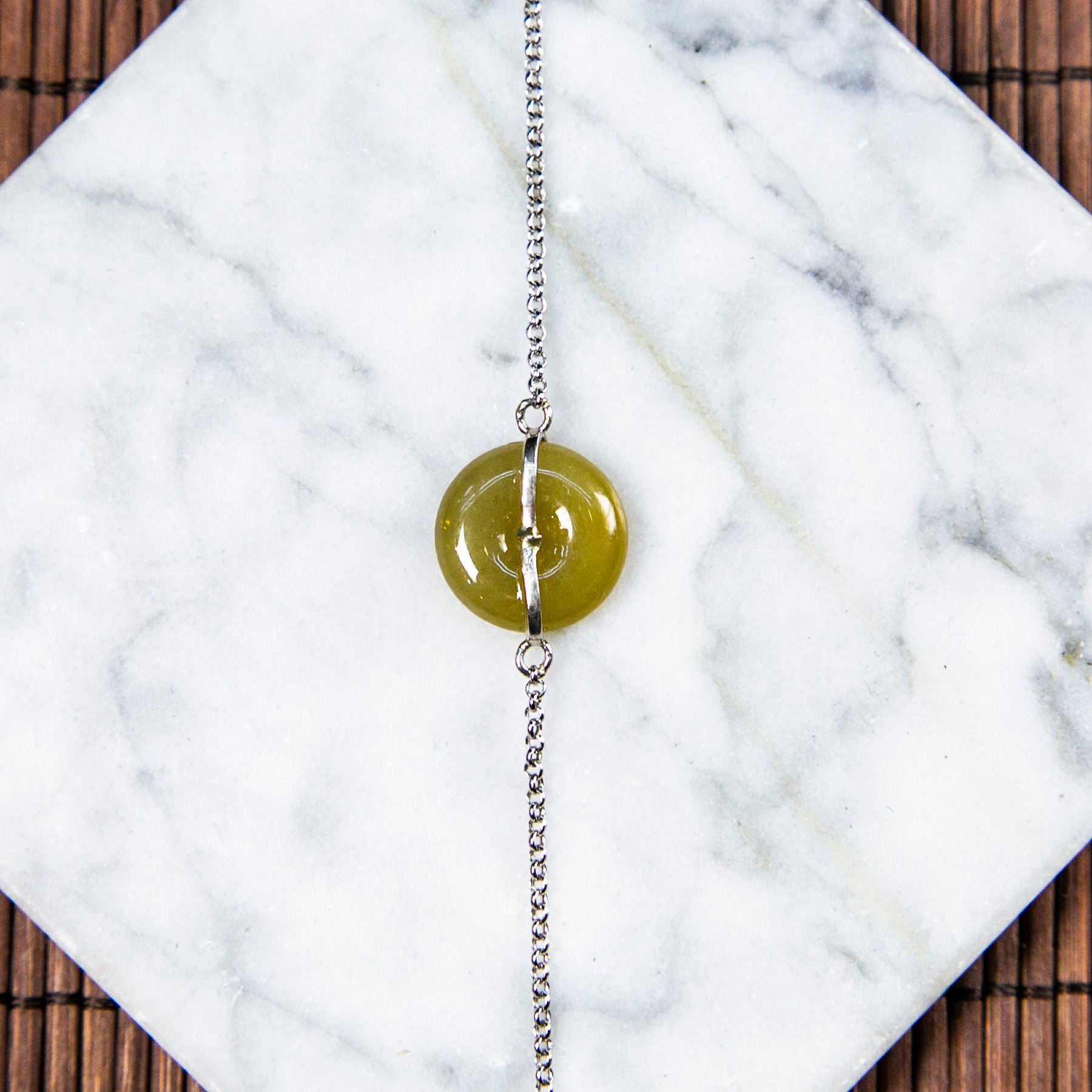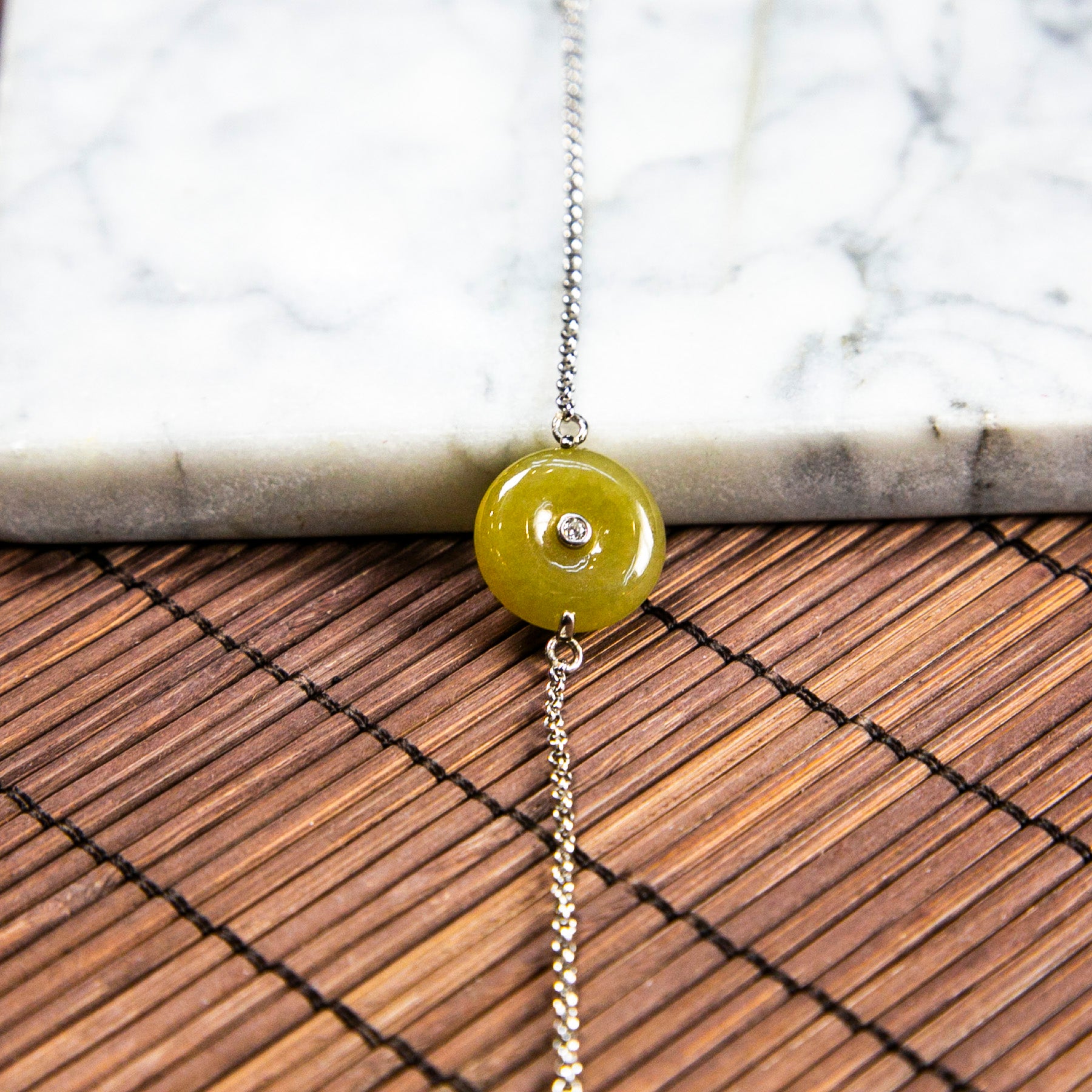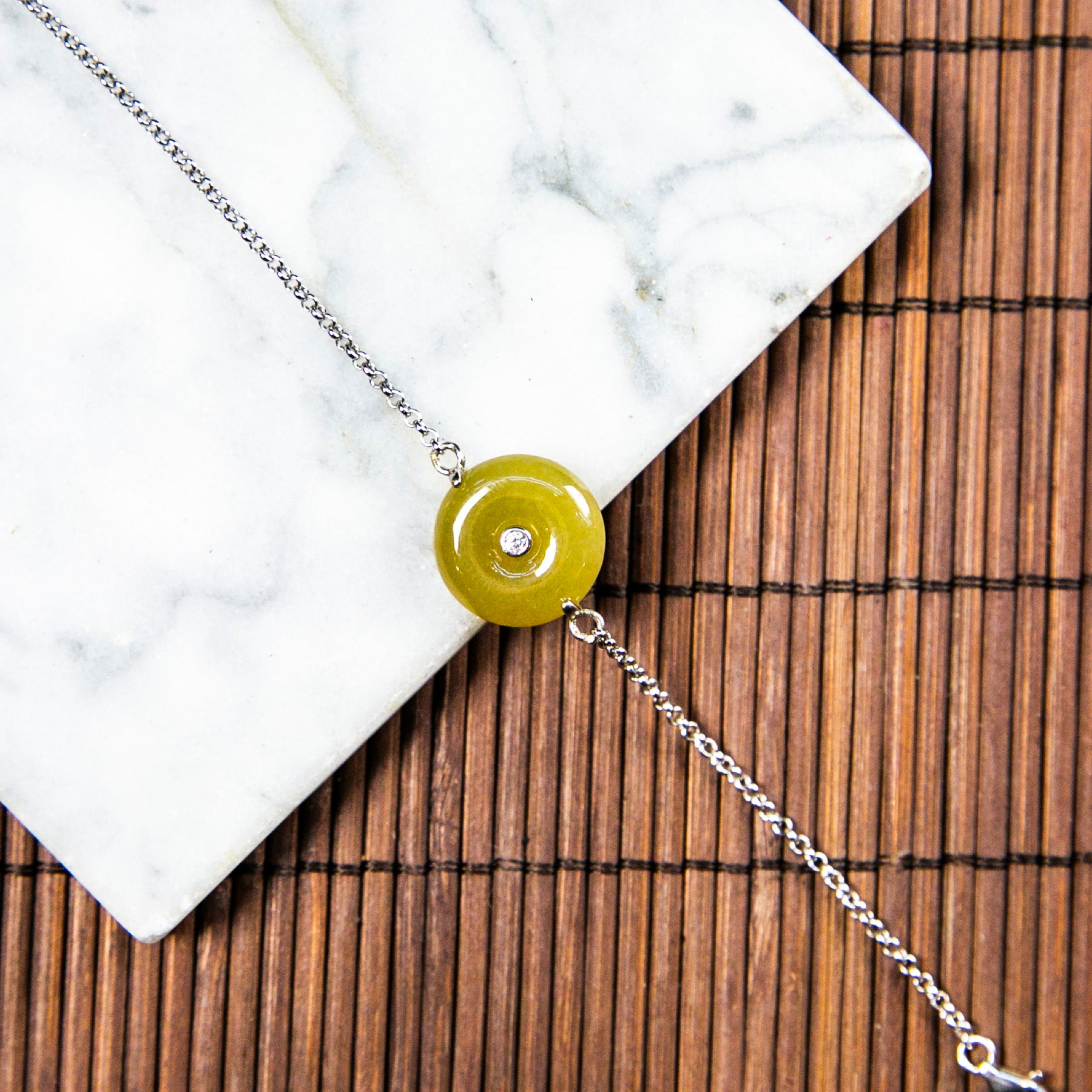 S925鑲鋯石天然緬甸翡翠冰黃翡平安扣手鏈 (適合手圍 16-19cm)