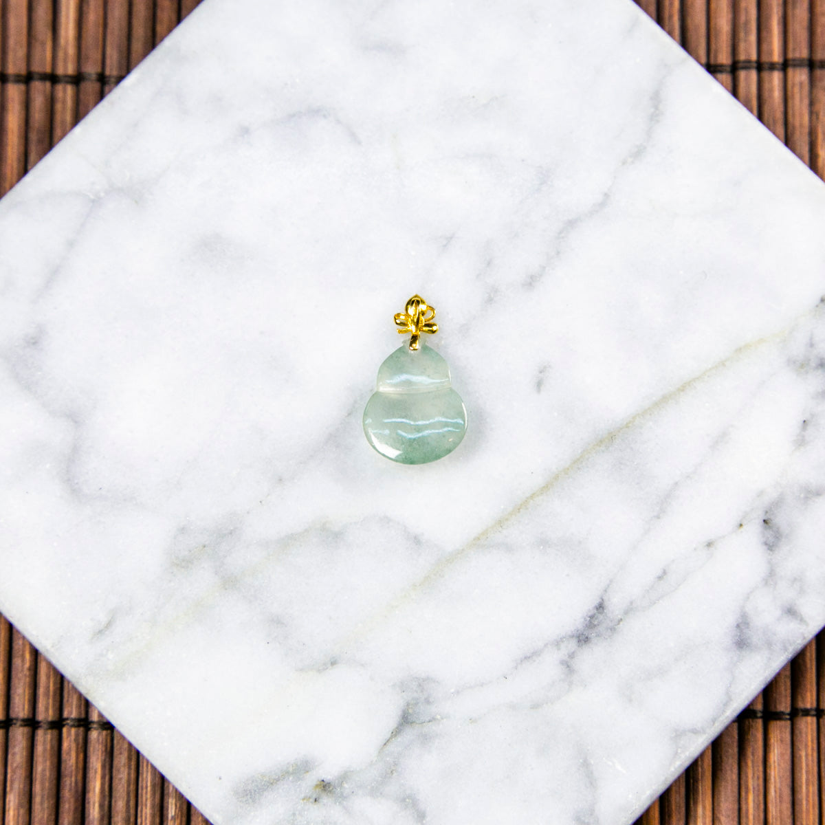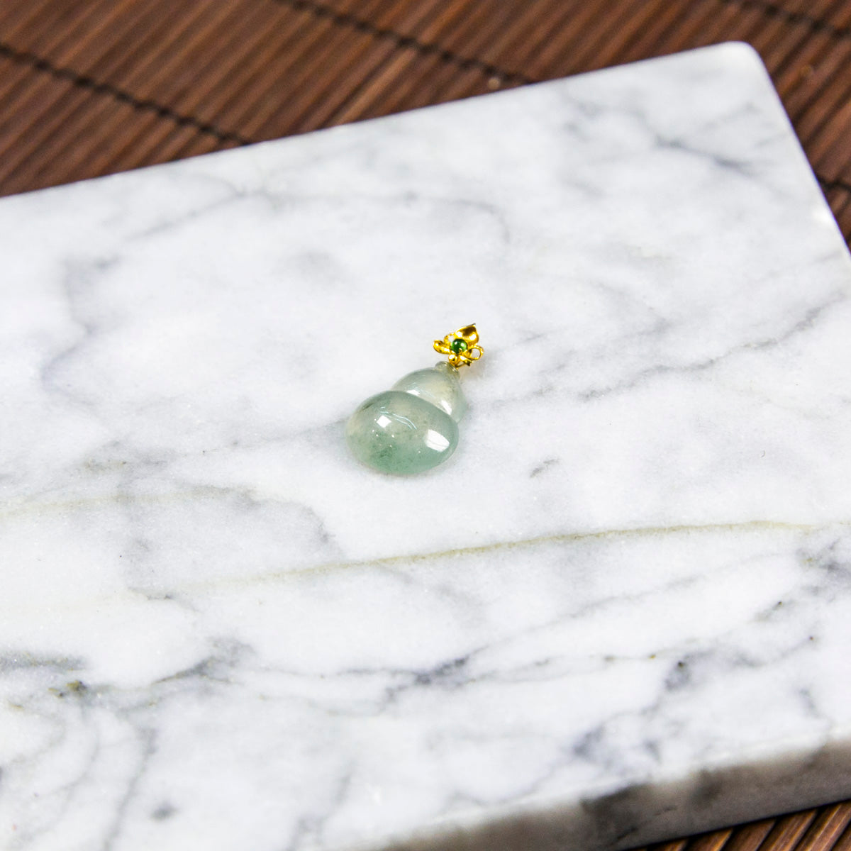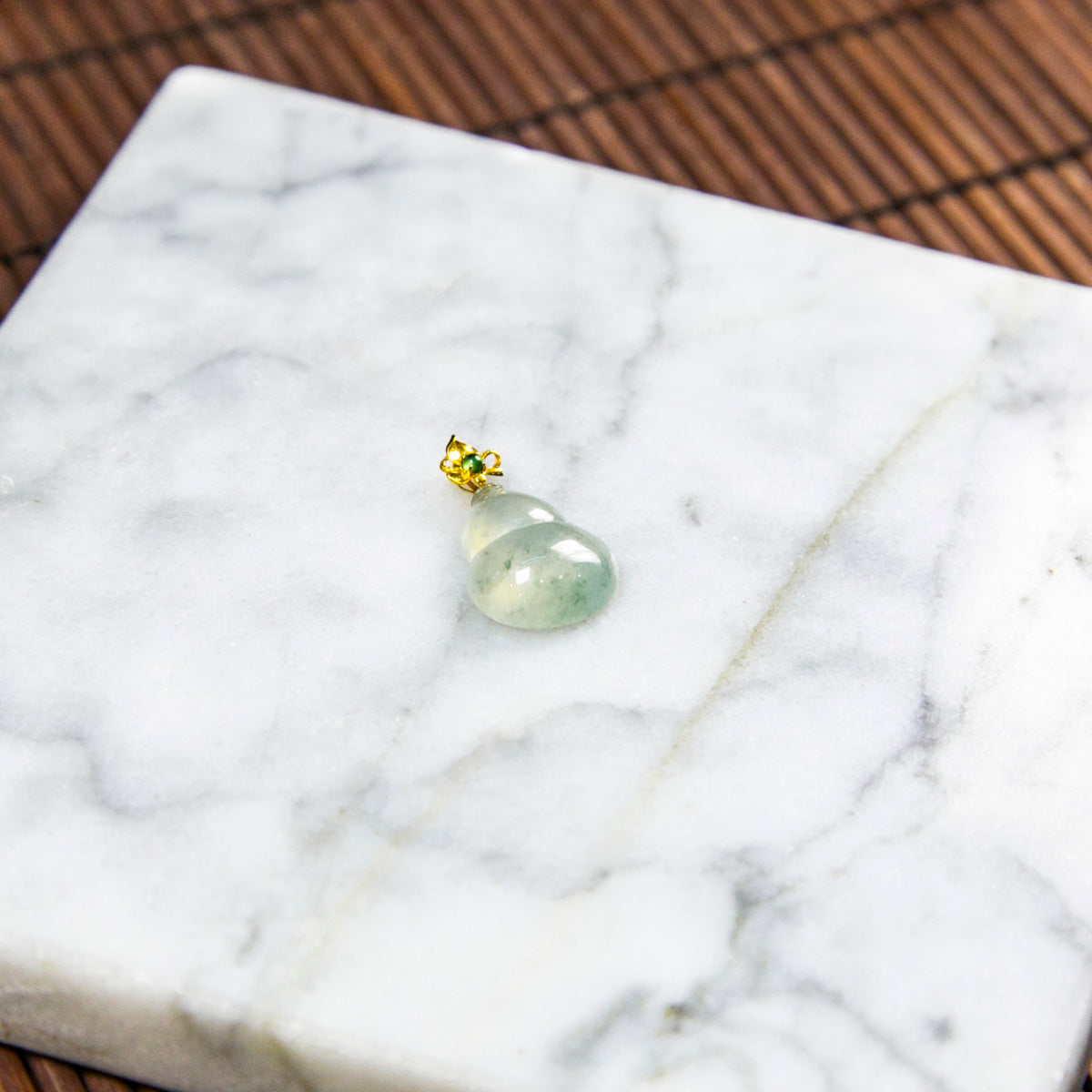 18K金天然緬甸翡翠冰飄花葫蘆吊墜