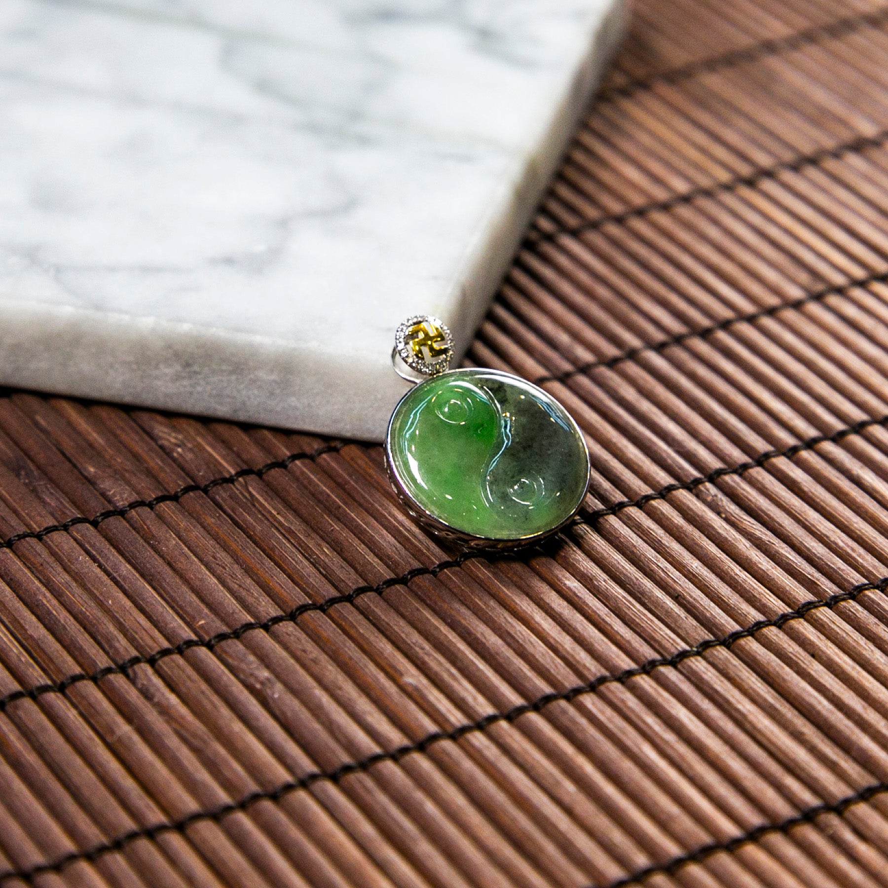 18K白金鑲鑽天然緬甸翡翠淡綠陰陽吊墜