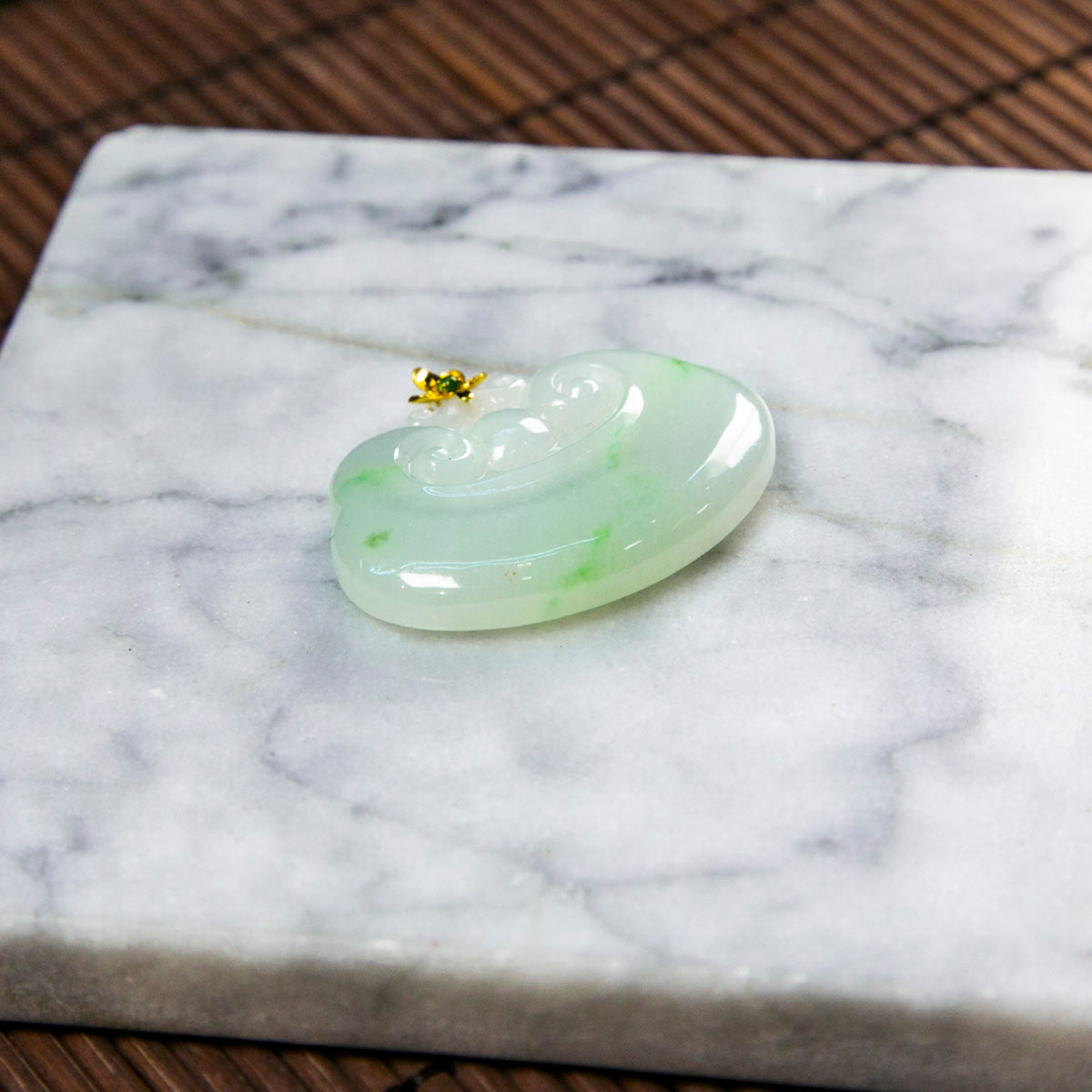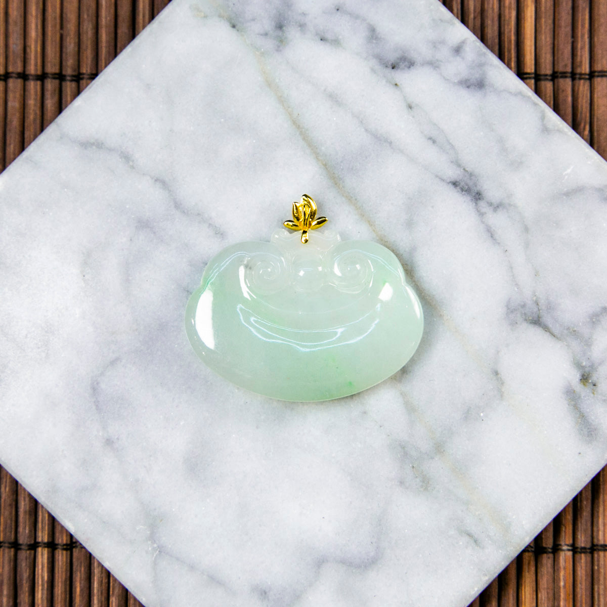 18K金天然緬甸翡翠白底青如意吊墜
