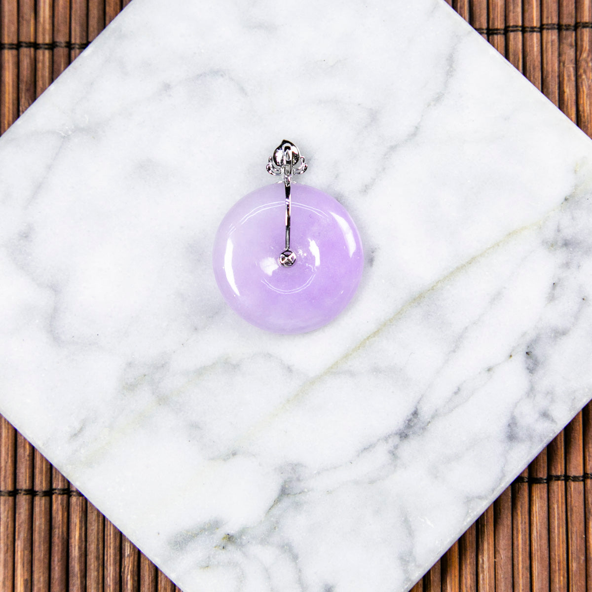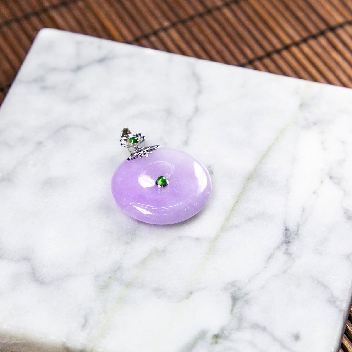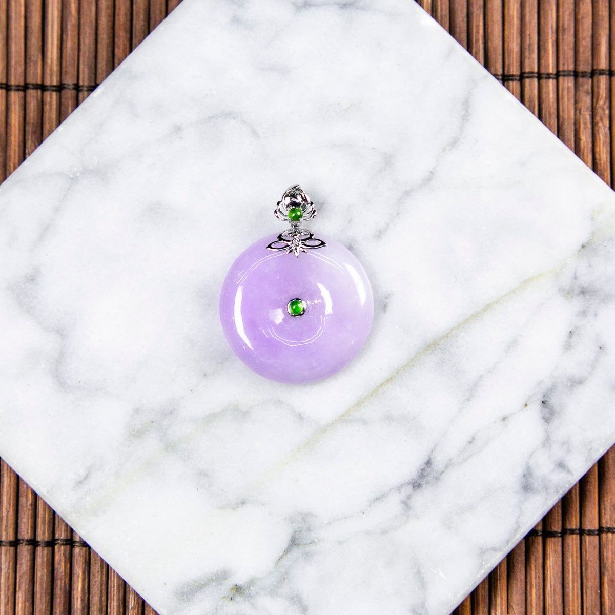 18K白金鑲鑽天然緬甸翡翠紫羅蘭平安扣吊墜
