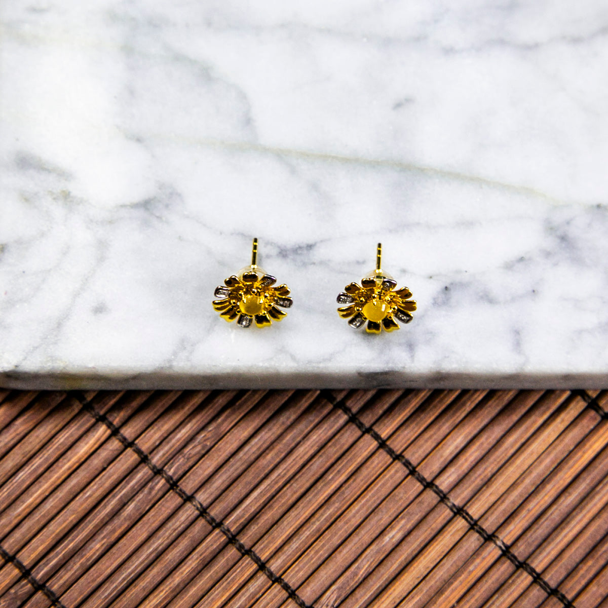 18K金鑲鑽天然緬甸翡翠冰黃翡太陽花款式耳針