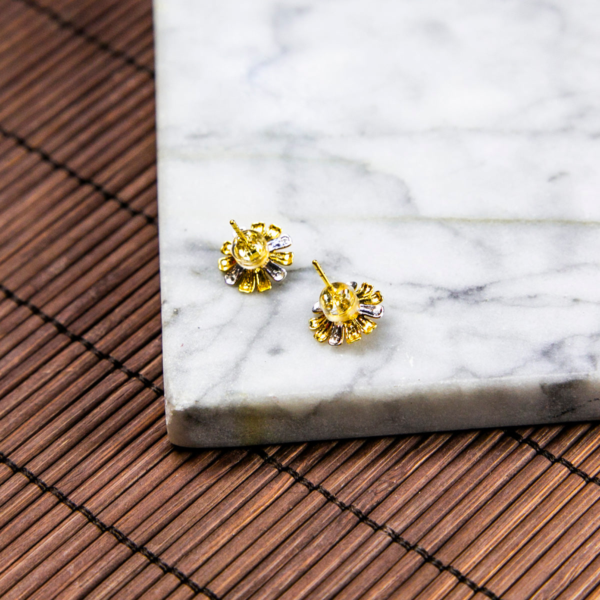 Hypoallergenic 18K gold ear studs, plastic backings included