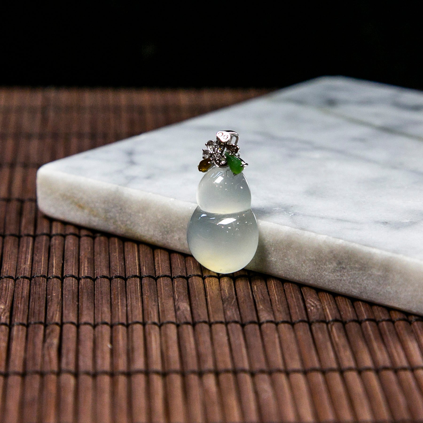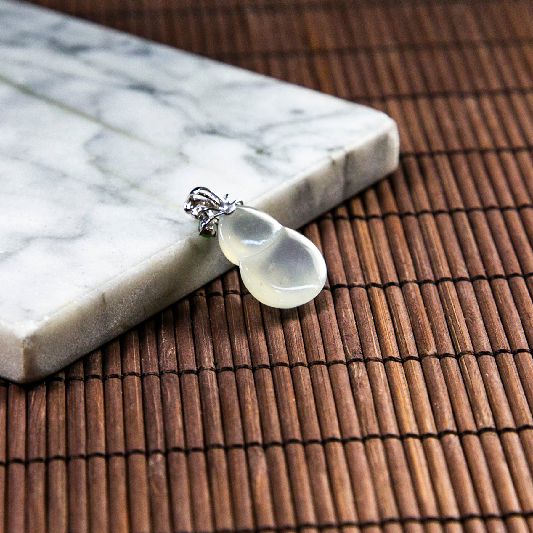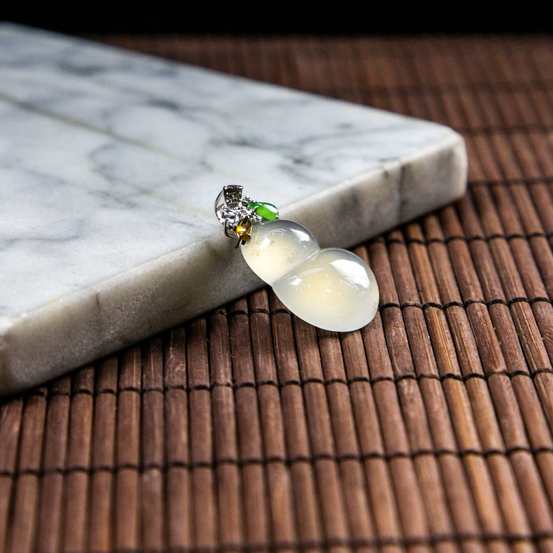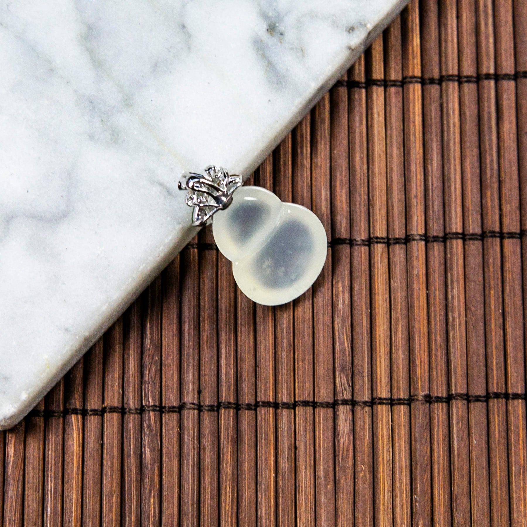 18K白金鑲鑽天然緬甸翡翠冰白葫蘆吊墜