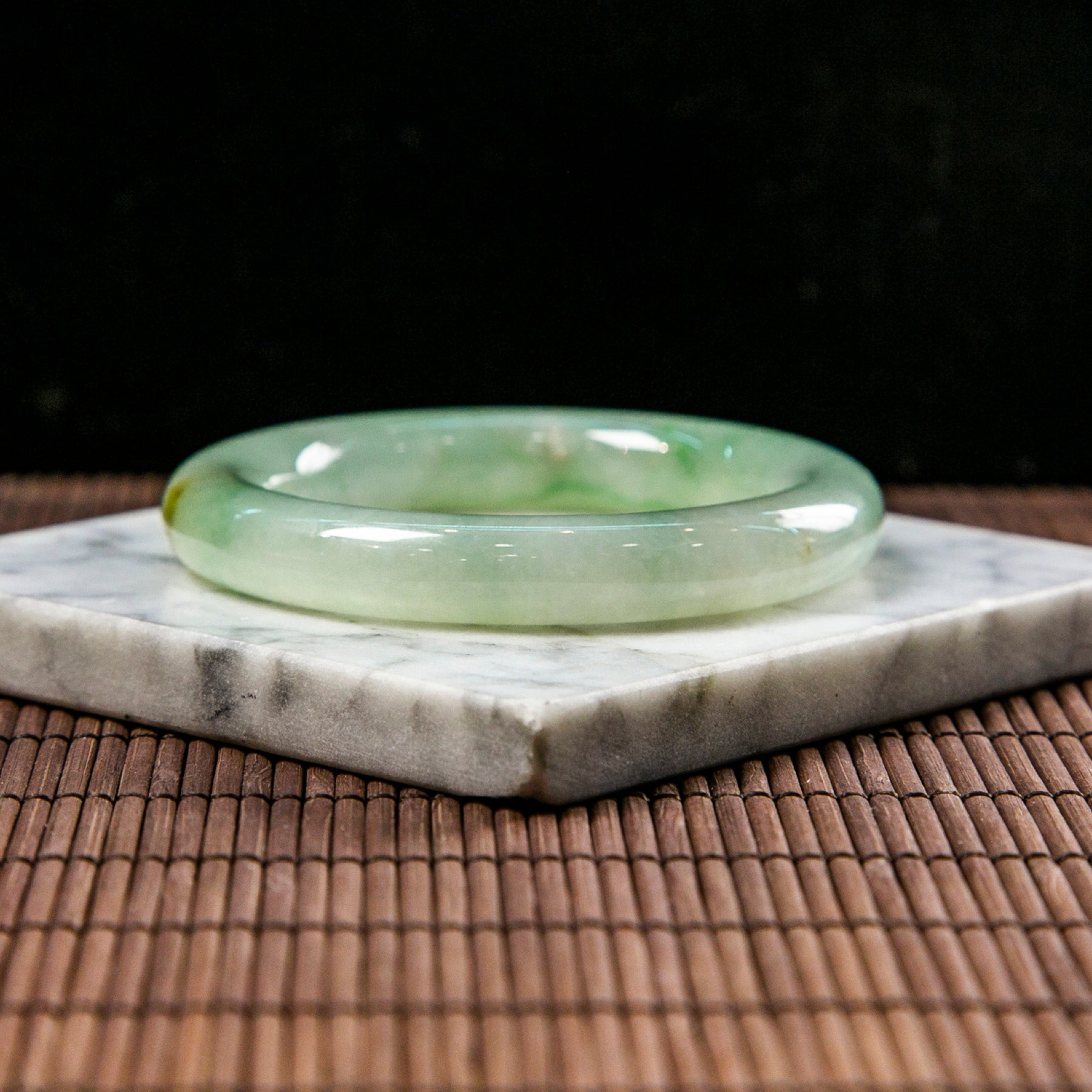天然緬甸翡翠冰飄綠灑金圓條手鐲 (適合手圍 53-55mm)