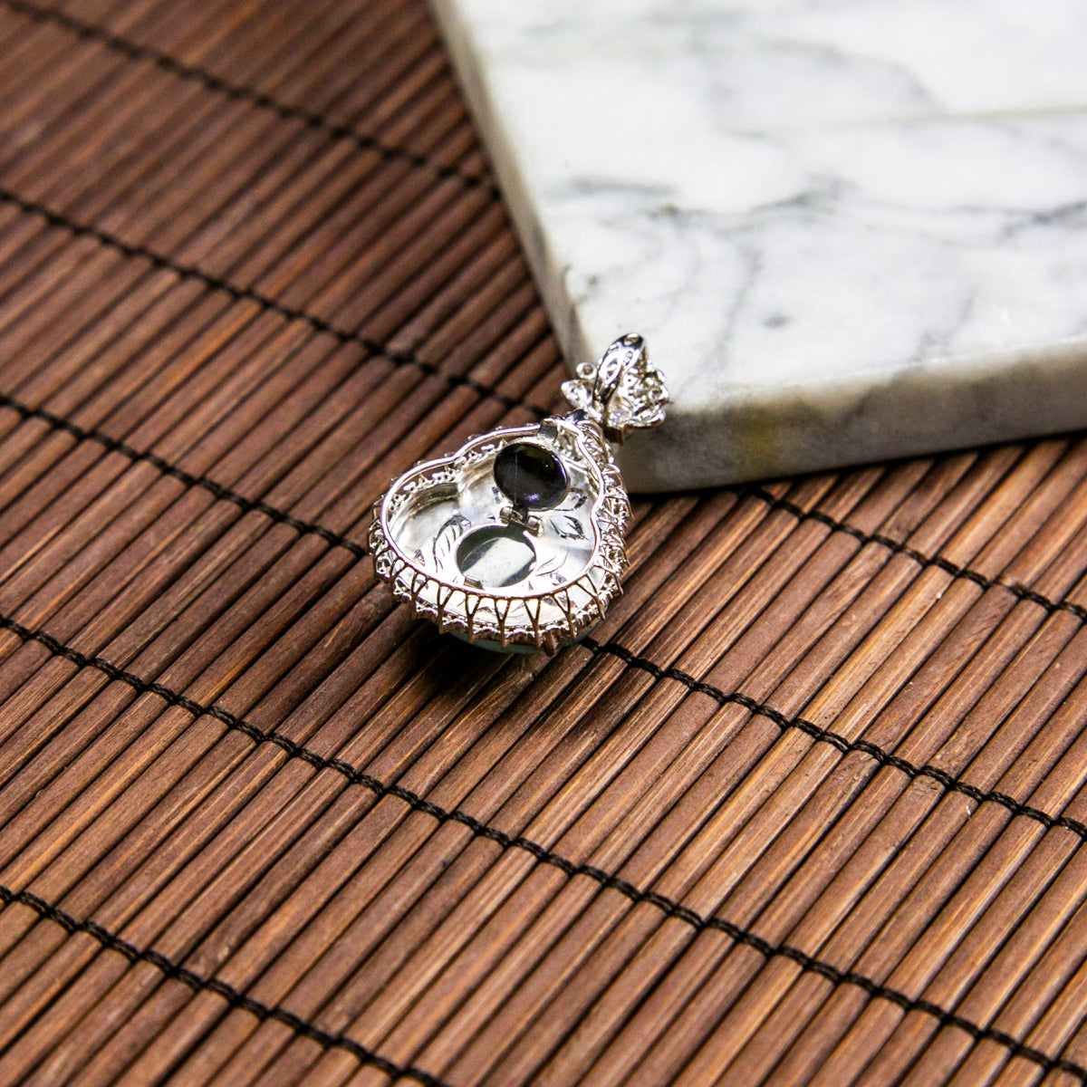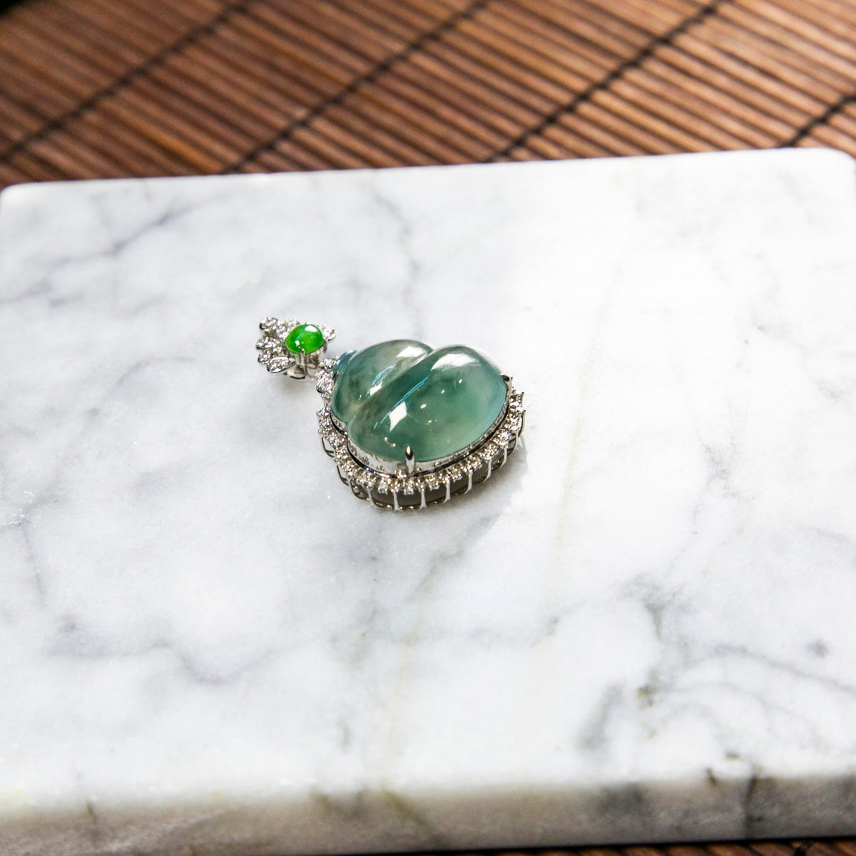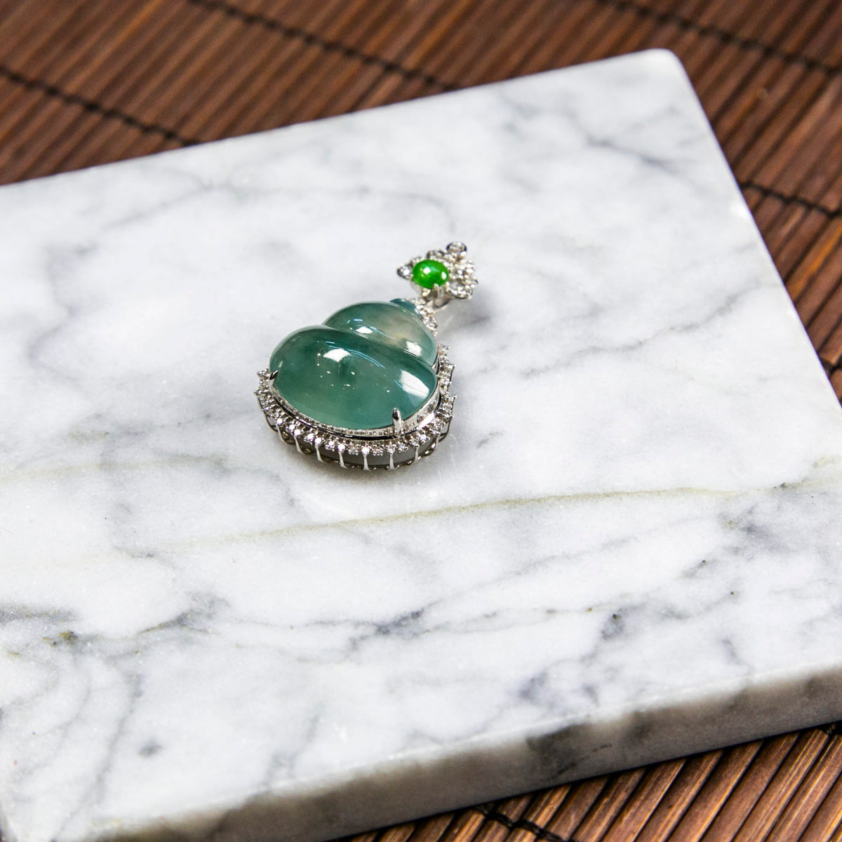 18K白金鑲鑽天然緬甸翡翠冰晴底飄花葫蘆吊墜