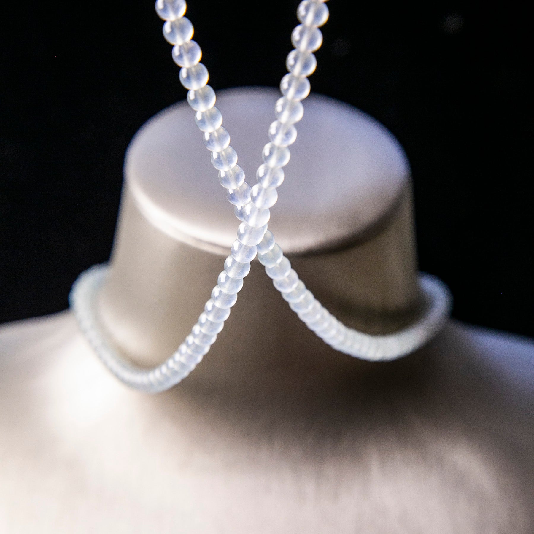 天然緬甸翡翠高冰種淡綠珠串