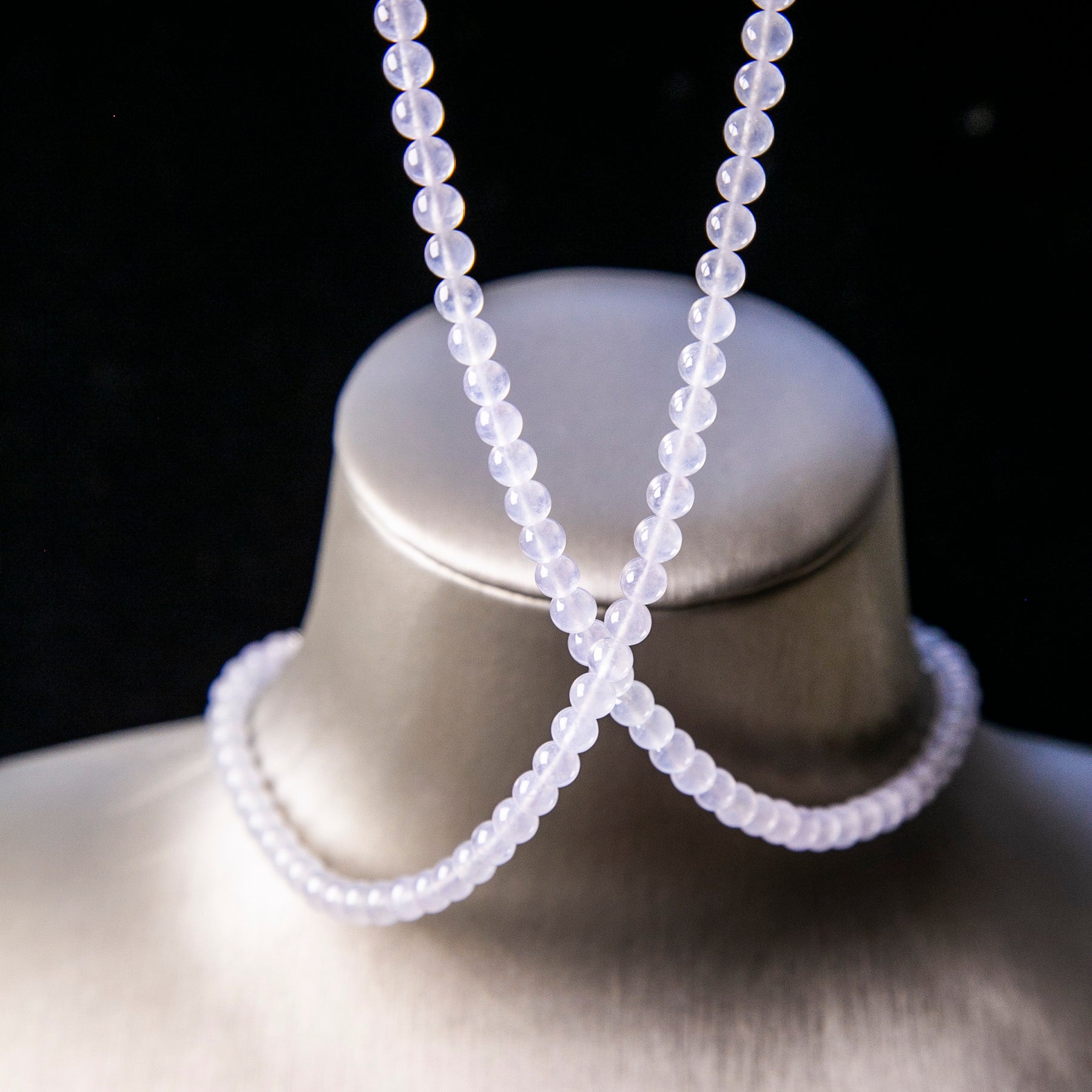 天然緬甸翡翠高冰種冰白珠串