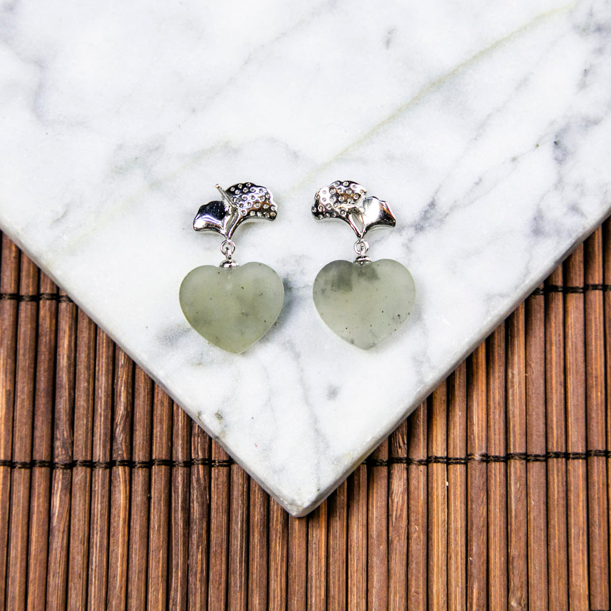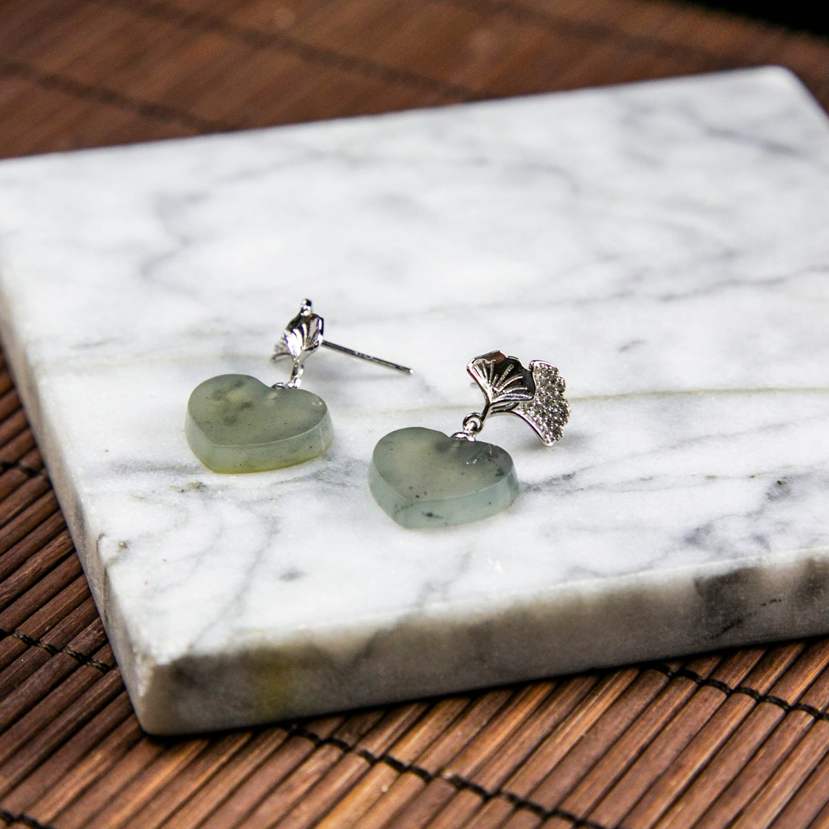 S925鑲鋯石天然緬甸翡翠冰烏雞心形耳針