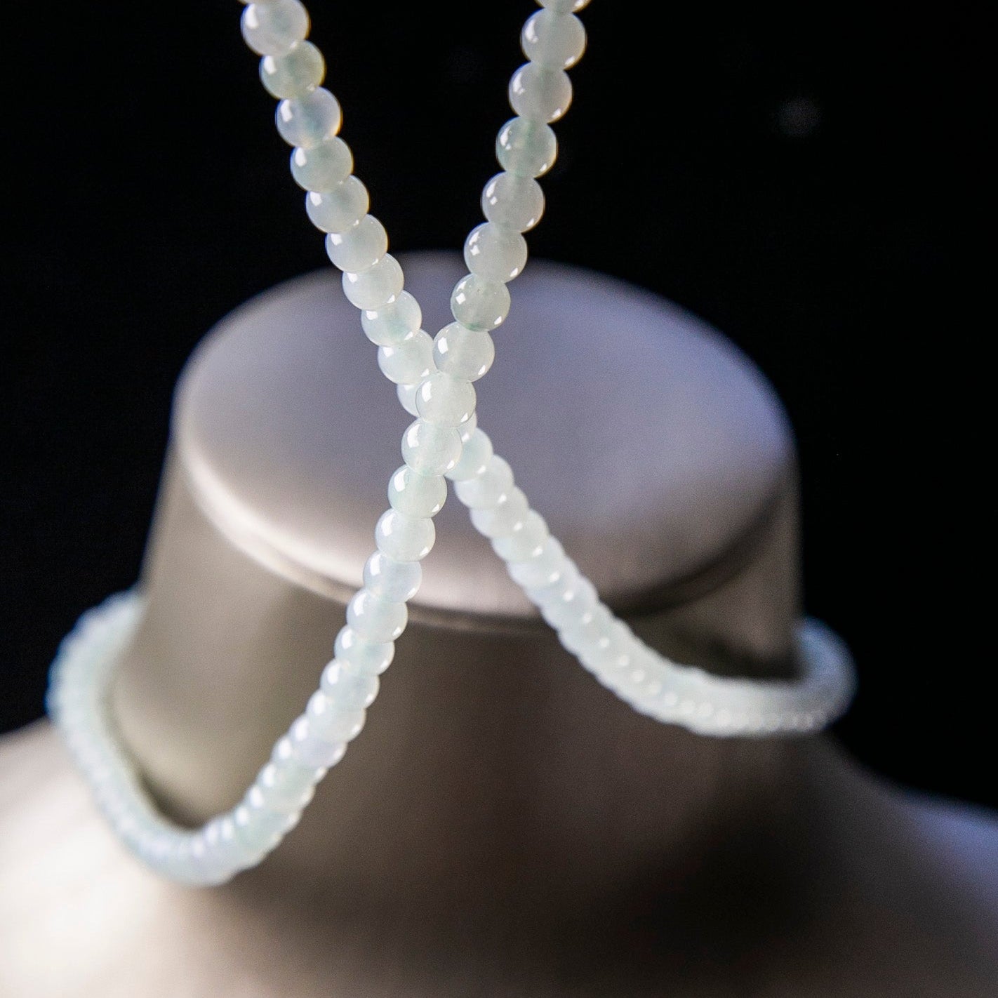 天然緬甸翡翠淡綠珠串