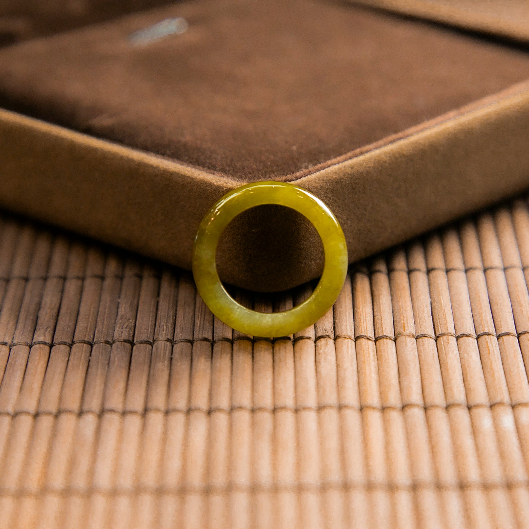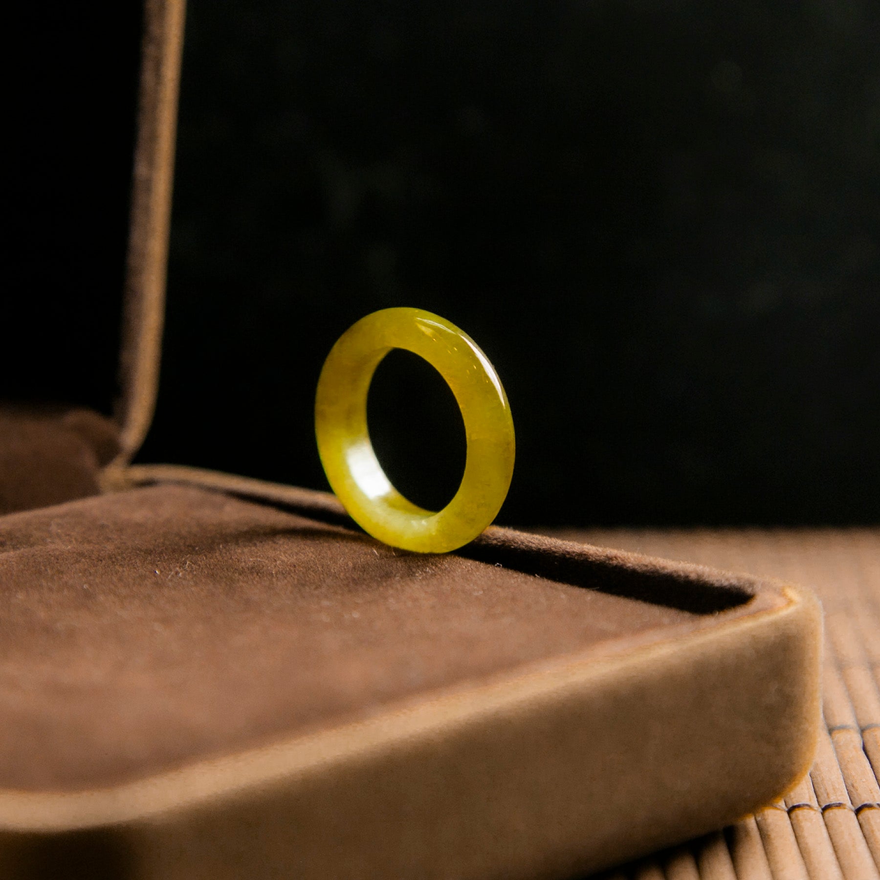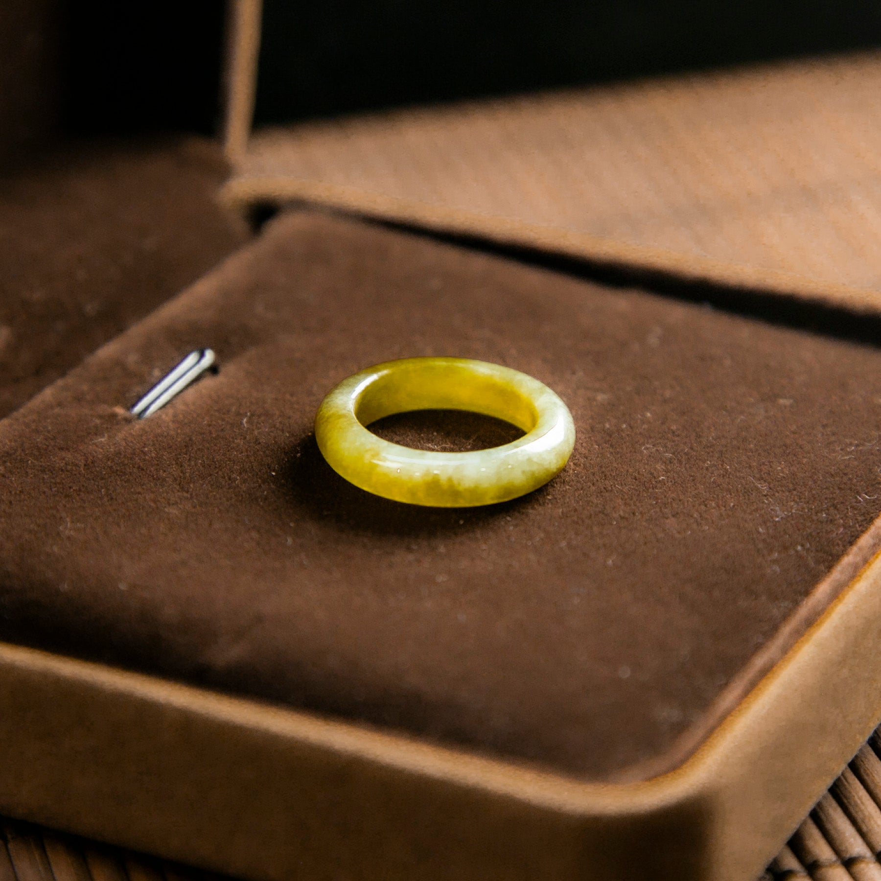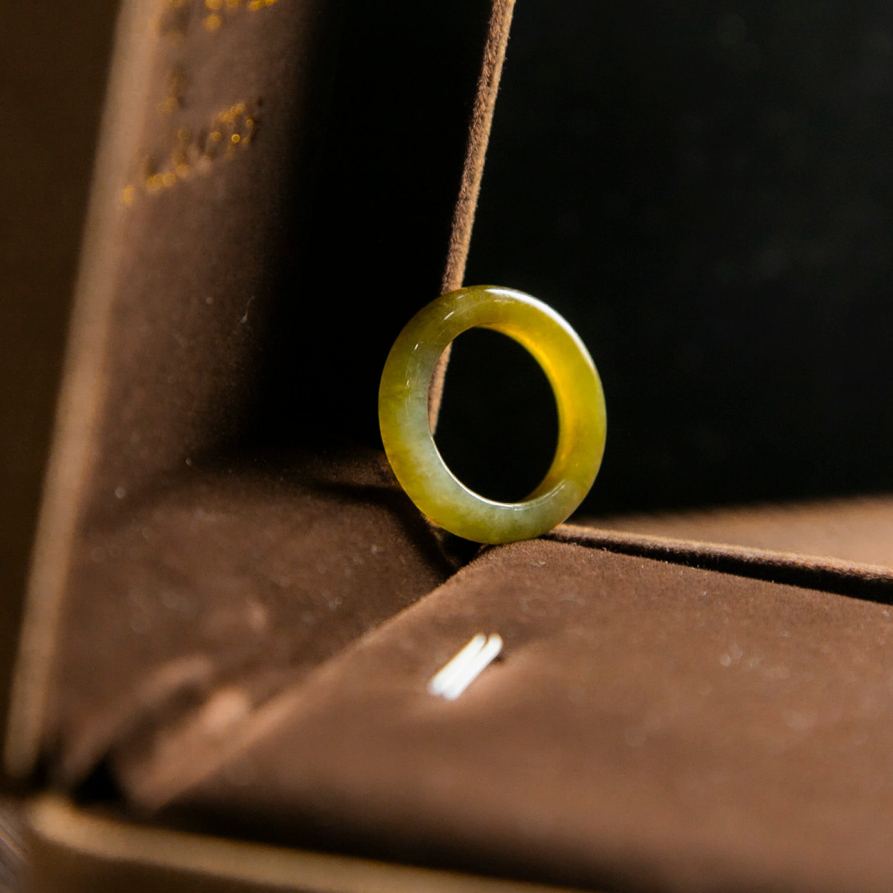 天然緬甸翡翠冰種橄欖黃玉戒