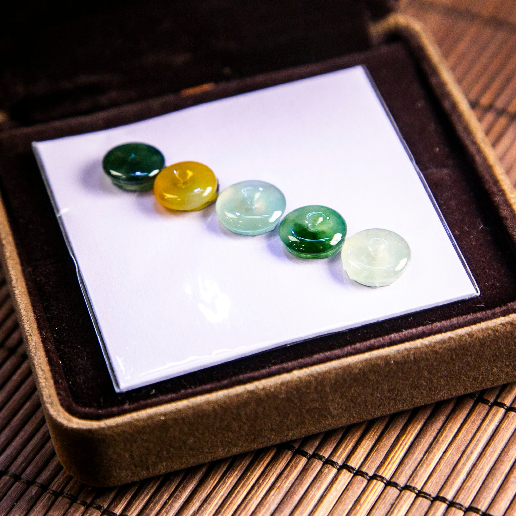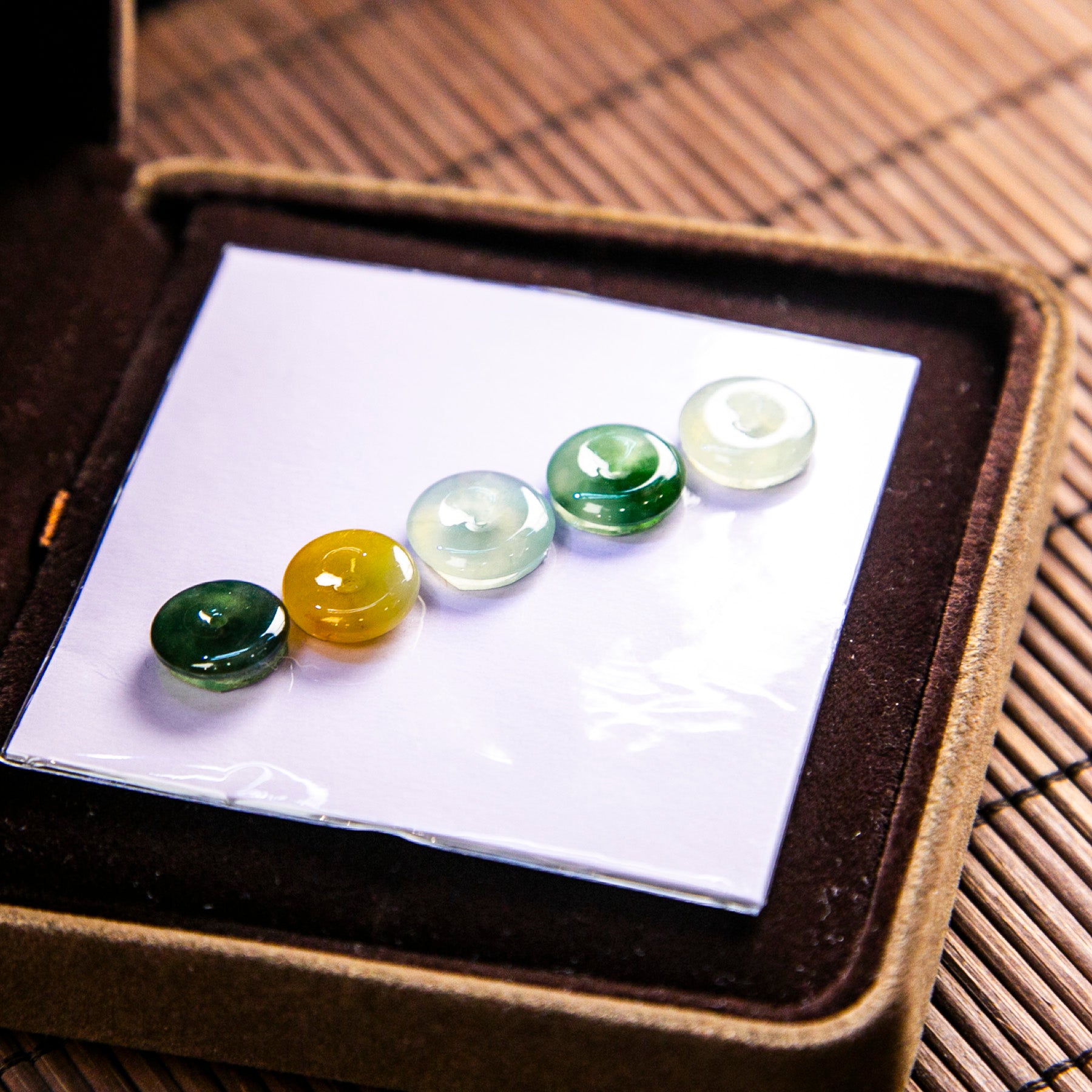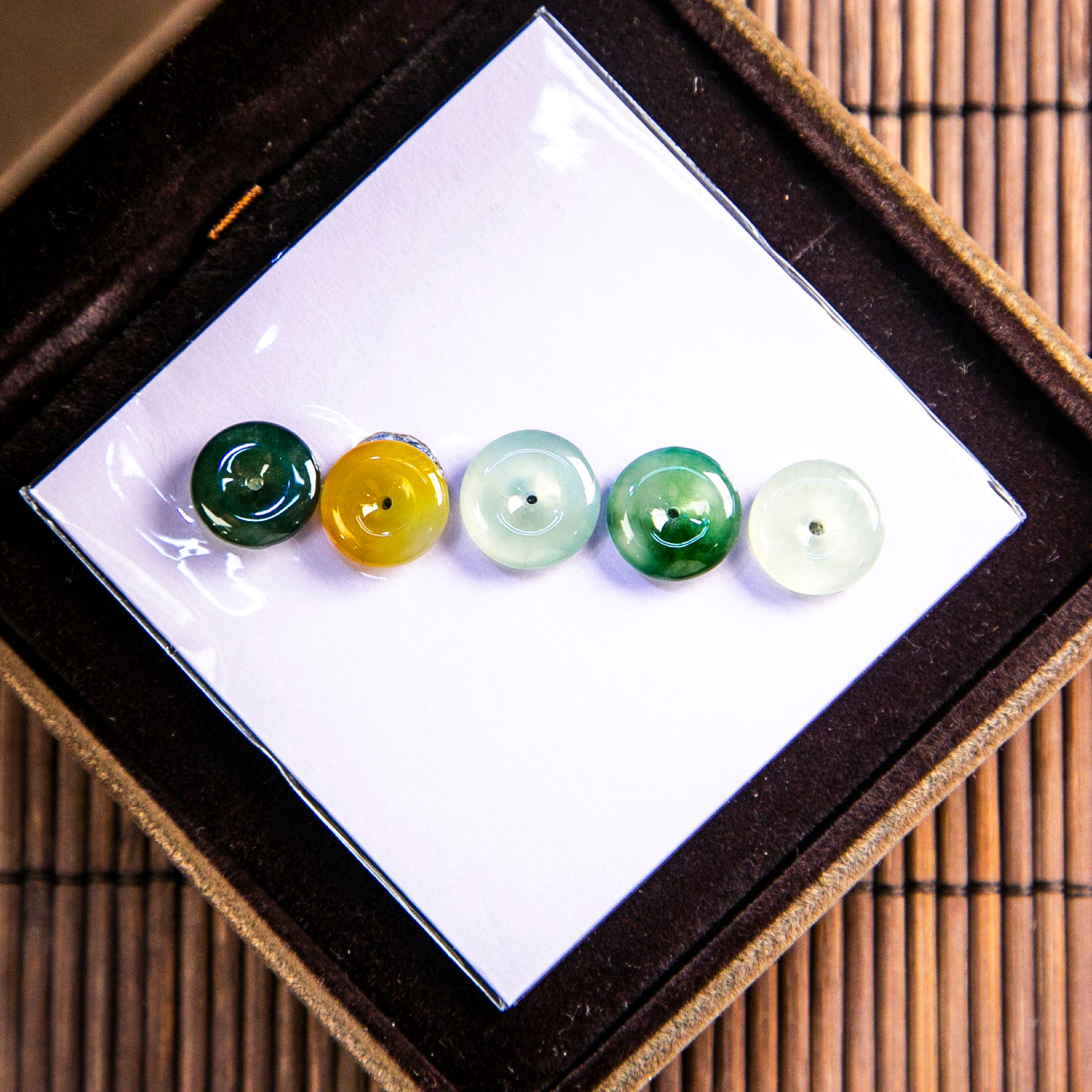 天然緬甸翡翠冰種五色平安扣 一套五個