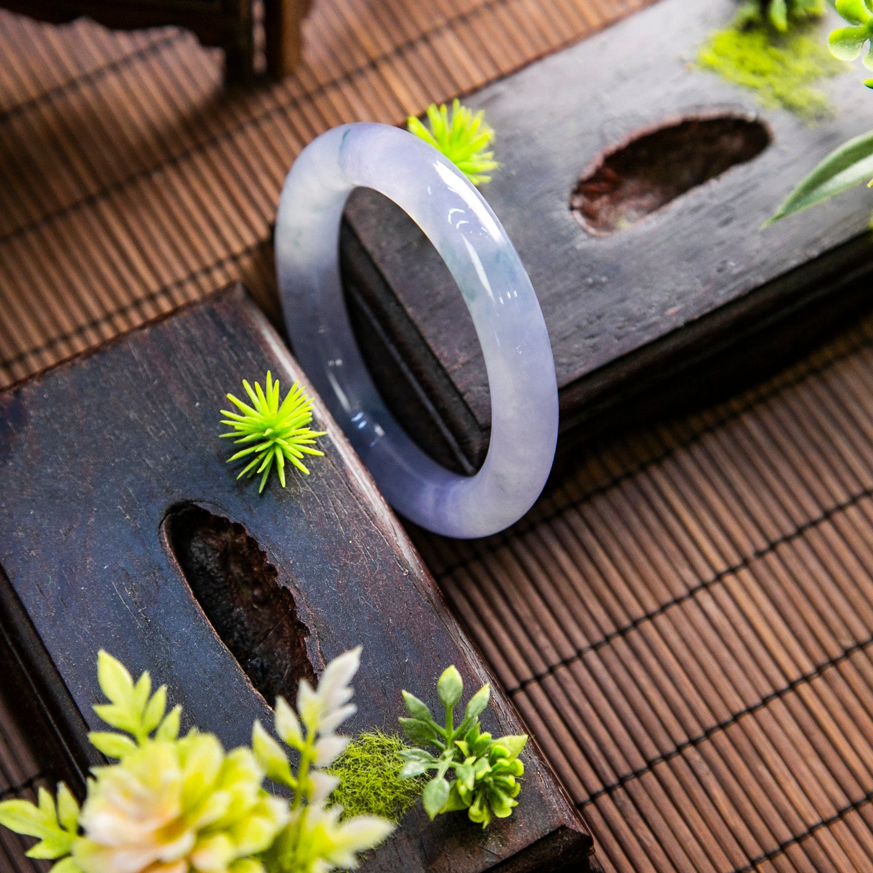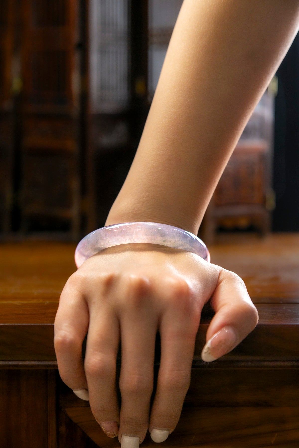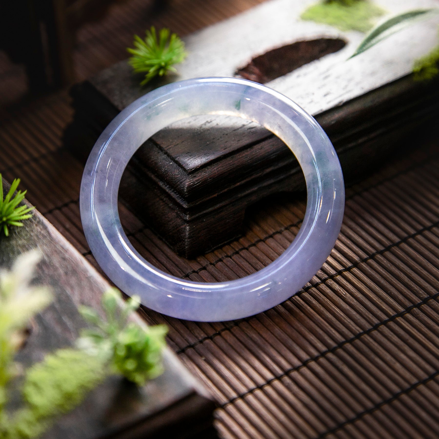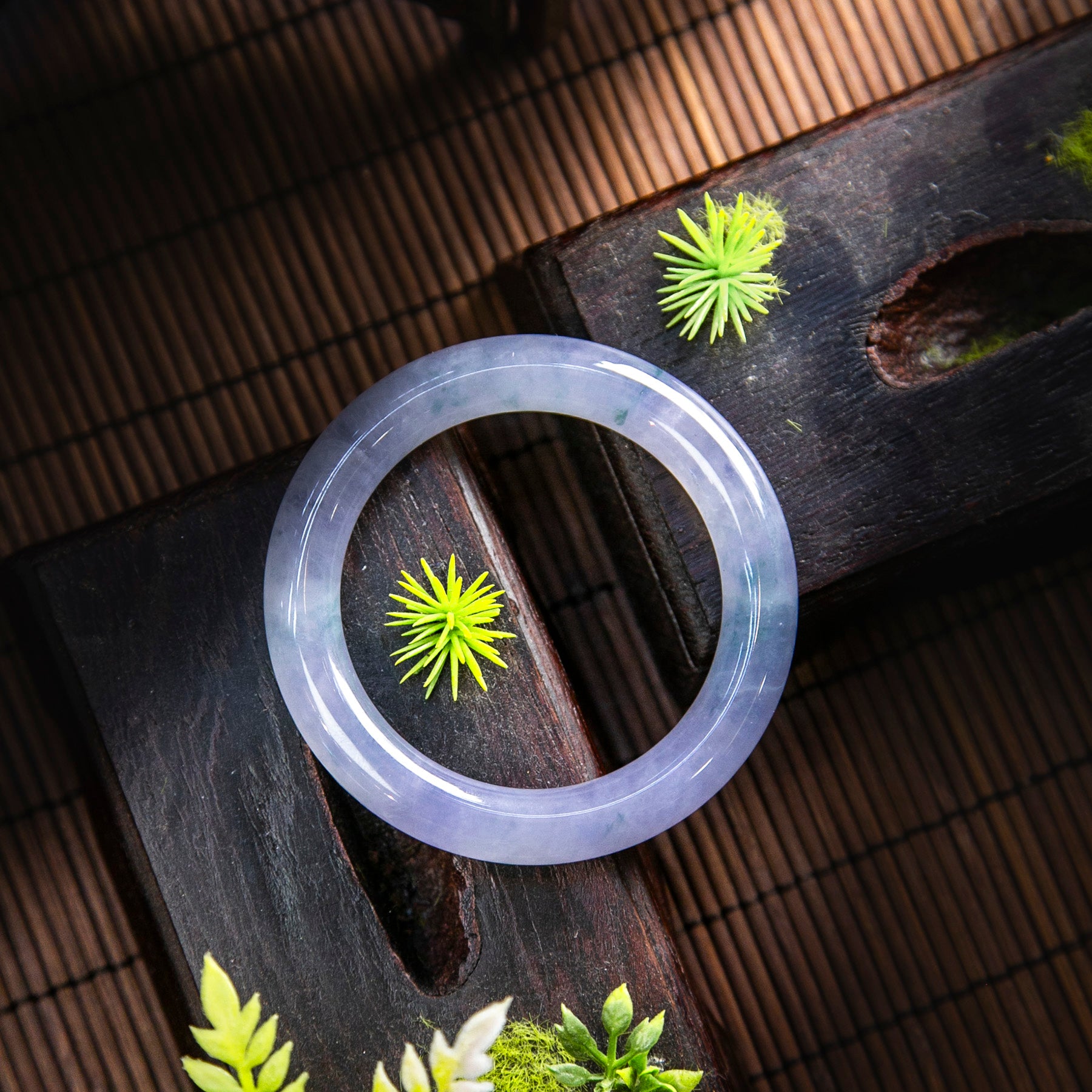 天然緬甸翡翠光感高冰種滿紫飄花圓條手鐲 (適合手圍 53-55 mm)