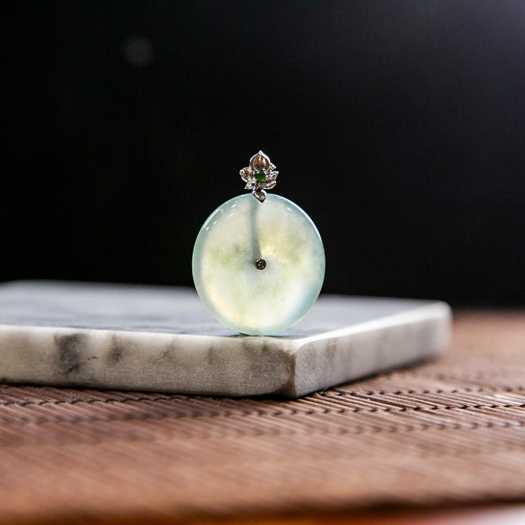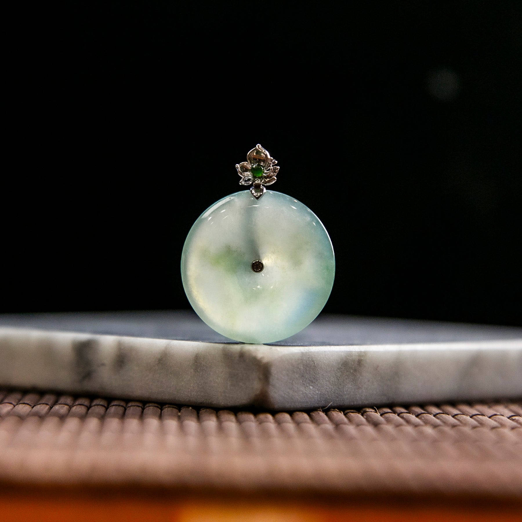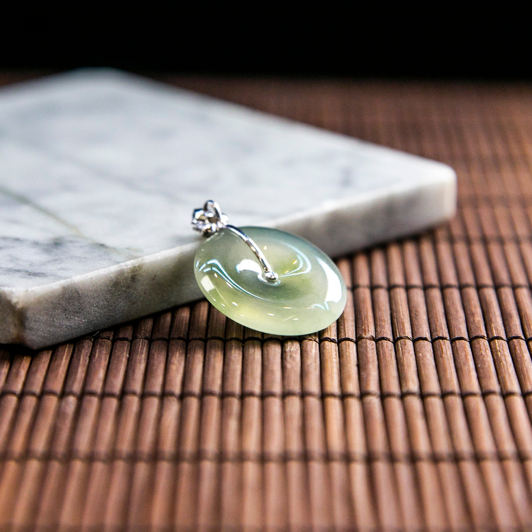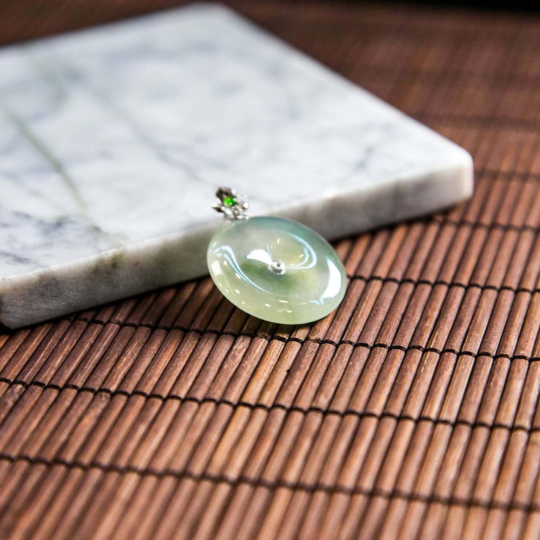 18K白金天然緬甸翡翠冰淡綠平安扣吊墜