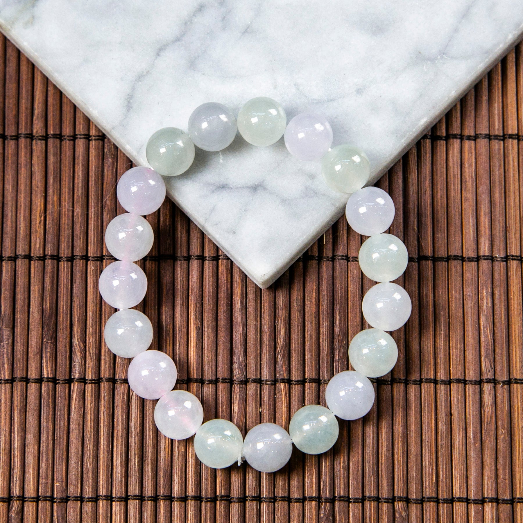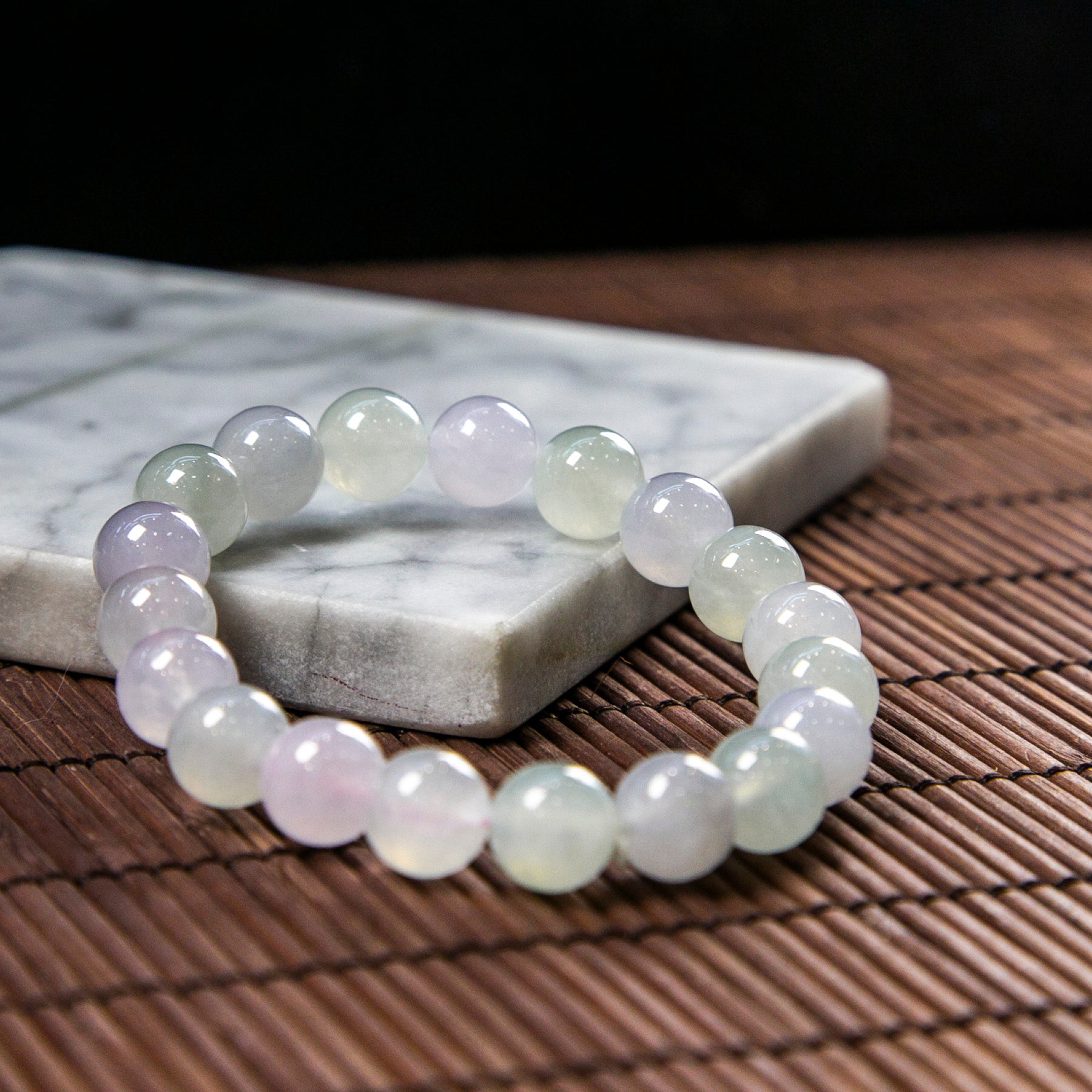 天然緬甸翡翠冰種淡春彩手珠串