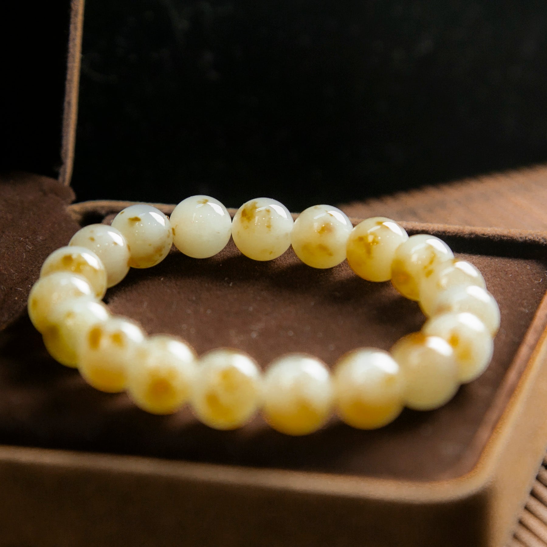 天然緬甸翡翠白底灑金手珠串