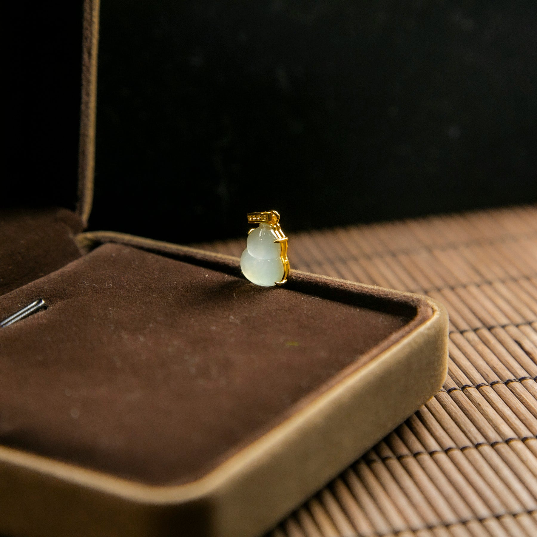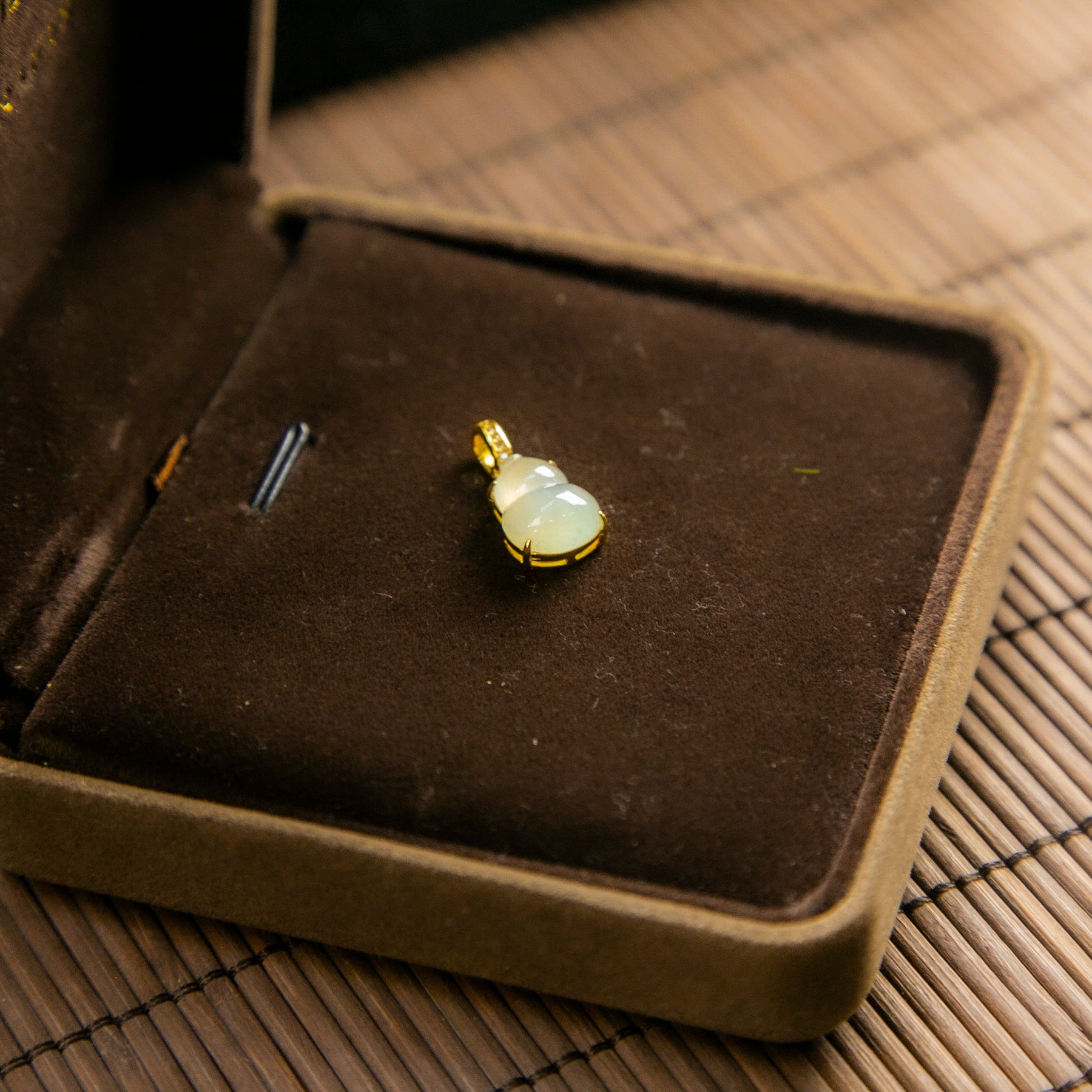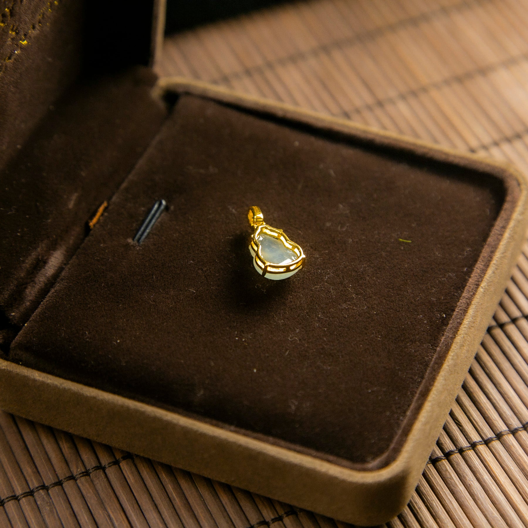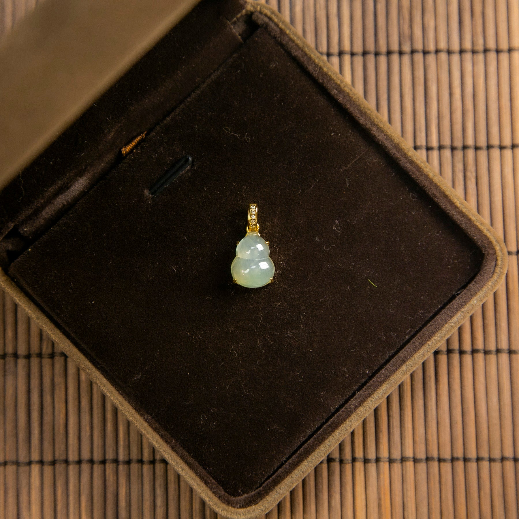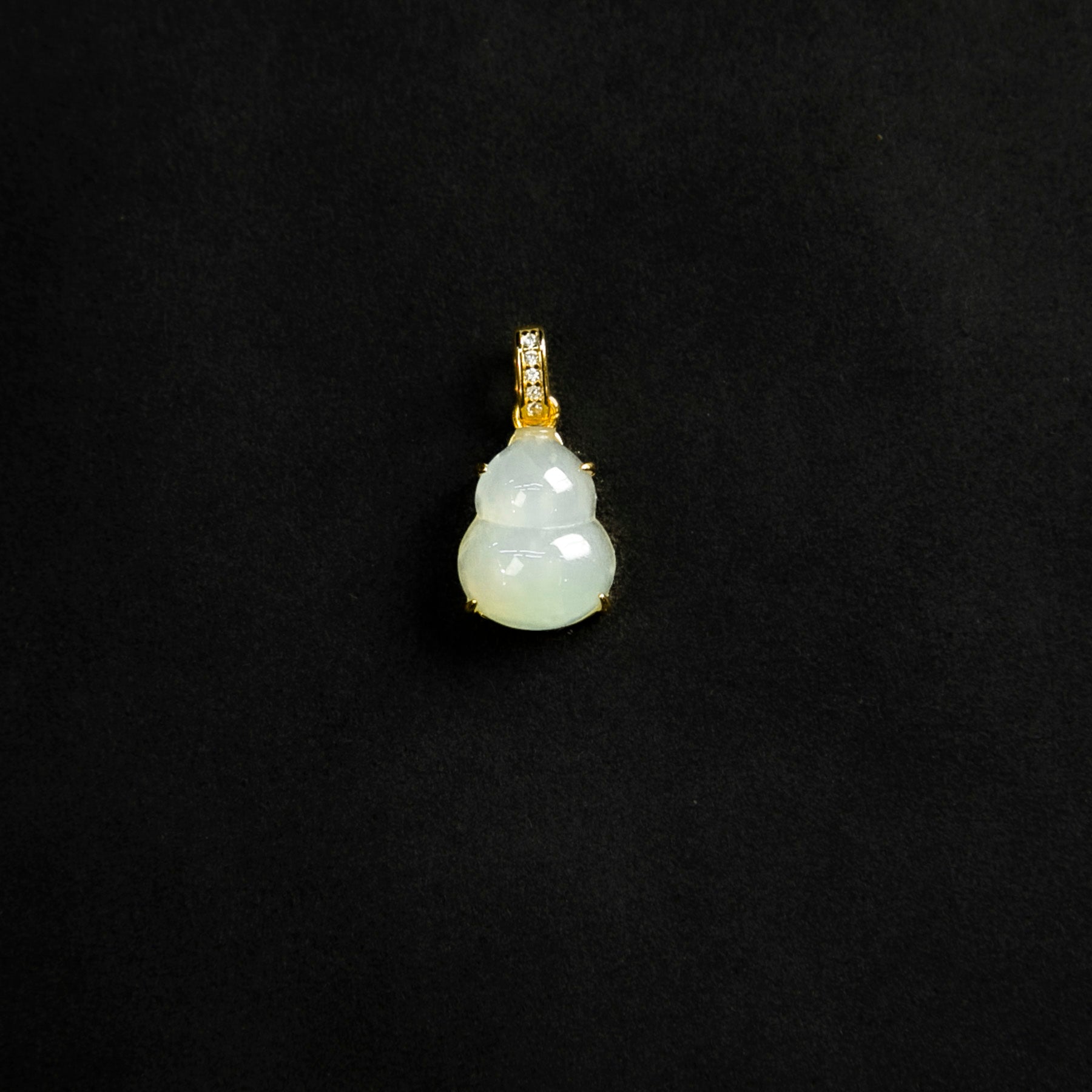 S925鑲鋯石天然緬甸翡翠冰白飄綠葫蘆吊墜