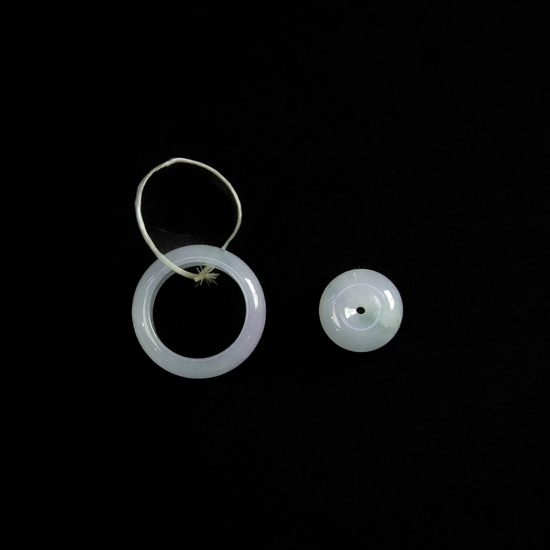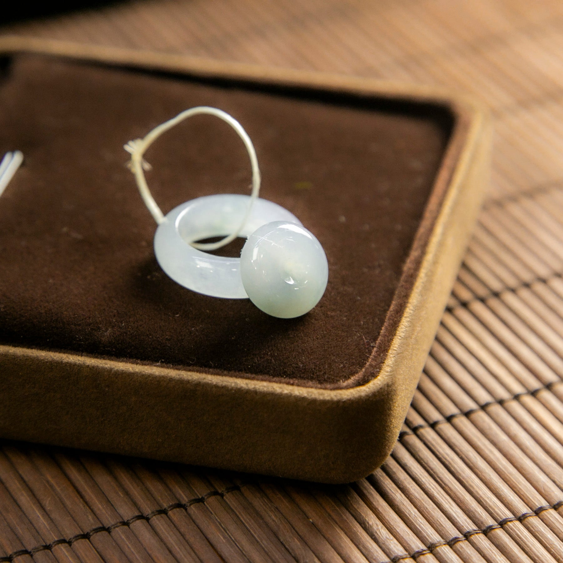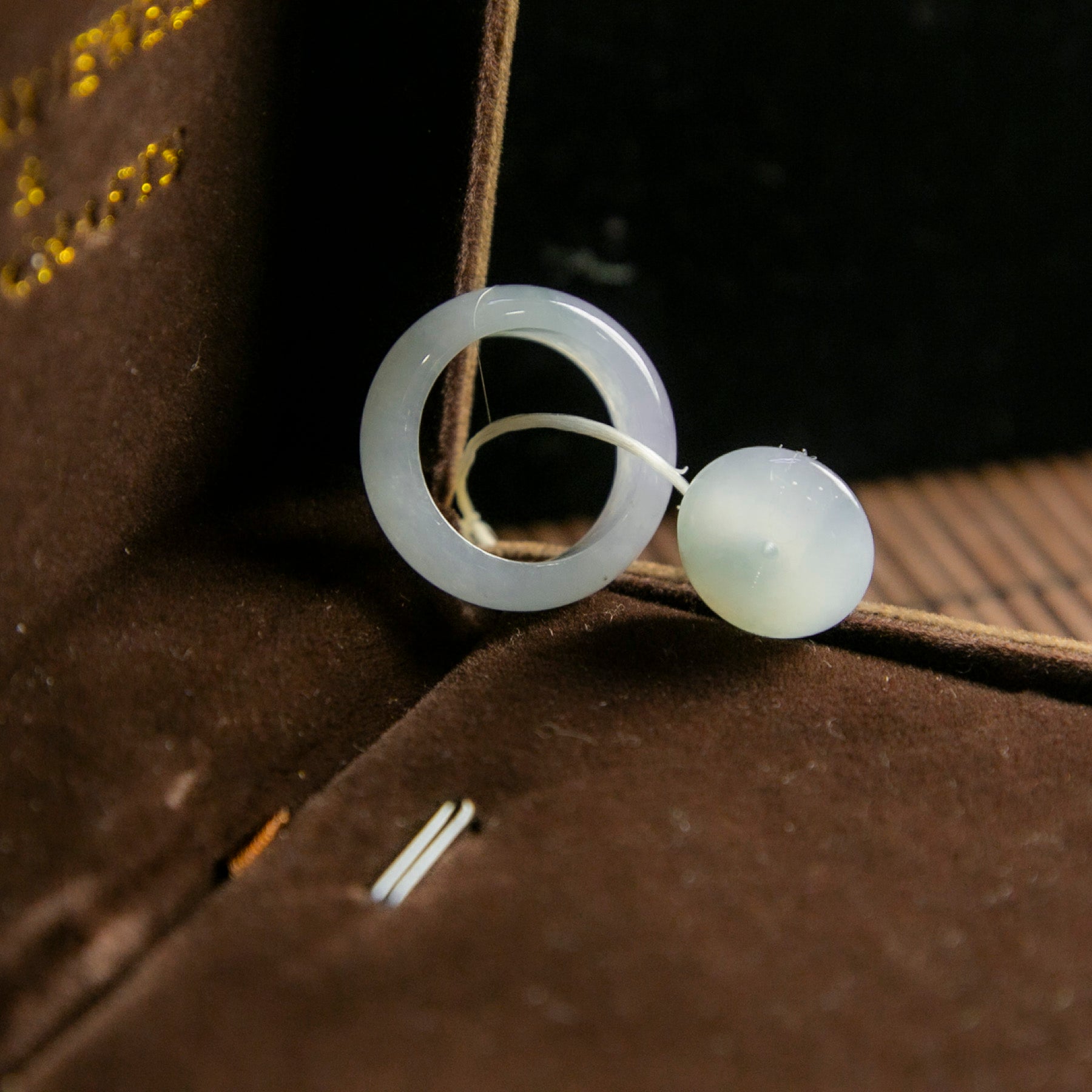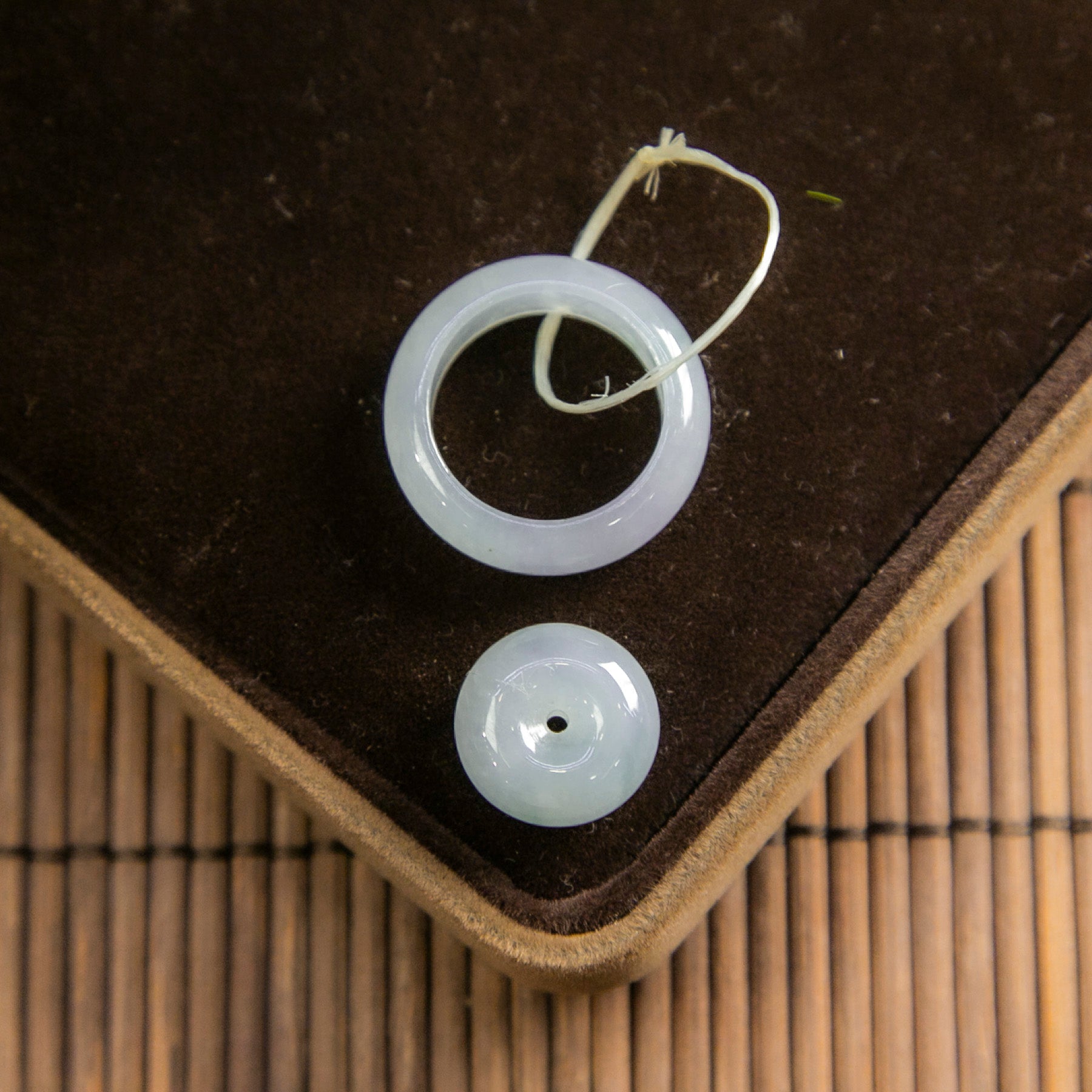 天然緬甸翡翠冰淡紫飄藍花玉戒+平安扣套裝